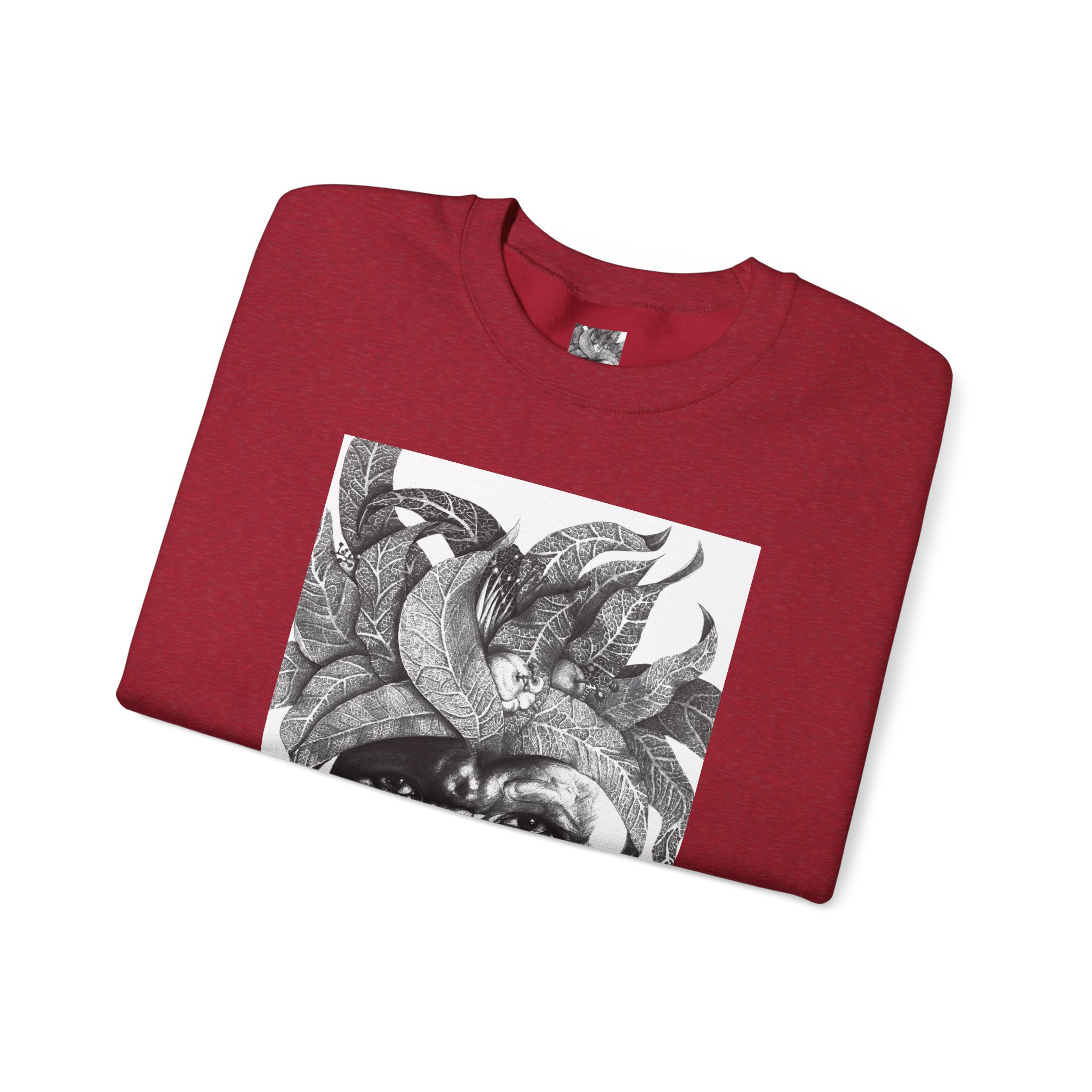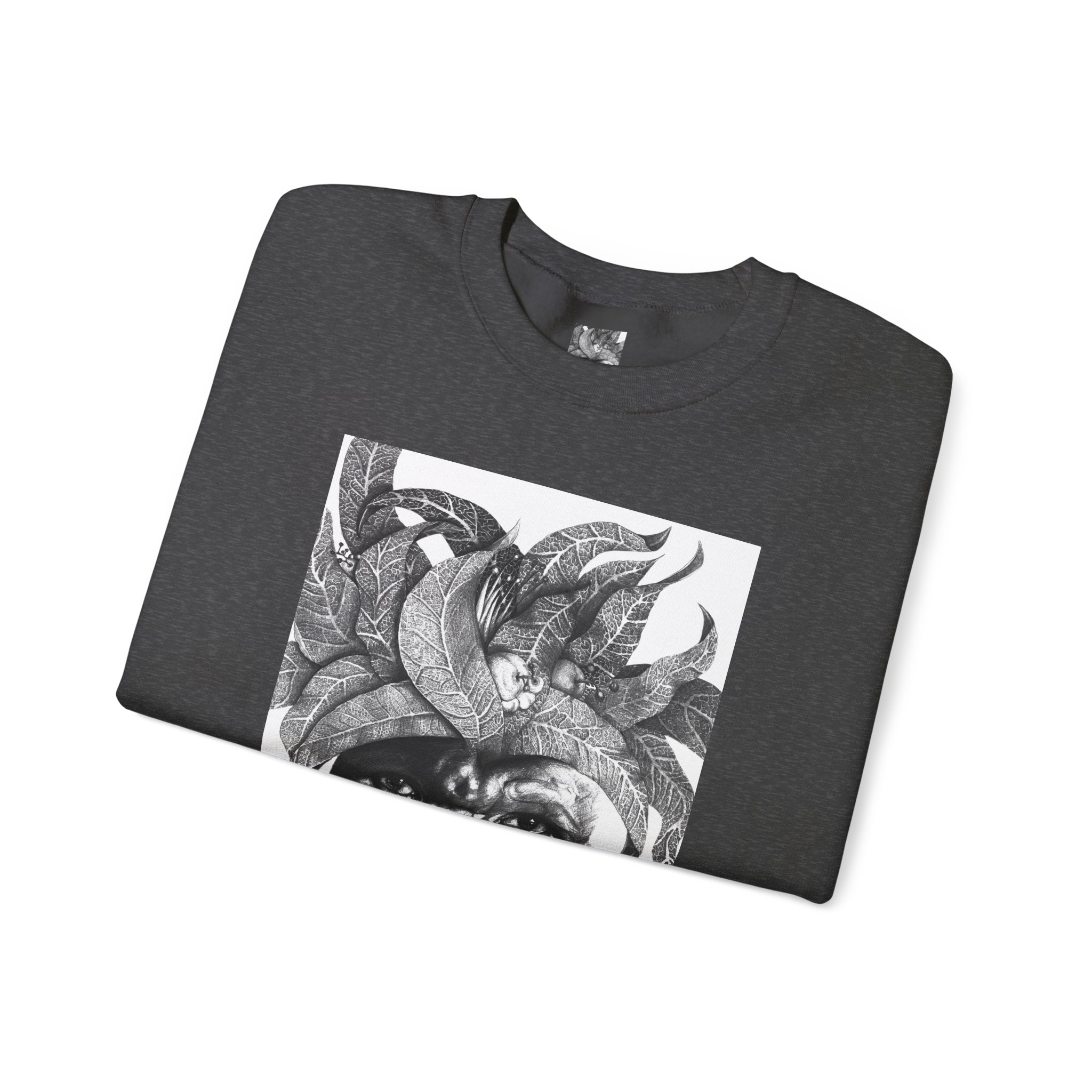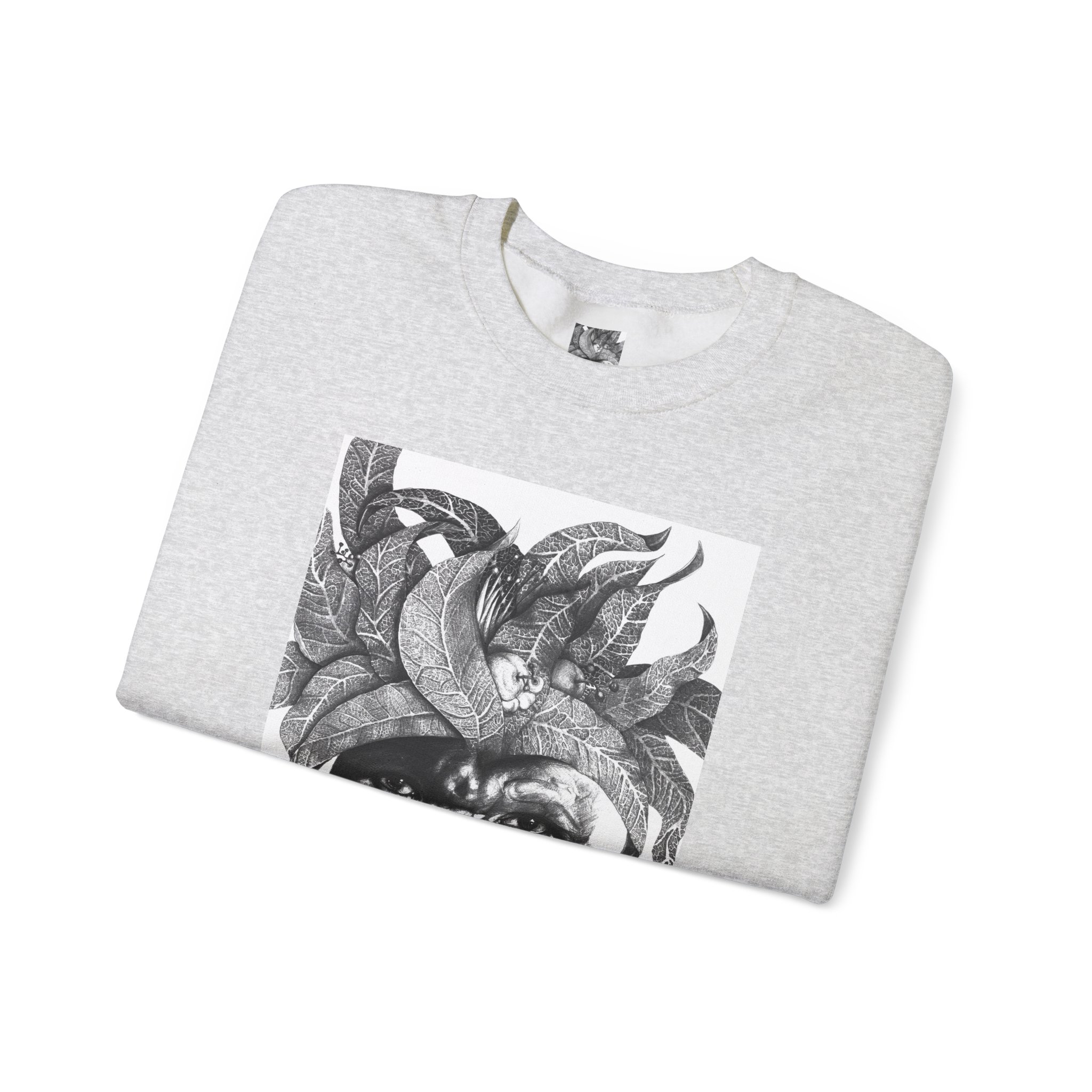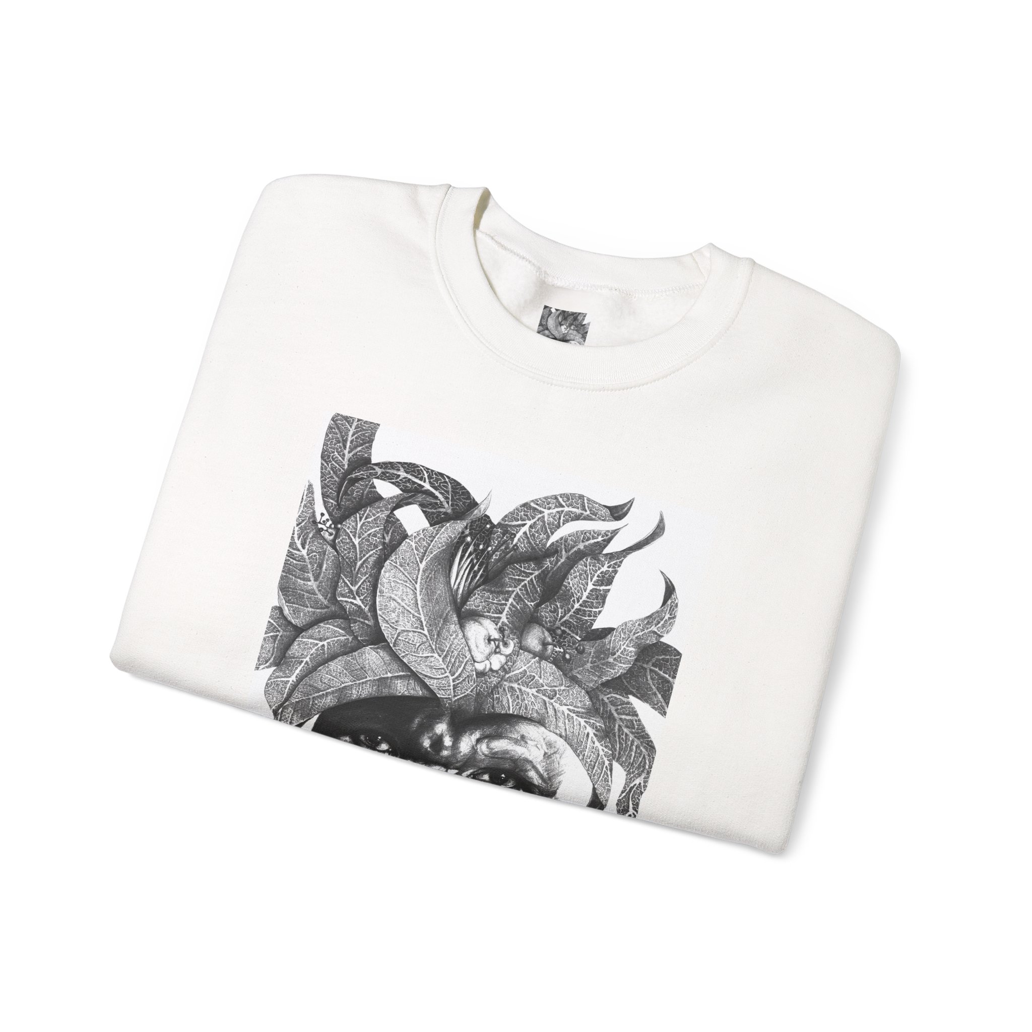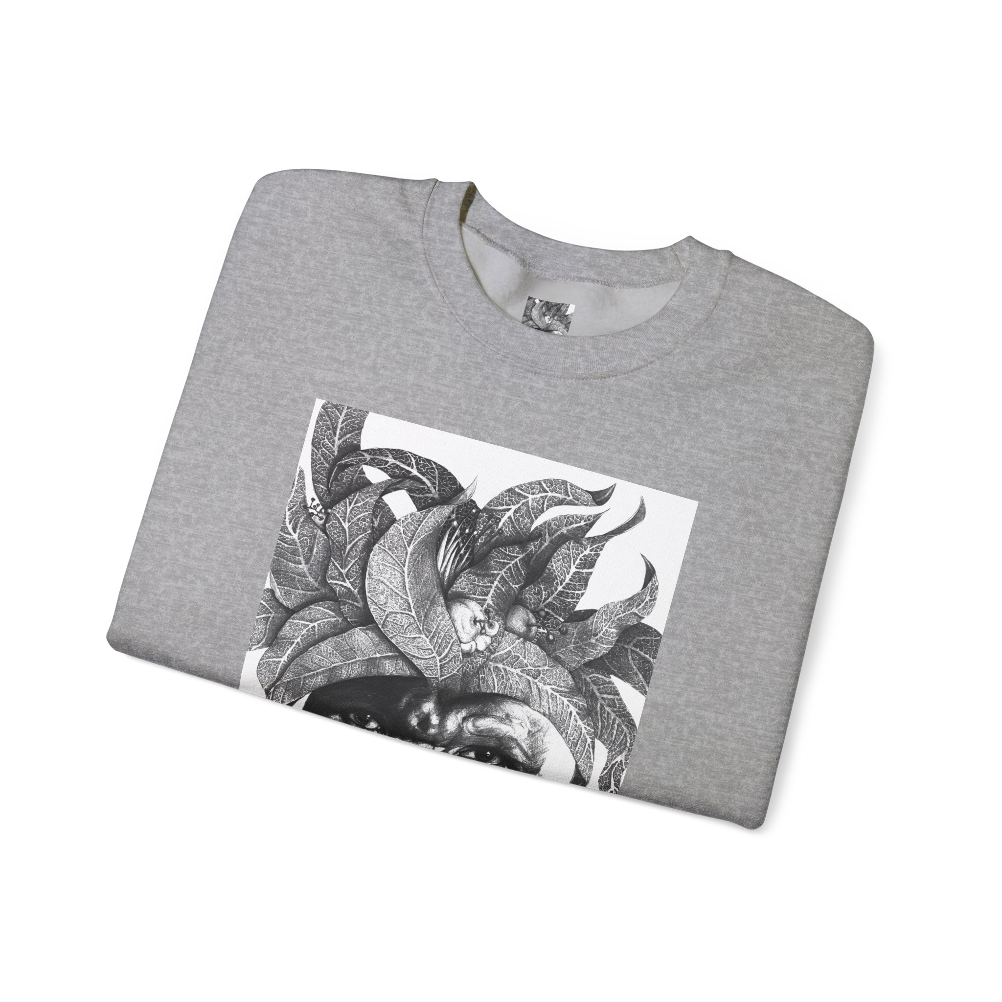 This crewneck sweatshirt carries the quiet, thoughtful energy of “The Original Sunman: Vision of the Founder’s Family” by Siphiwe Ngwenya. The monochrome portrait—layered with botanical swirls and a tribal headdress design—feels like a memory worn on the chest: gentle, soulful, and slightly mysterious. It embodies the “Artworks that Work” philosophy—art dedicated to driving economic and spiritual emancipation. This design draws on profound indigenous heritage, symbolizing the journey of communities transforming townships into vibrant centers of creative freedom and dignified self-expression.