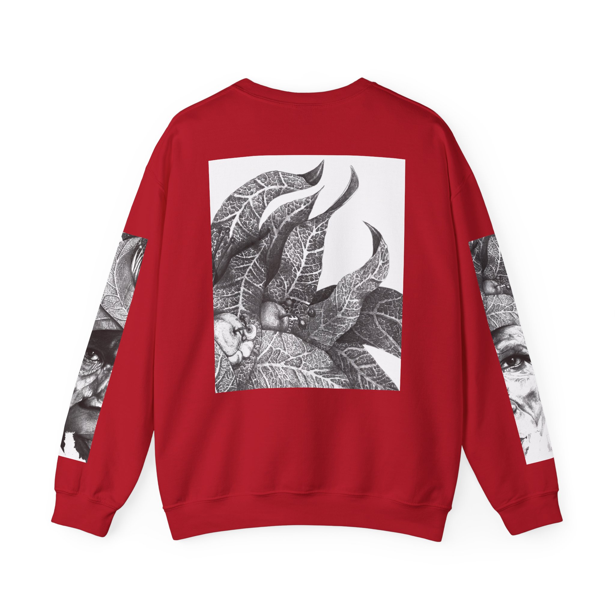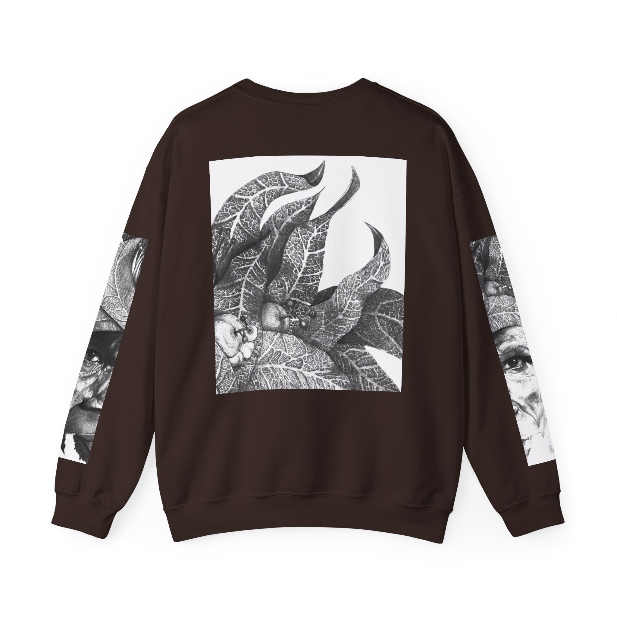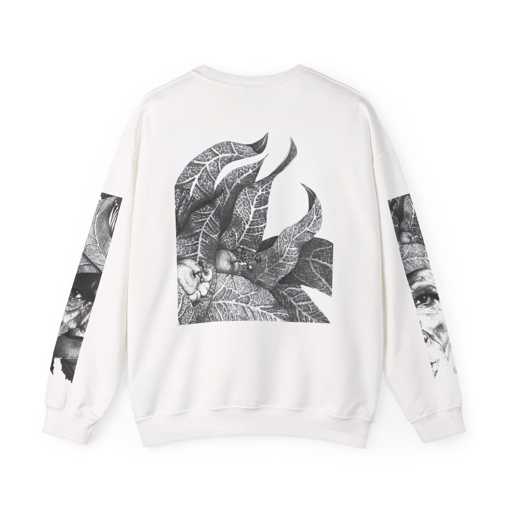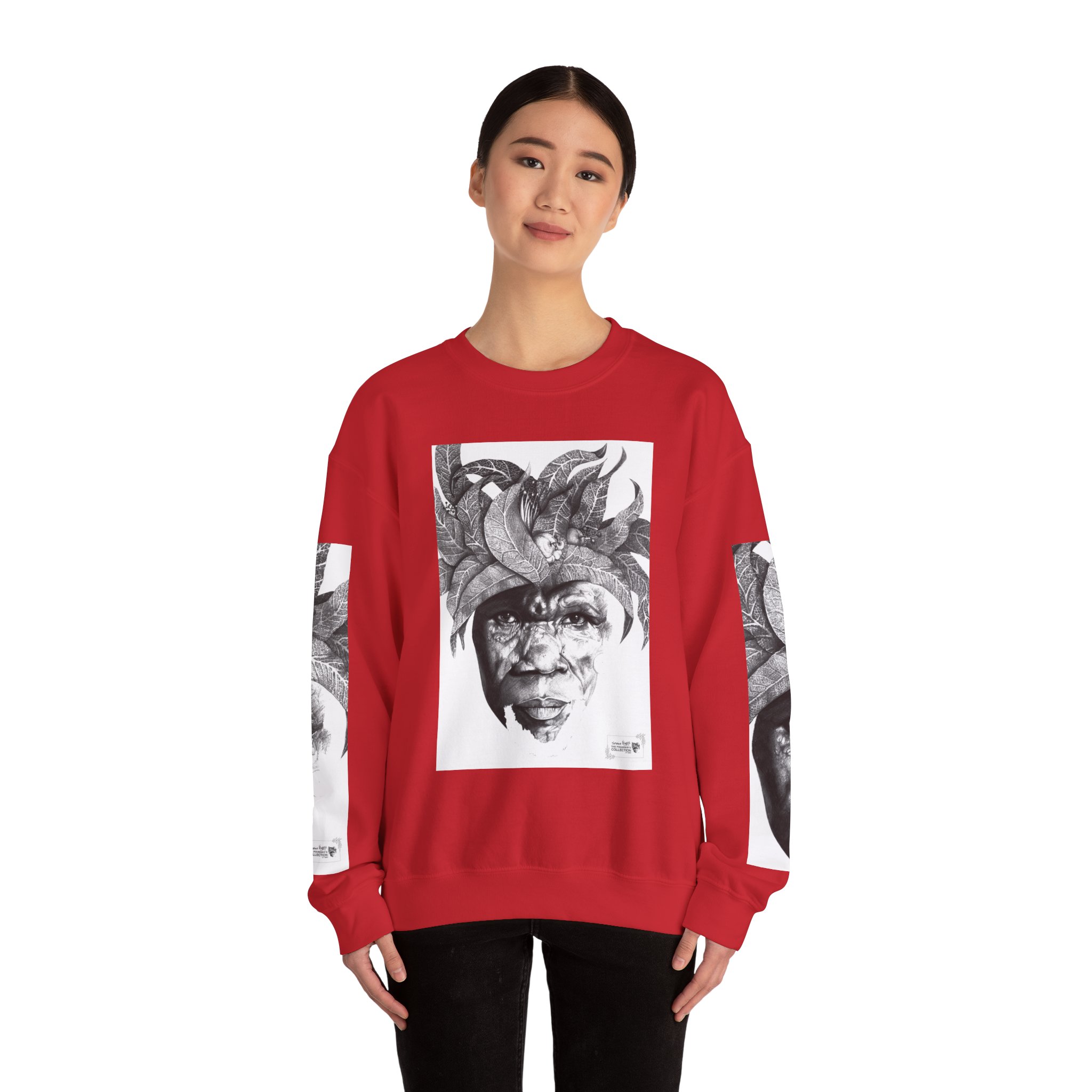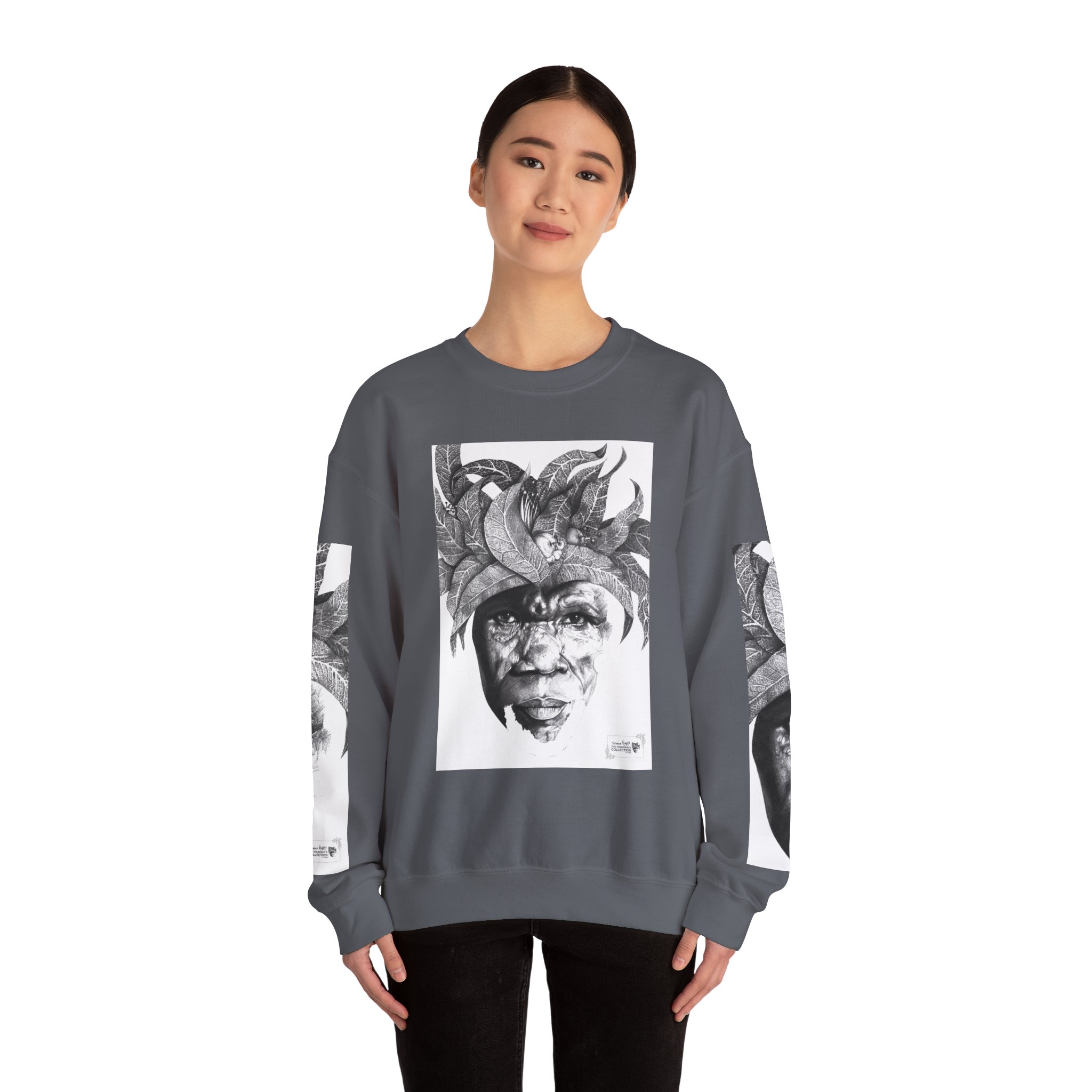 Soulful Legacy: “Artworks that Work” in a Monochrome Tribal Headdress Sweatshirt.