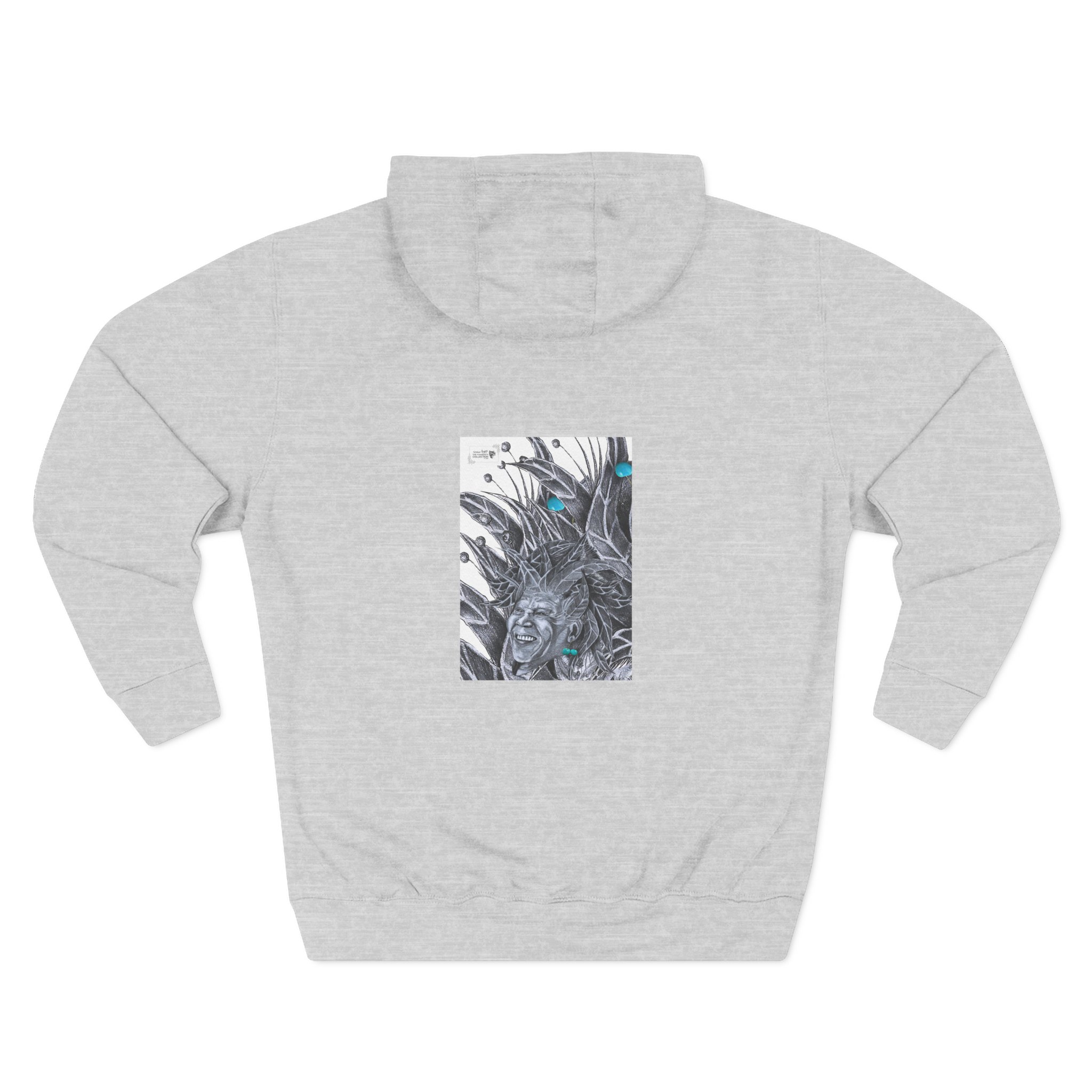 Wrap yourself in Siphiwe Ngwenya’s “Turquoise Whisper,” a moody monochrome portrait accented with subtle turquoise, centered as a quiet yet striking statement on this three-panel fleece hoodie. Medium-heavy fleece and a roomy kangaroo pocket combine urban edge with soft comfort, reflecting the Townships Into Towns philosophy — art that empowers communities, uplifts spirits, and transforms daily life into reflective, wearable storytelling. Perfect for city walks, gallery visits, or quiet mornings where art and comfort meet.