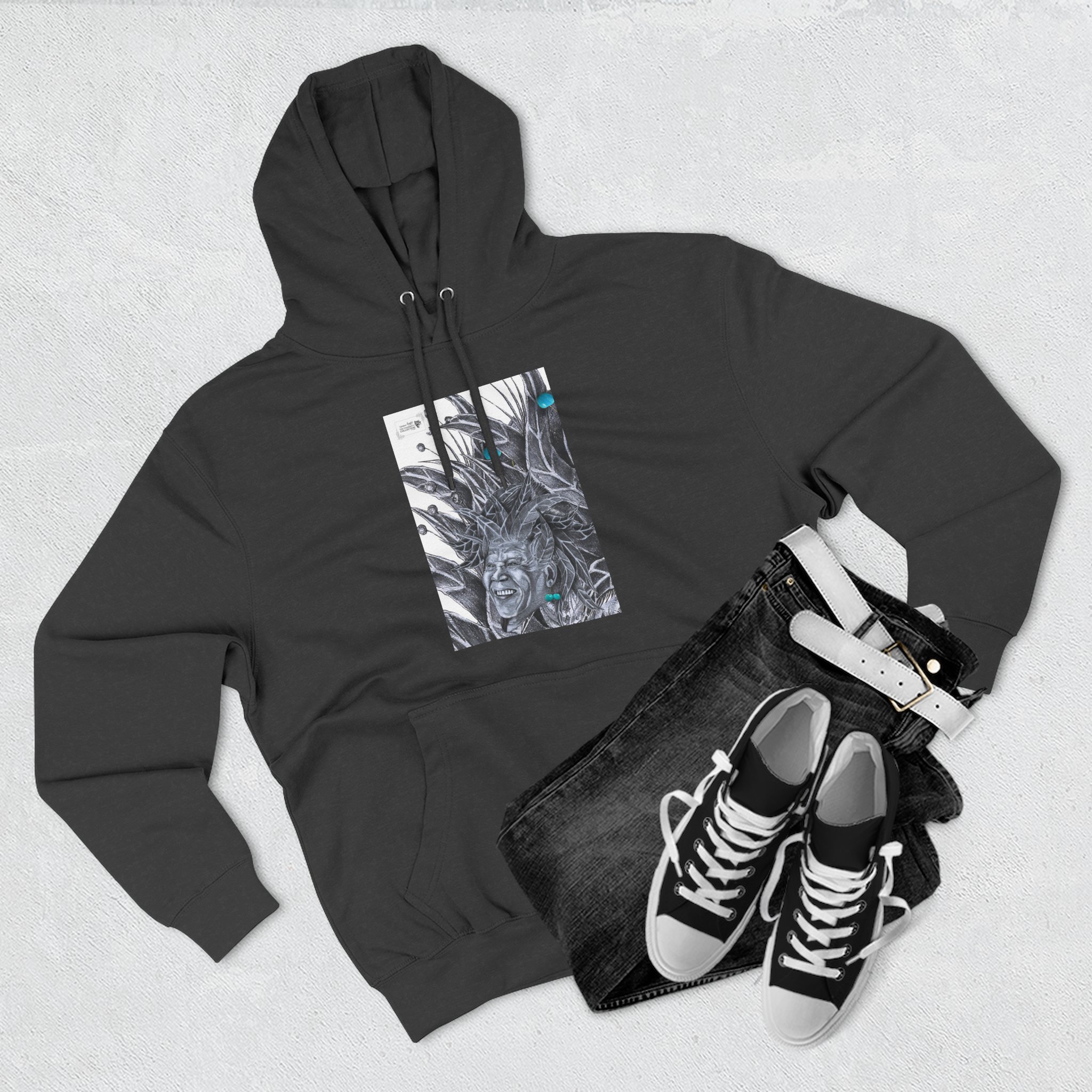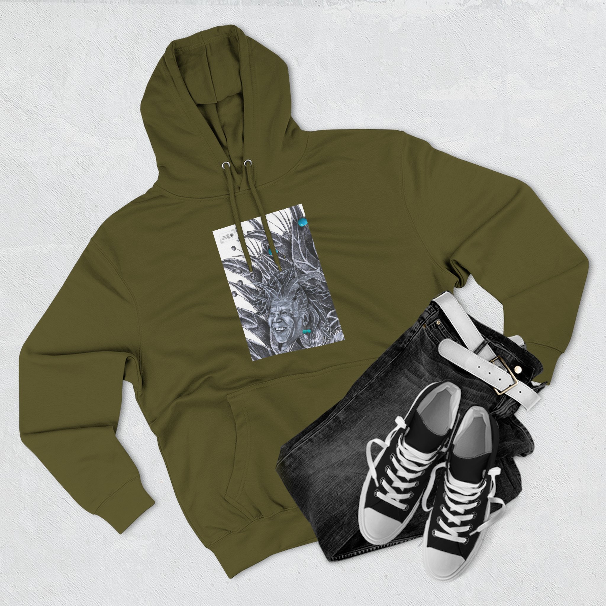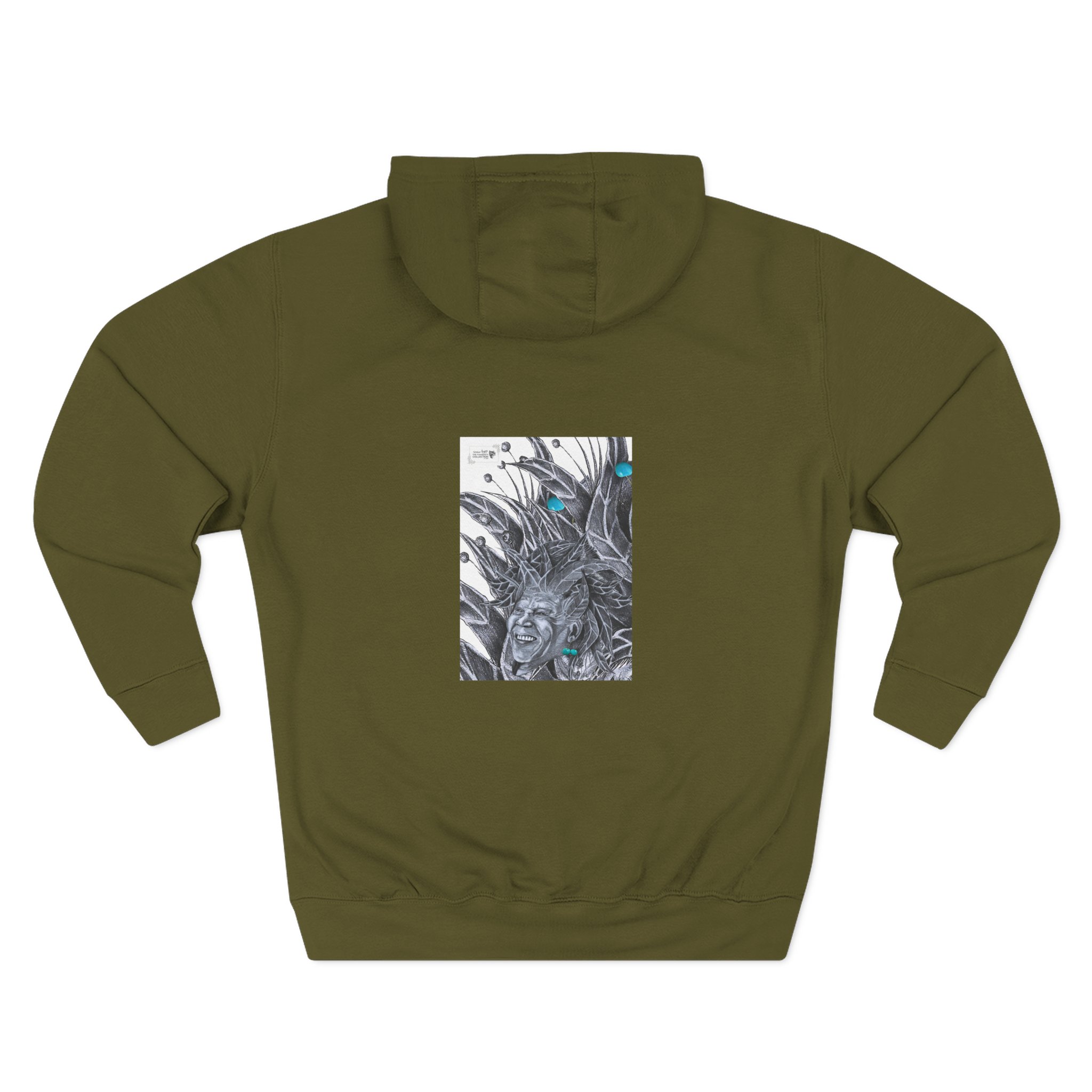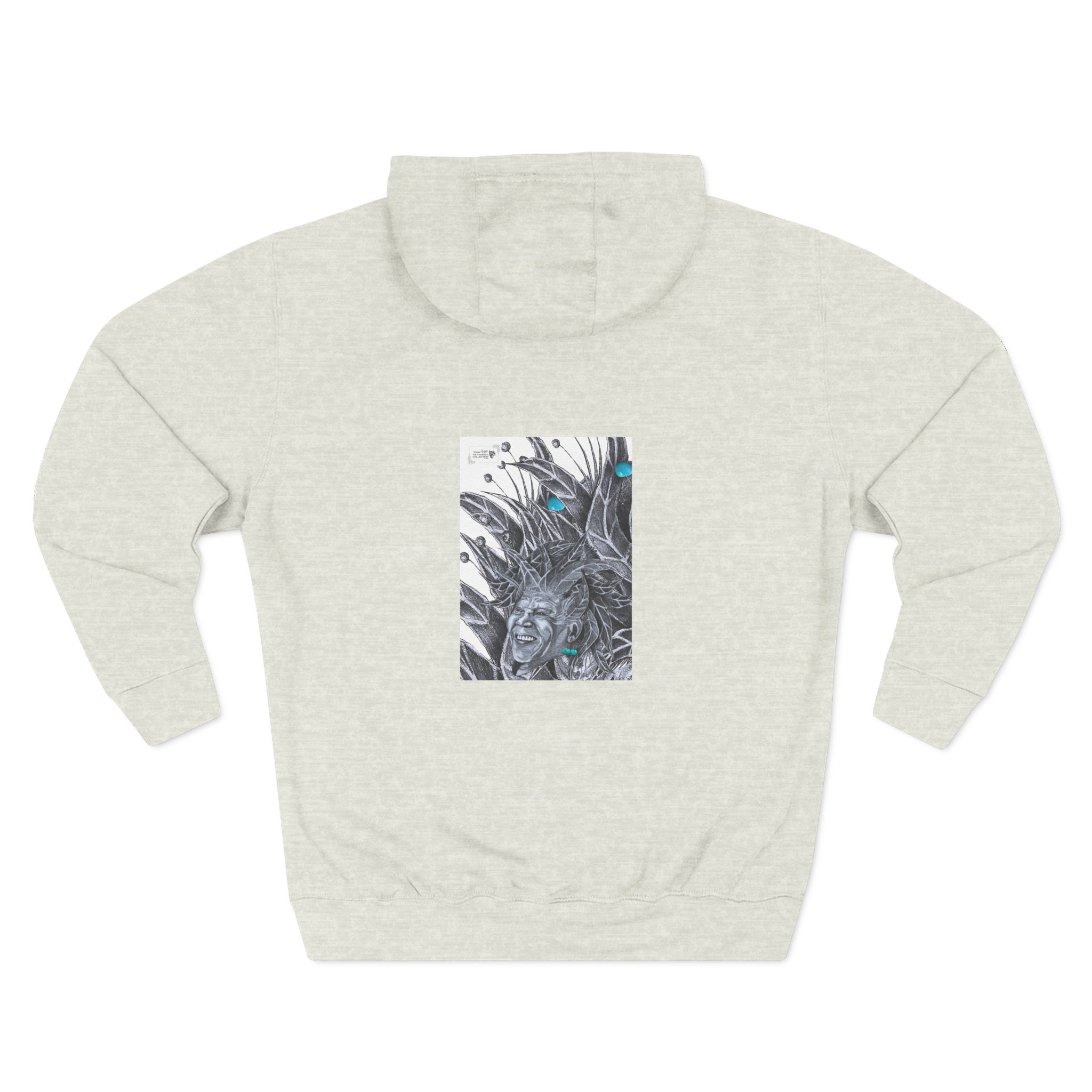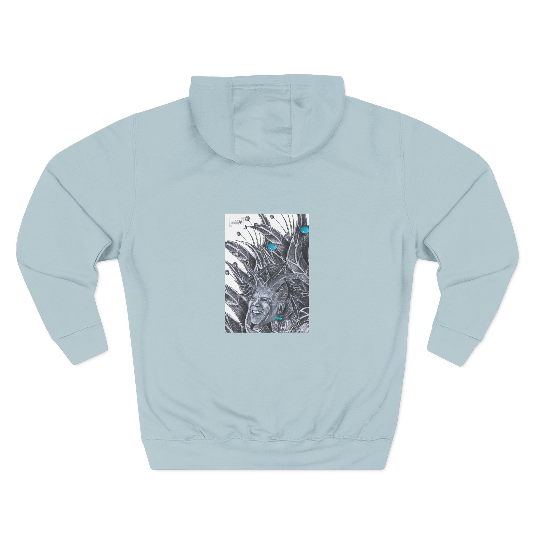 Moody Comfort: “Turquoise Whisper” Three-Panel Fleece Hoodie