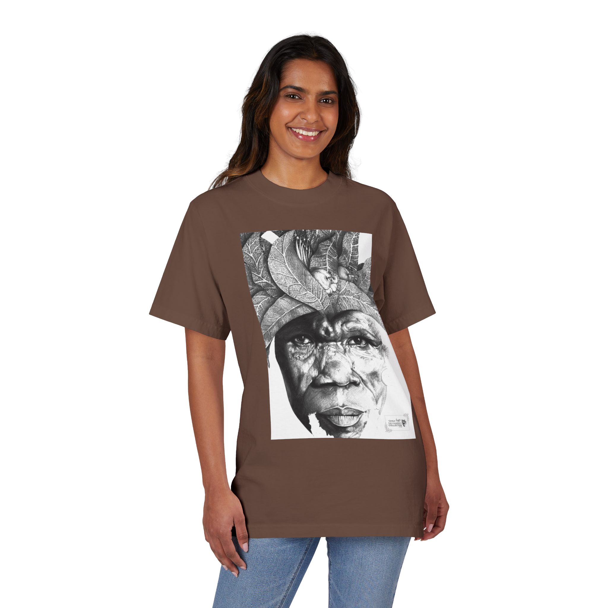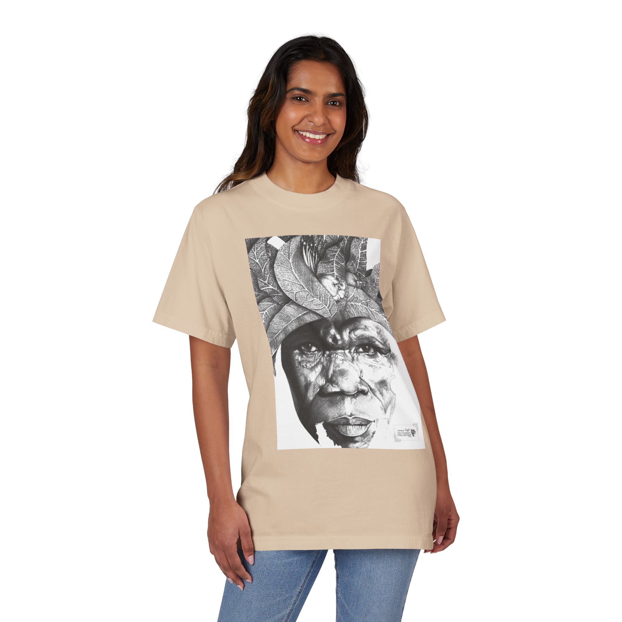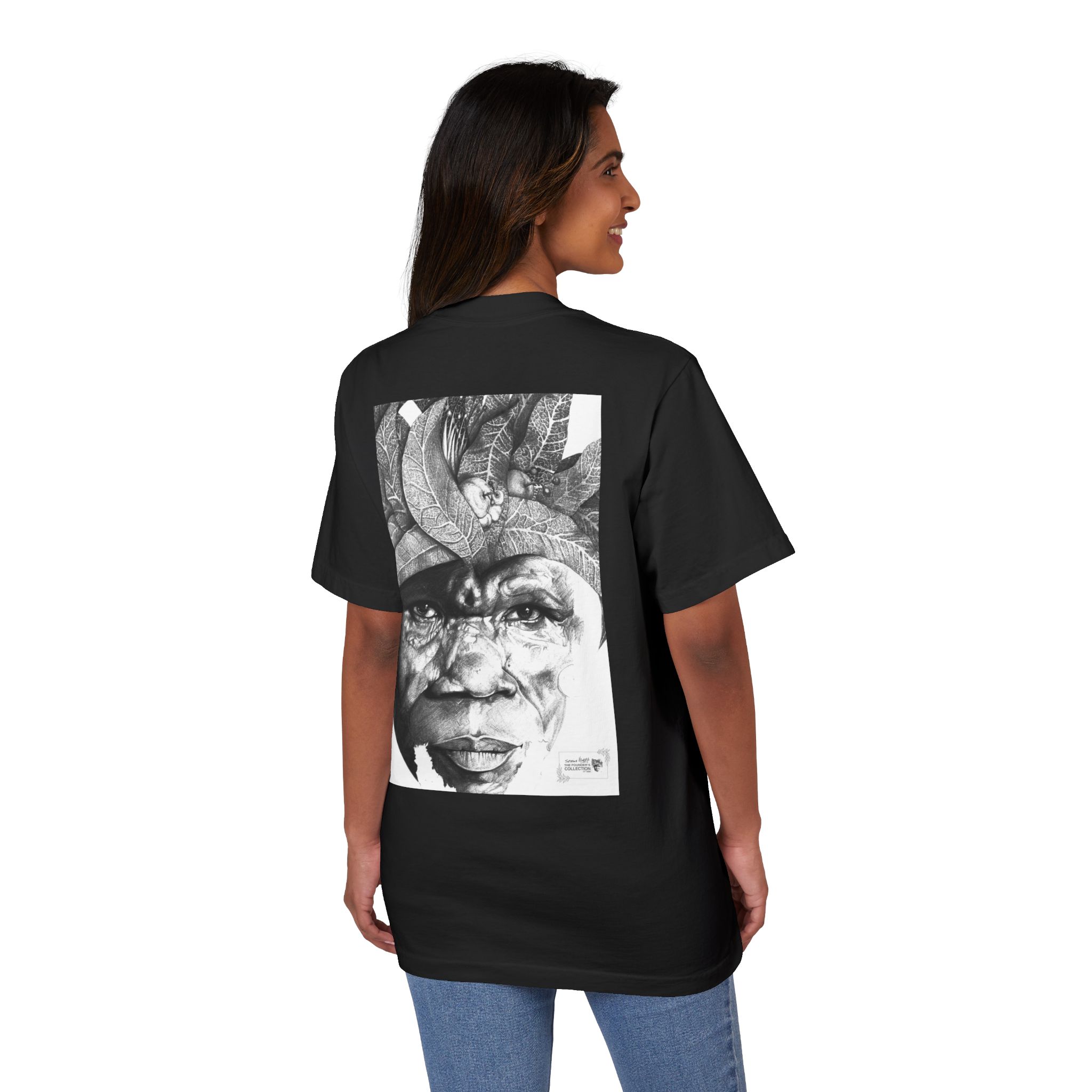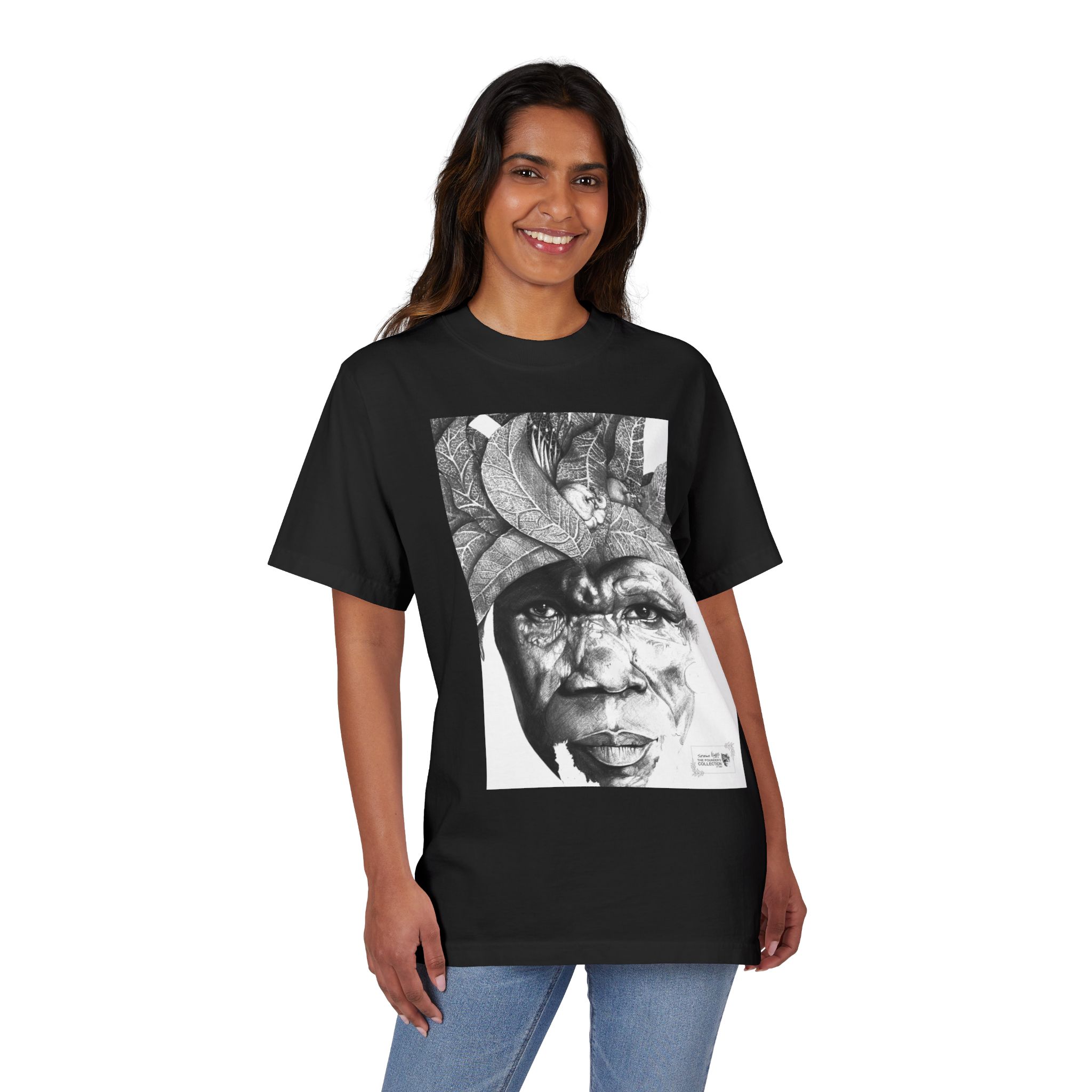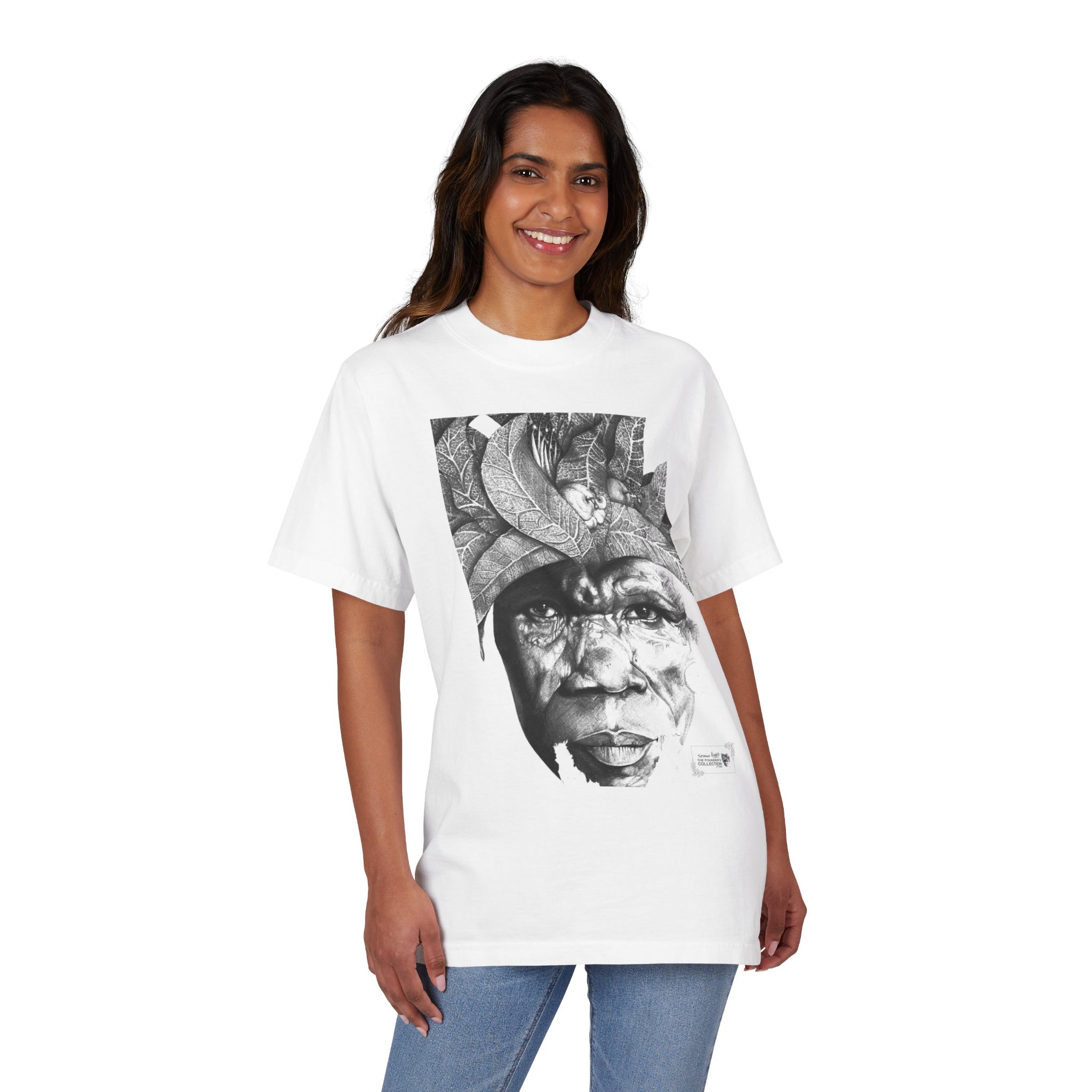Elder Wisdom Portrait T-Shirt — Black & White Tribal Face Art Tee