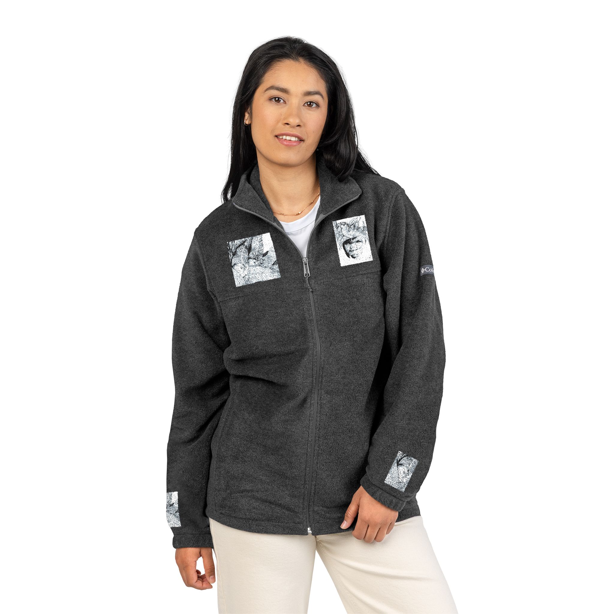 Built for the Journey: This charcoal fleece jacket feels like a quiet morning hike—warm, grounded, and built to move with you. Made with 100% MTR filament polyester fleece for high thermal retention (7.4 oz/yd² / 253.61 g/m²), it’s warm yet lightweight. The athletic cut offers a clean, streamlined silhouette that layers easily. Subtle embroidered artwork on the chest and back adds personality without shouting, making it a dependable, go-to layer for cooler commutes, trail checkpoints, or late-night campfire chats.