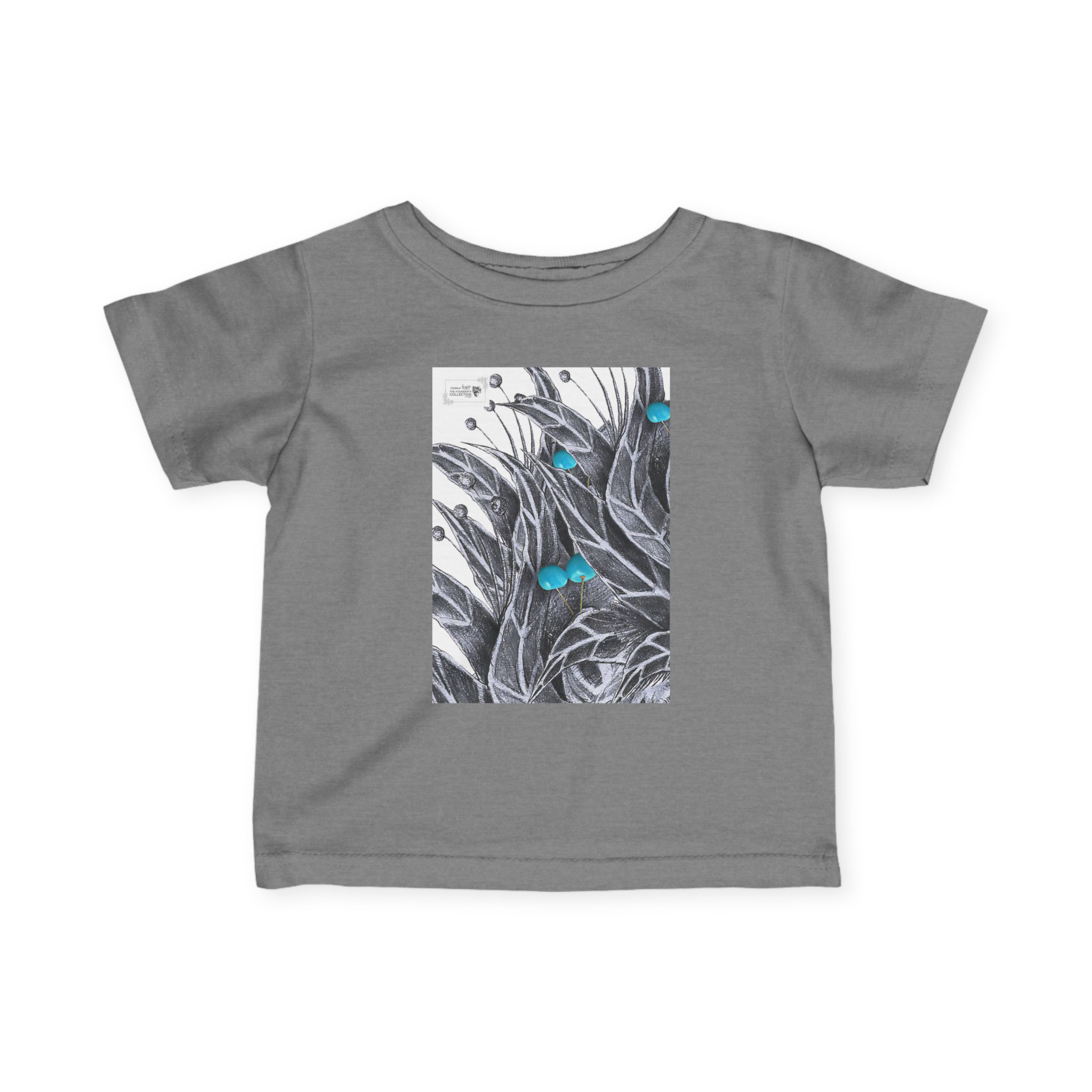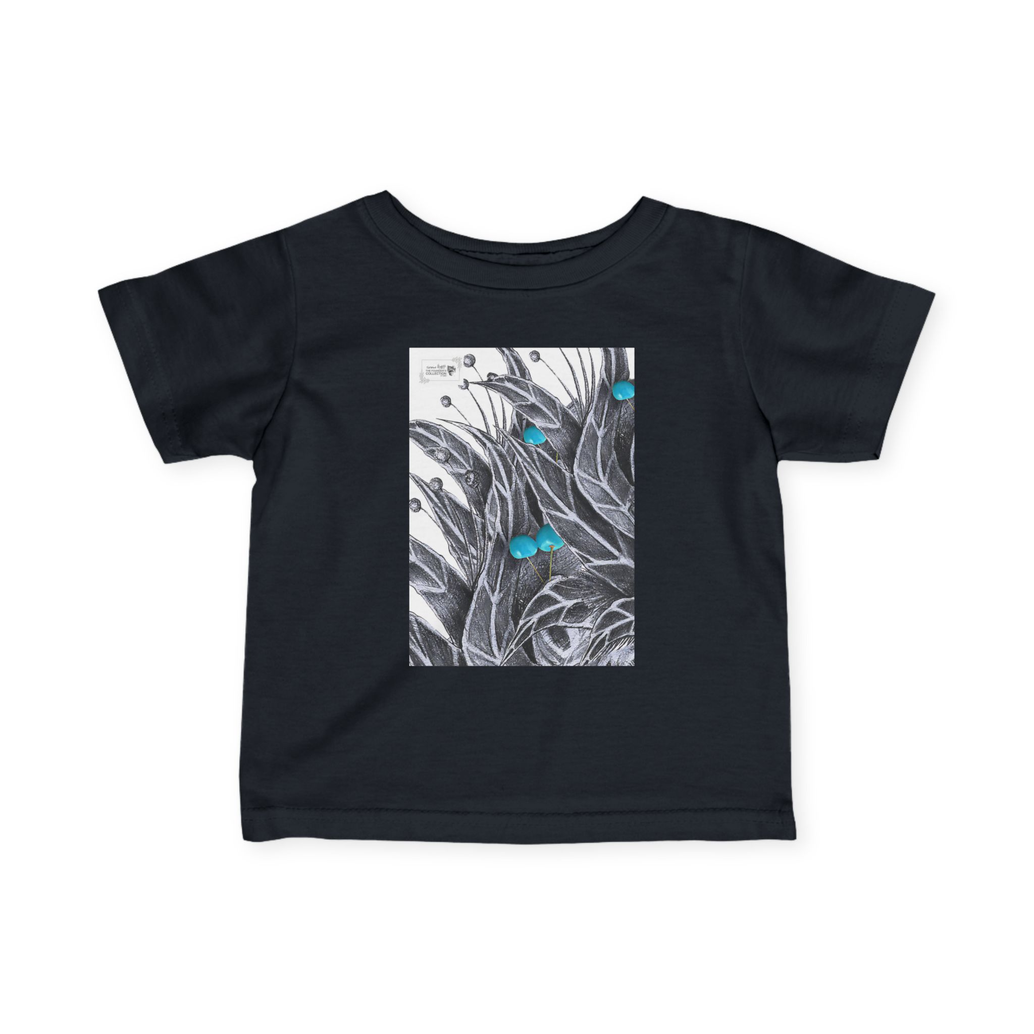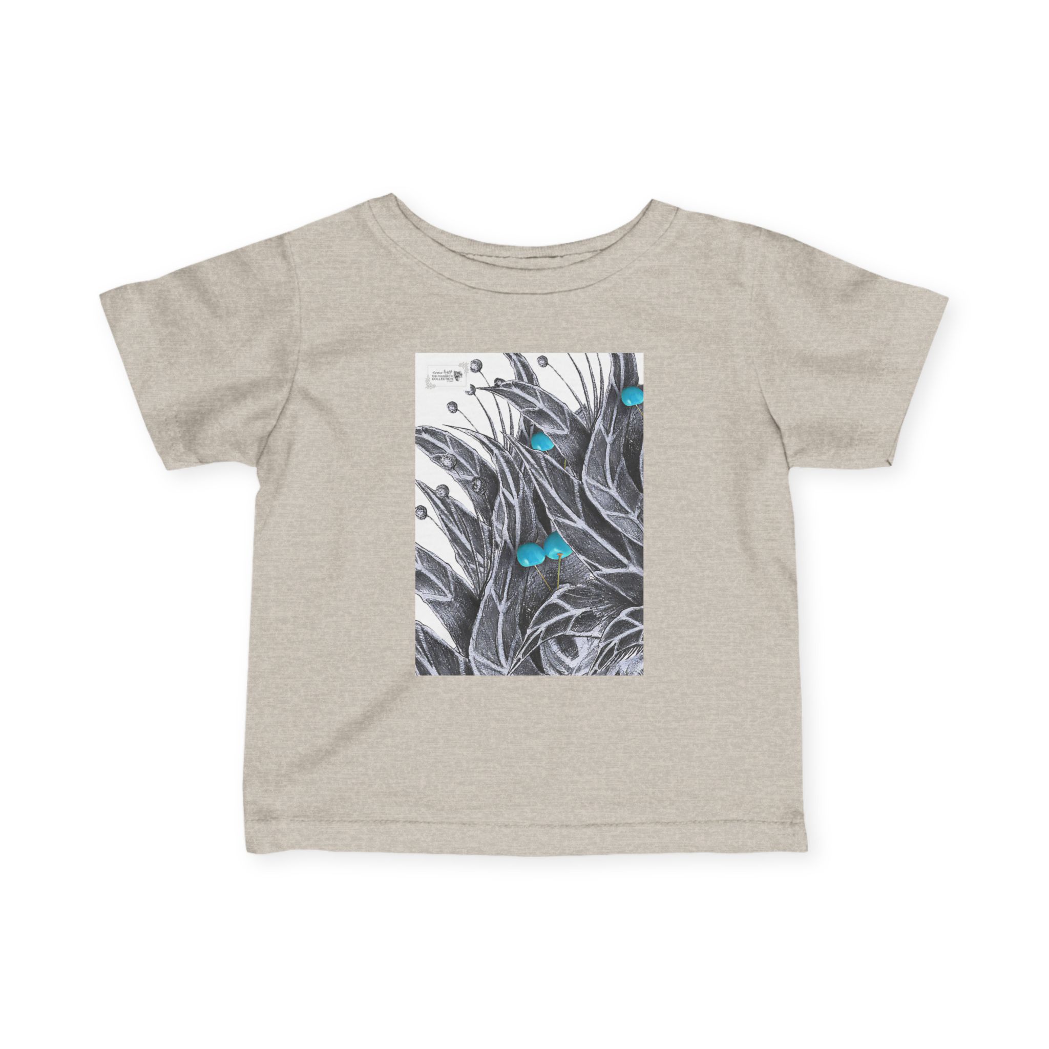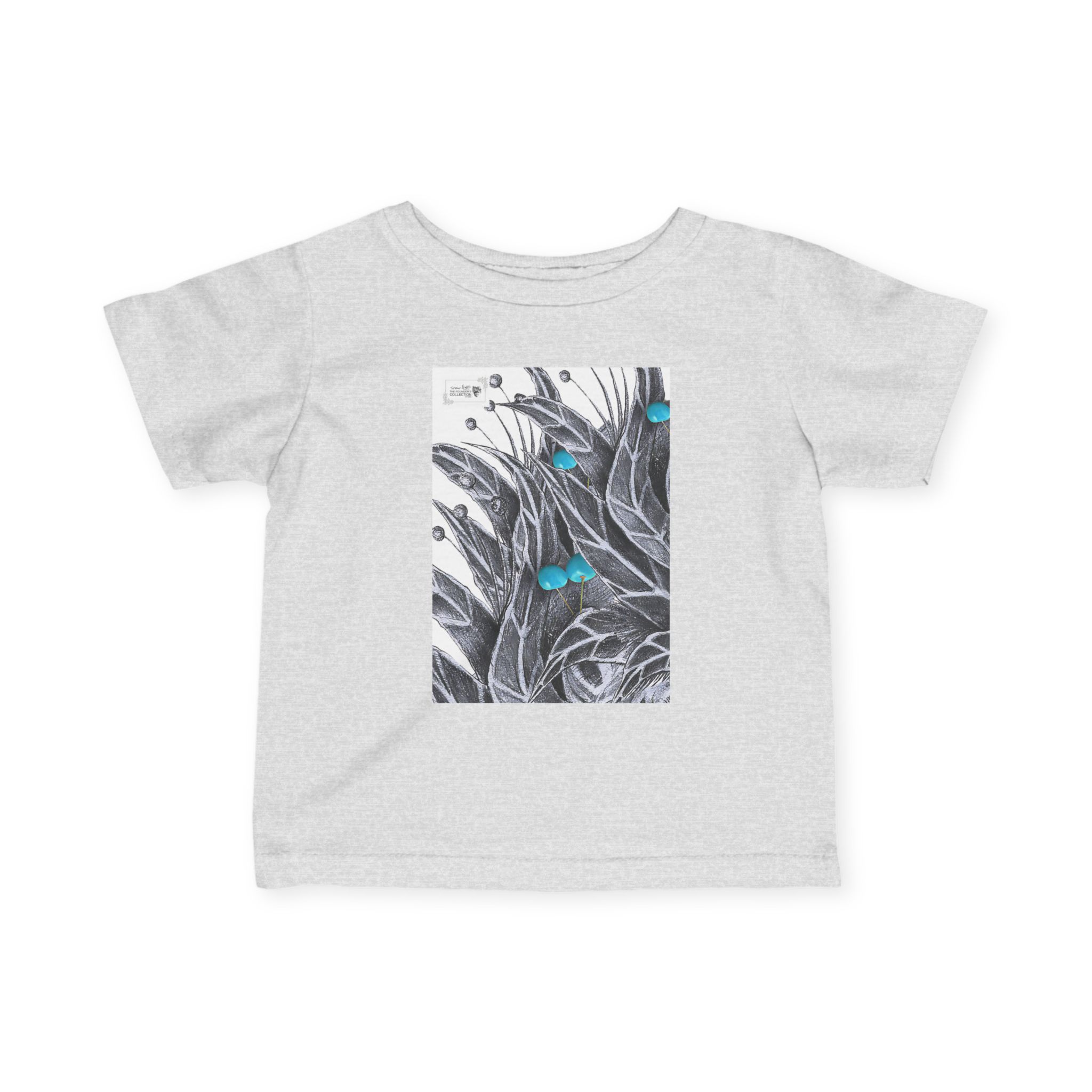 Infant Tee — Botanical Feather Artwork with Turquoise Accent