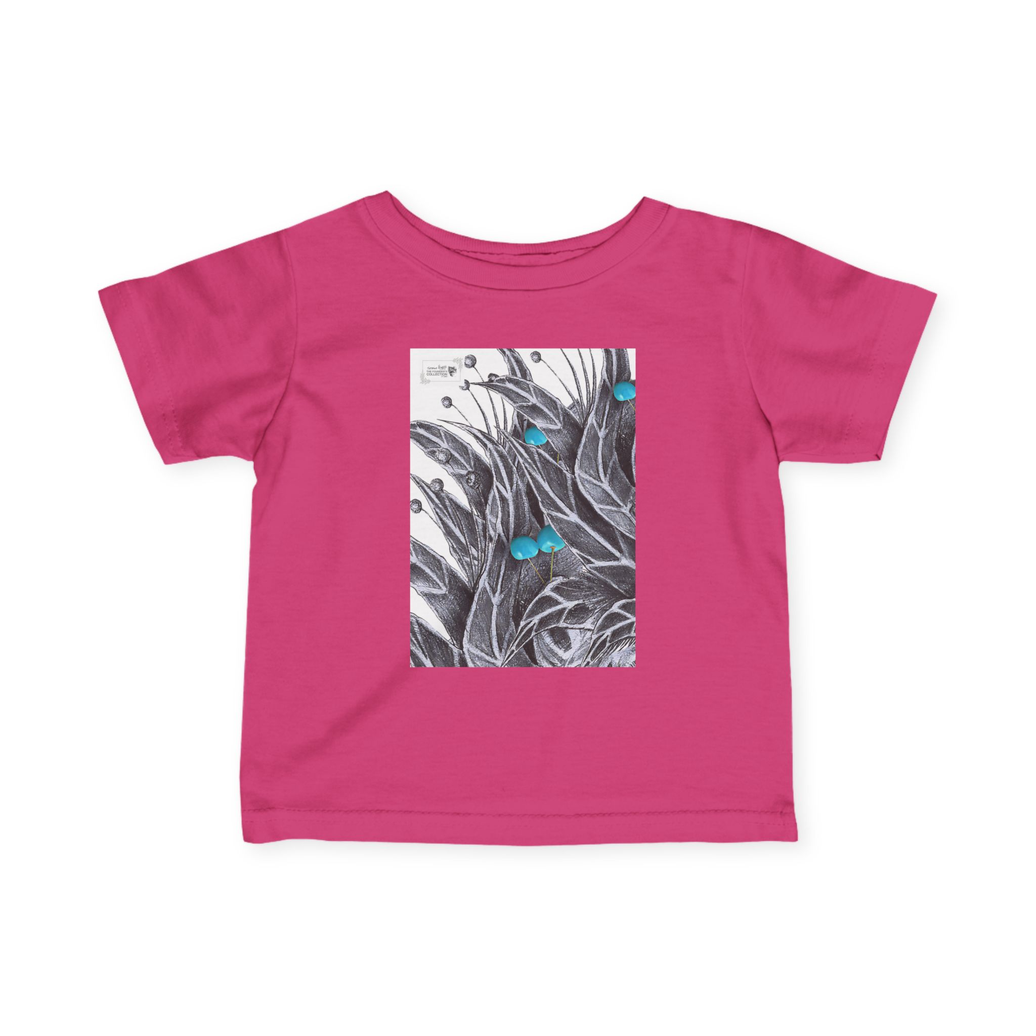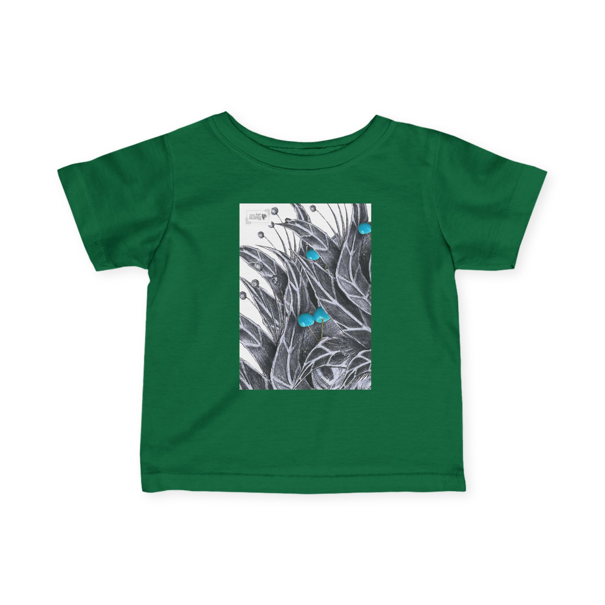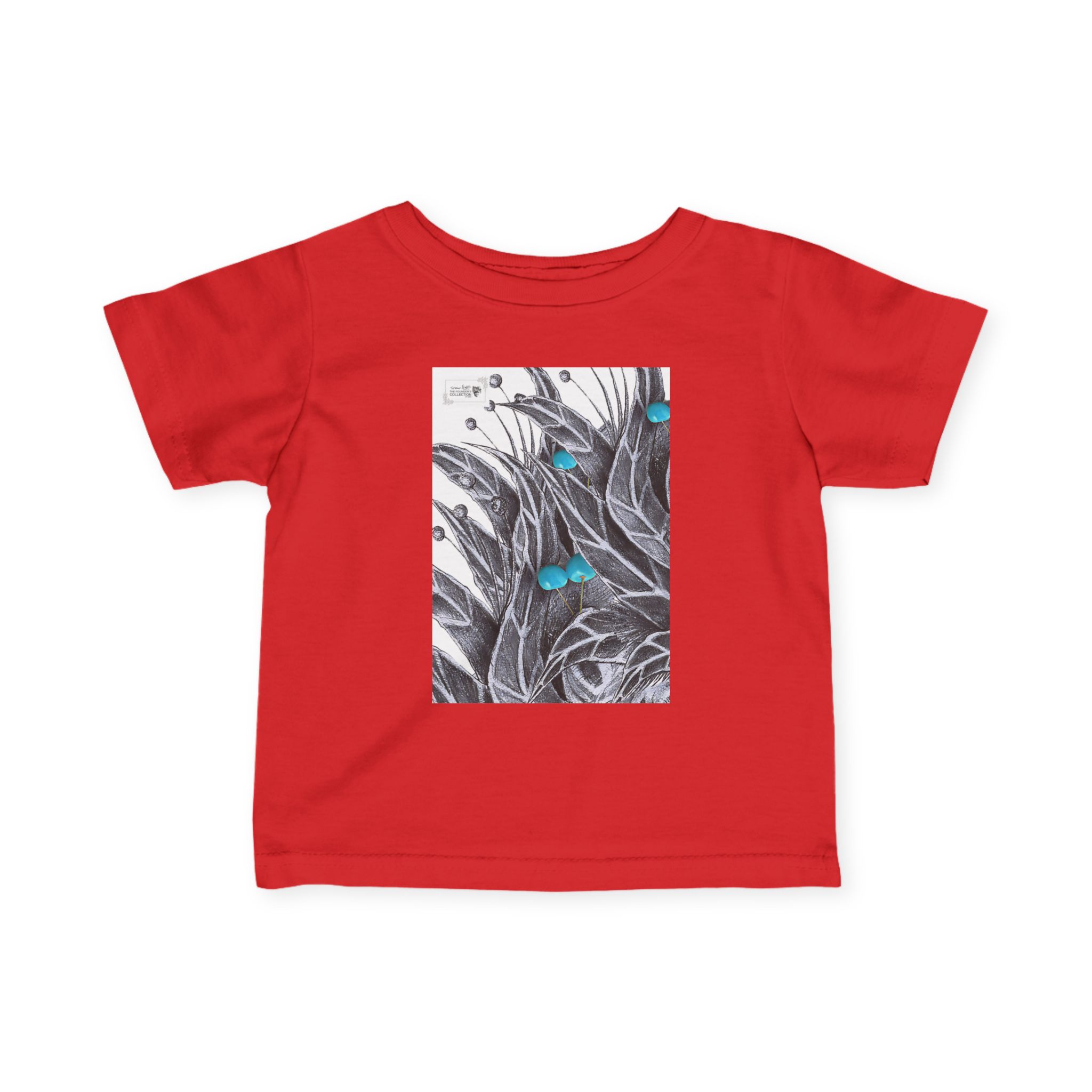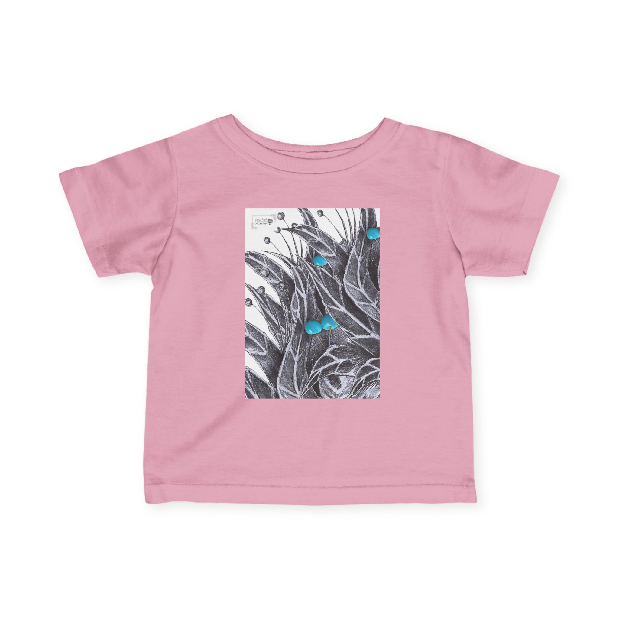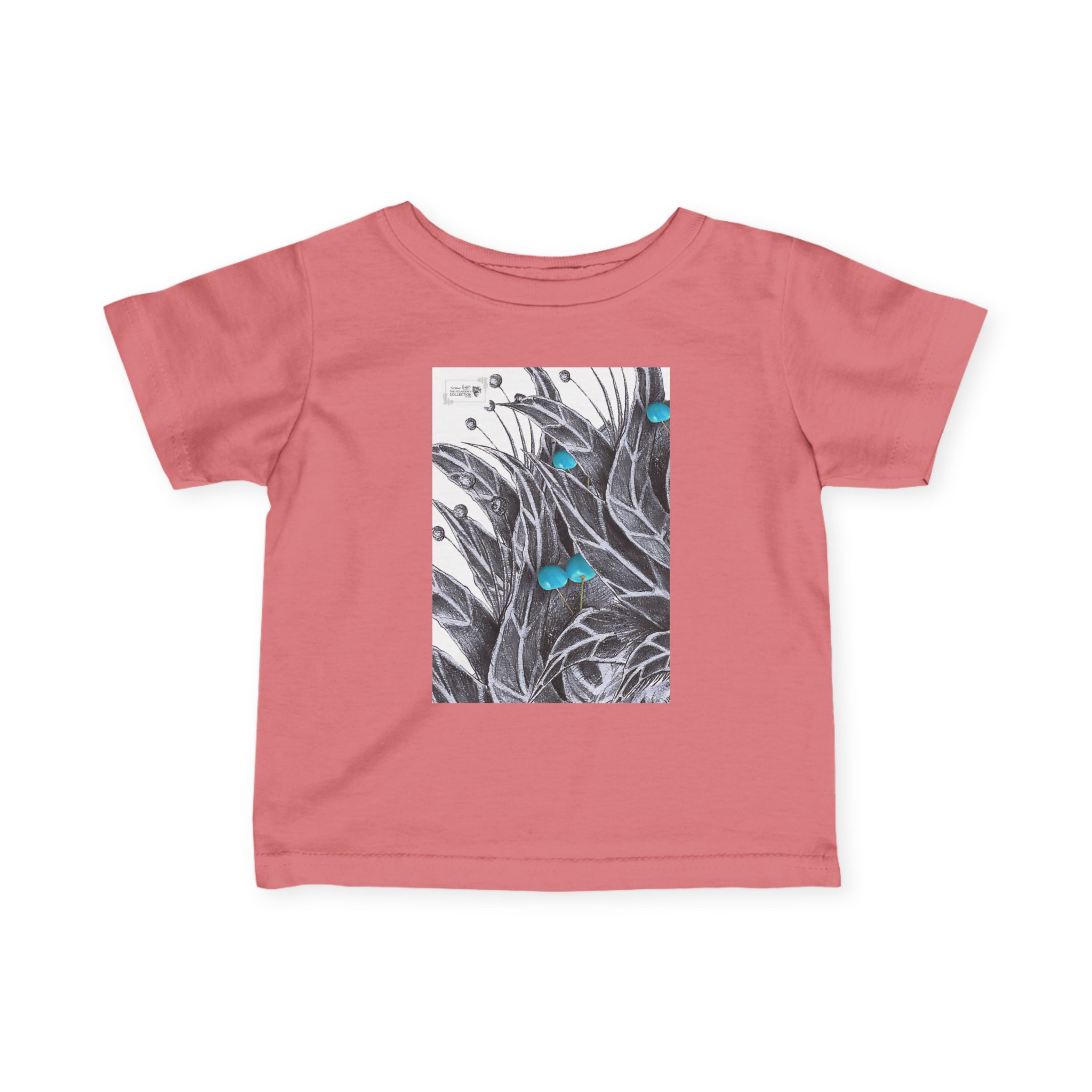 Infant Tee — Botanical Feather Artwork with Turquoise Accent