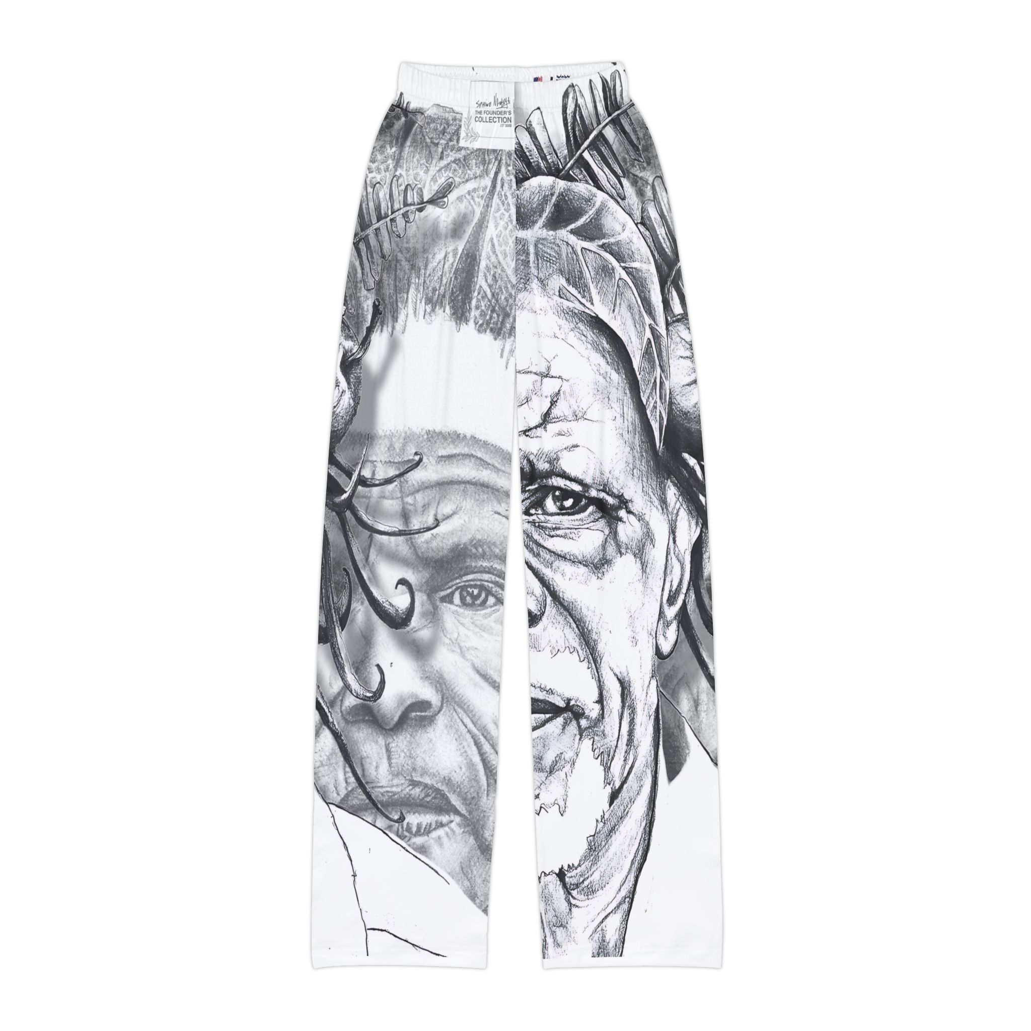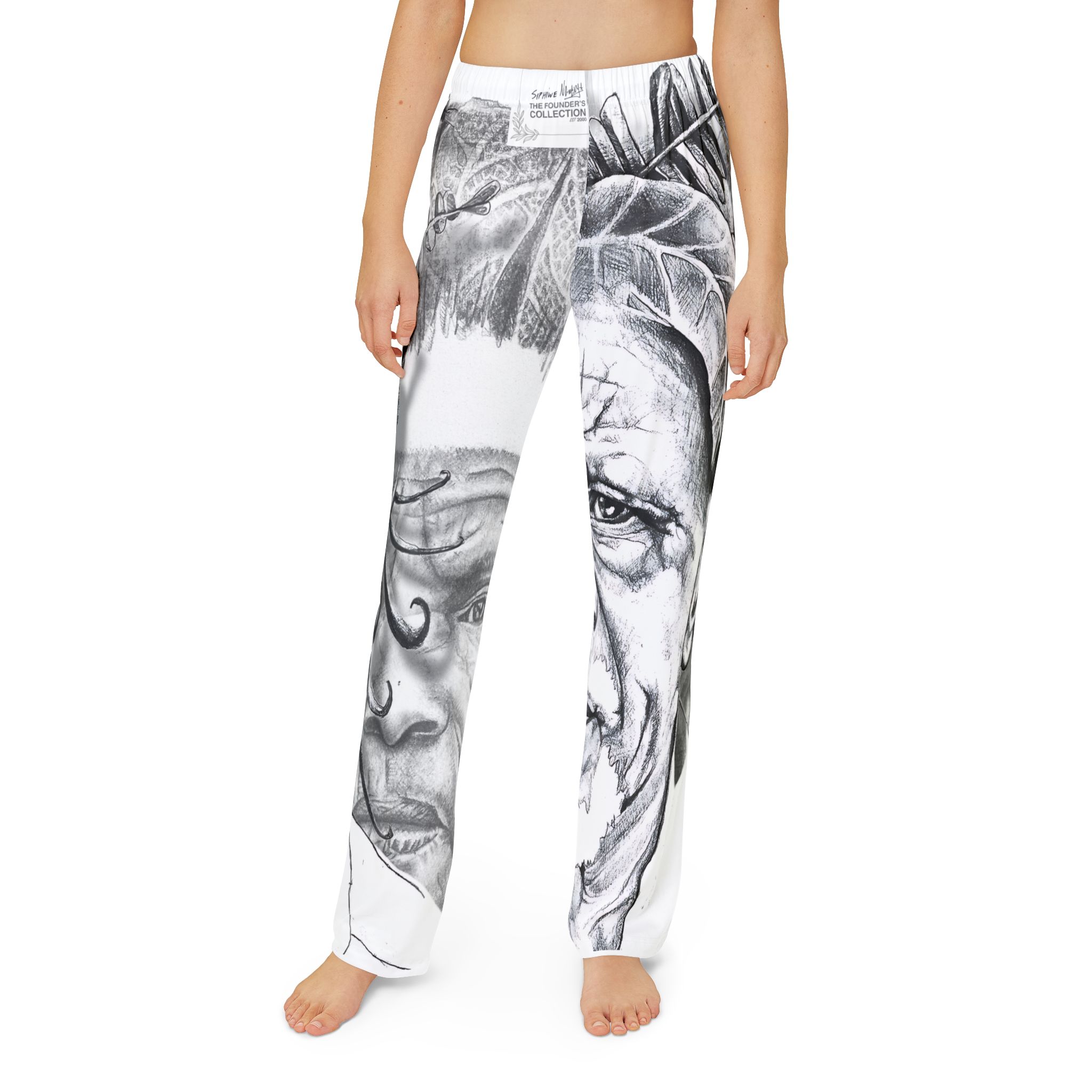 Let little ones move, play, and express themselves with “Ubuciko Bami” by Siphiwe Ngwenya. These soft, lightweight lounge pants transform everyday comfort into wearable art, featuring a large, edge-to-edge monochrome sketch-style portrait that brings personality and subtle creativity to every movement.