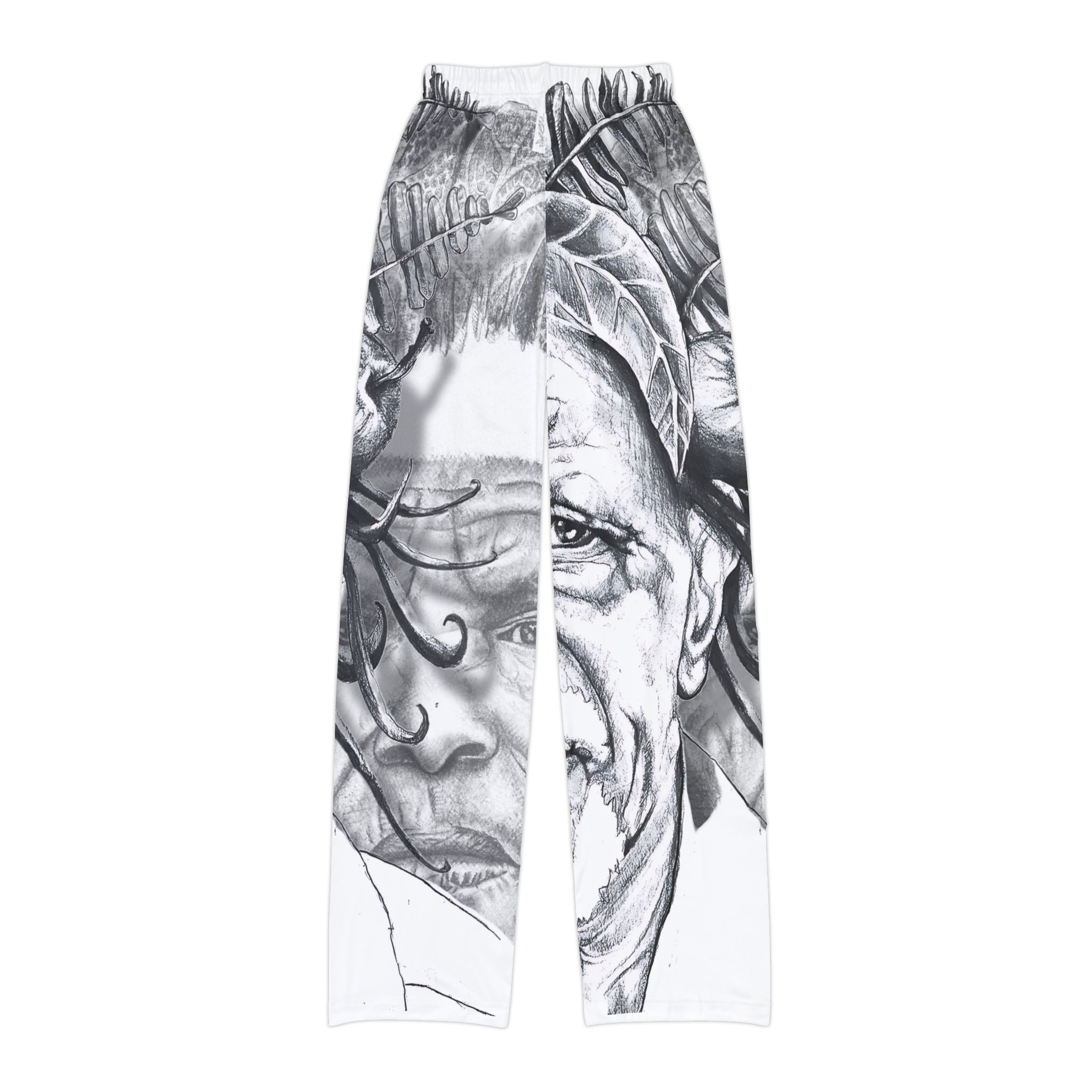 Kids Lounge Pants — Black & White Portrait All-Over Print