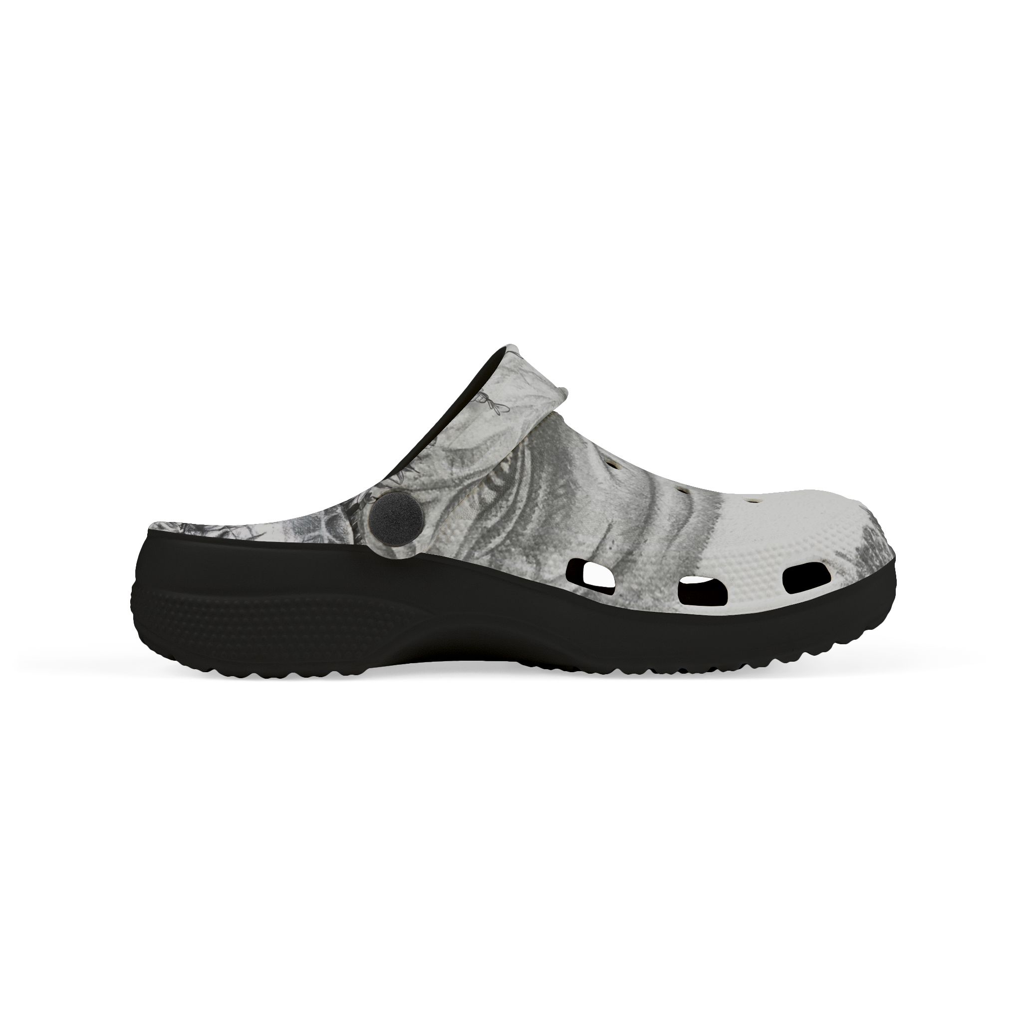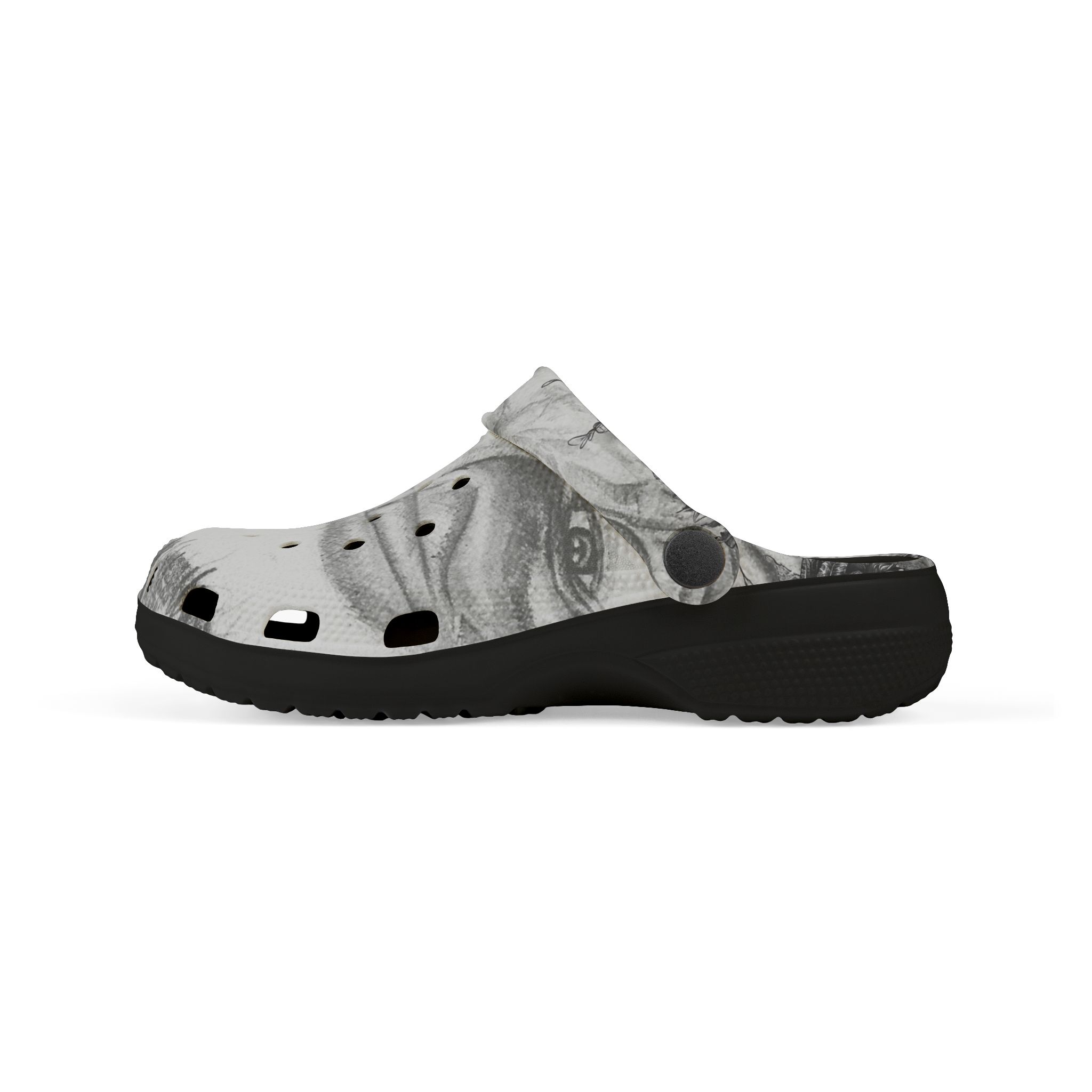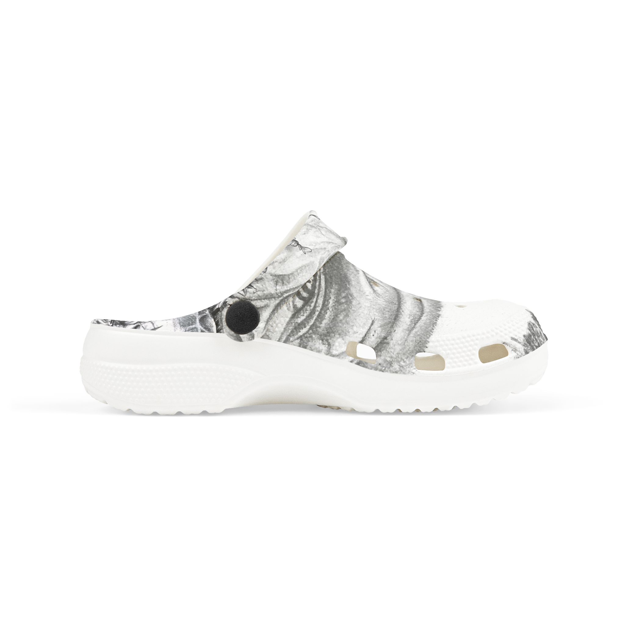 Let little ones step into Siphiwe Ngwenya’s “Little Pathways,” where movement meets imagination. These lightweight EVA clogs carry a calm, monochrome artwork across their surface — a quiet nod to storytelling, heritage, and the Townships Into Towns vision. Designed for children who move freely and explore boldly, they bring art into everyday play, from backyard afternoons to water-filled adventures.