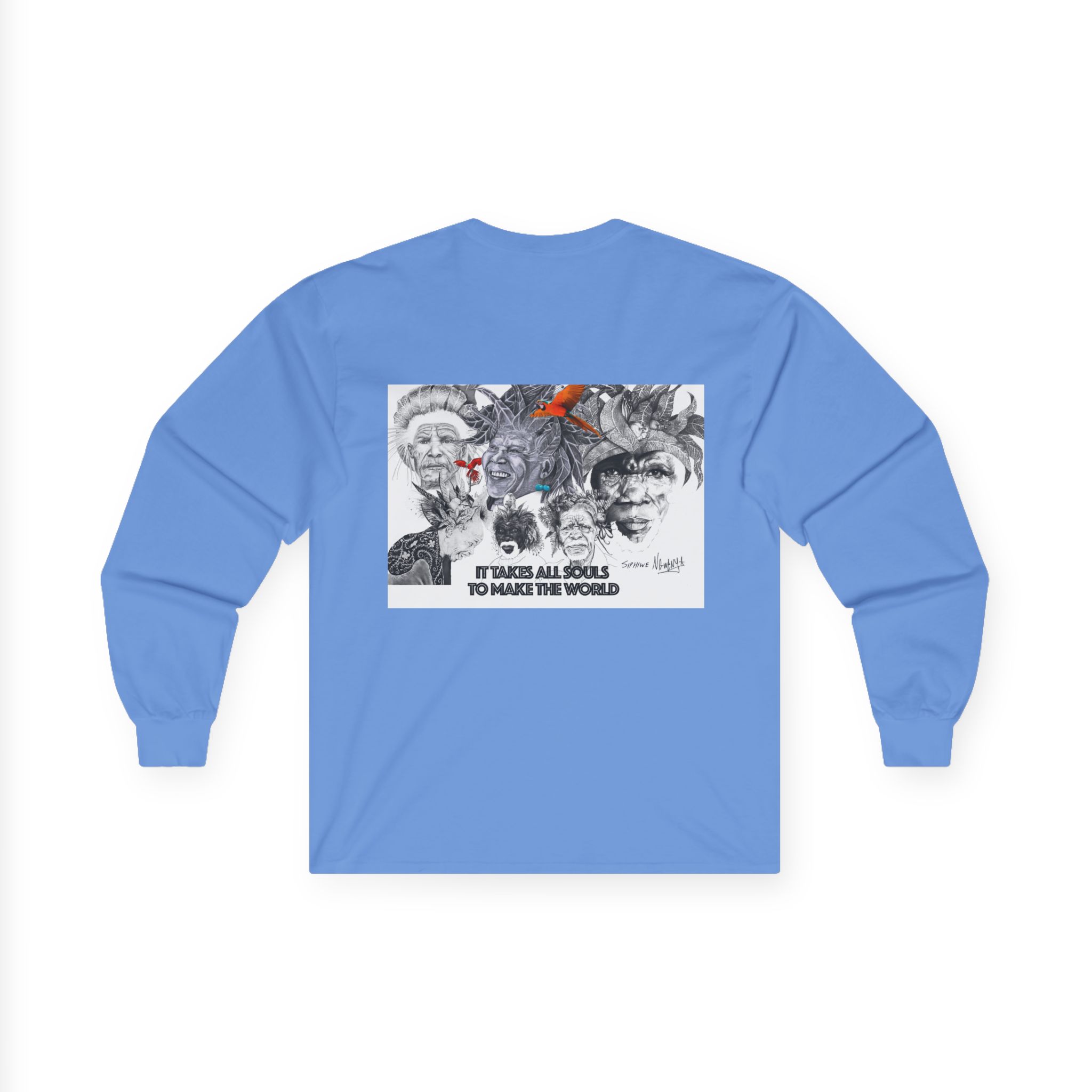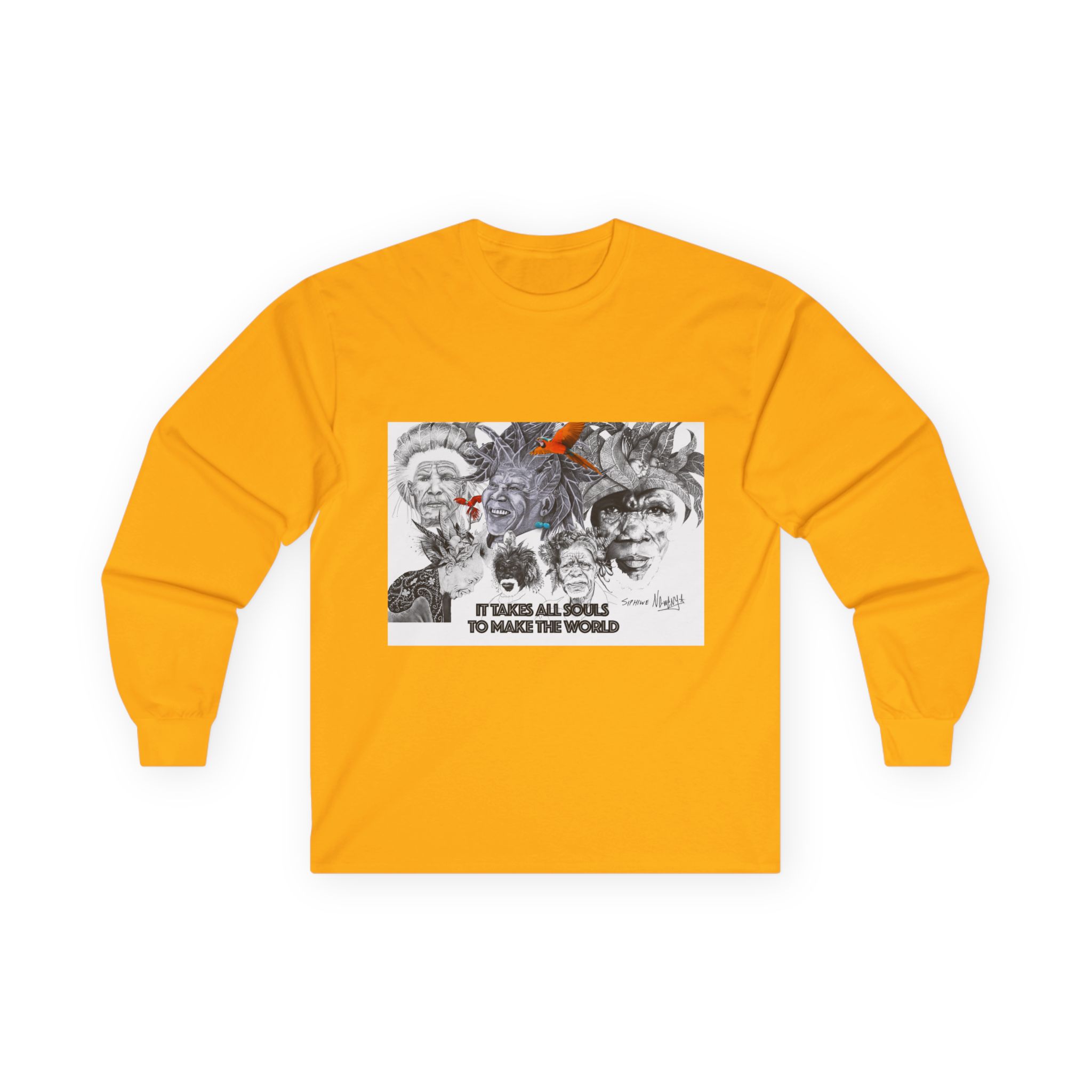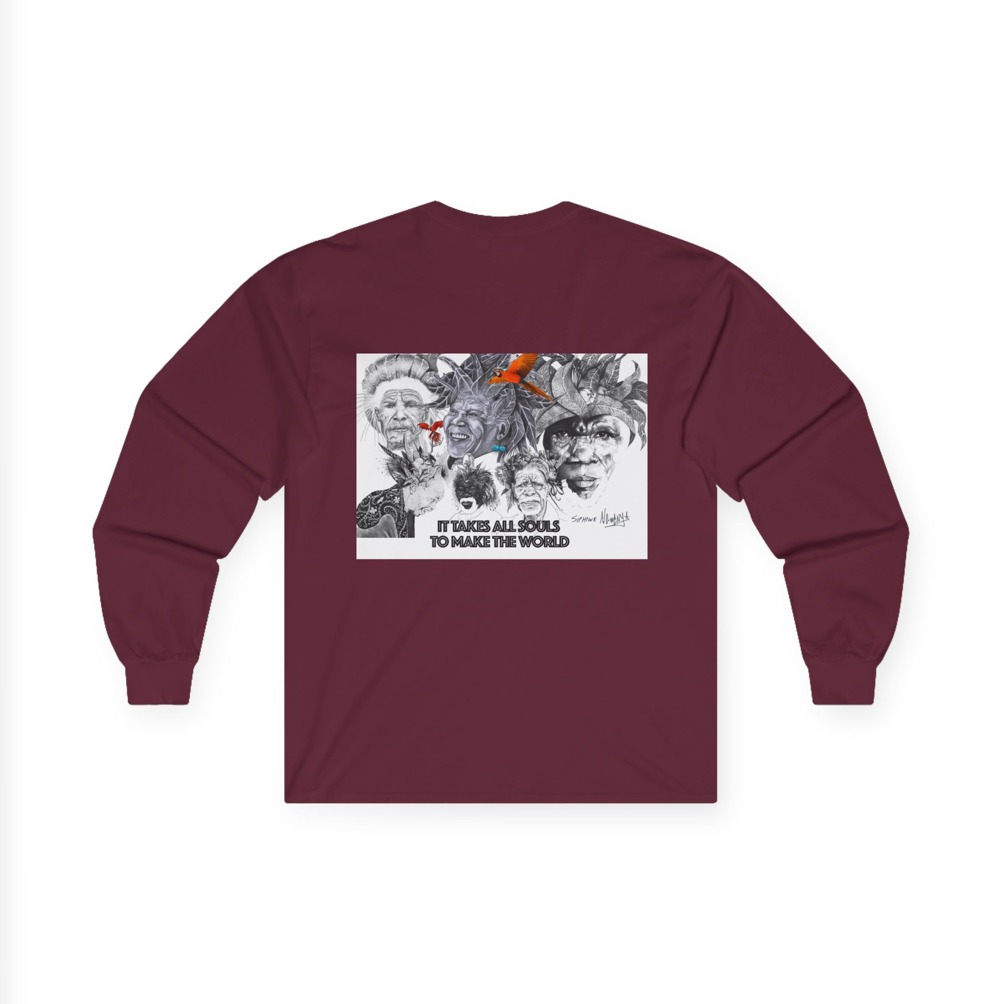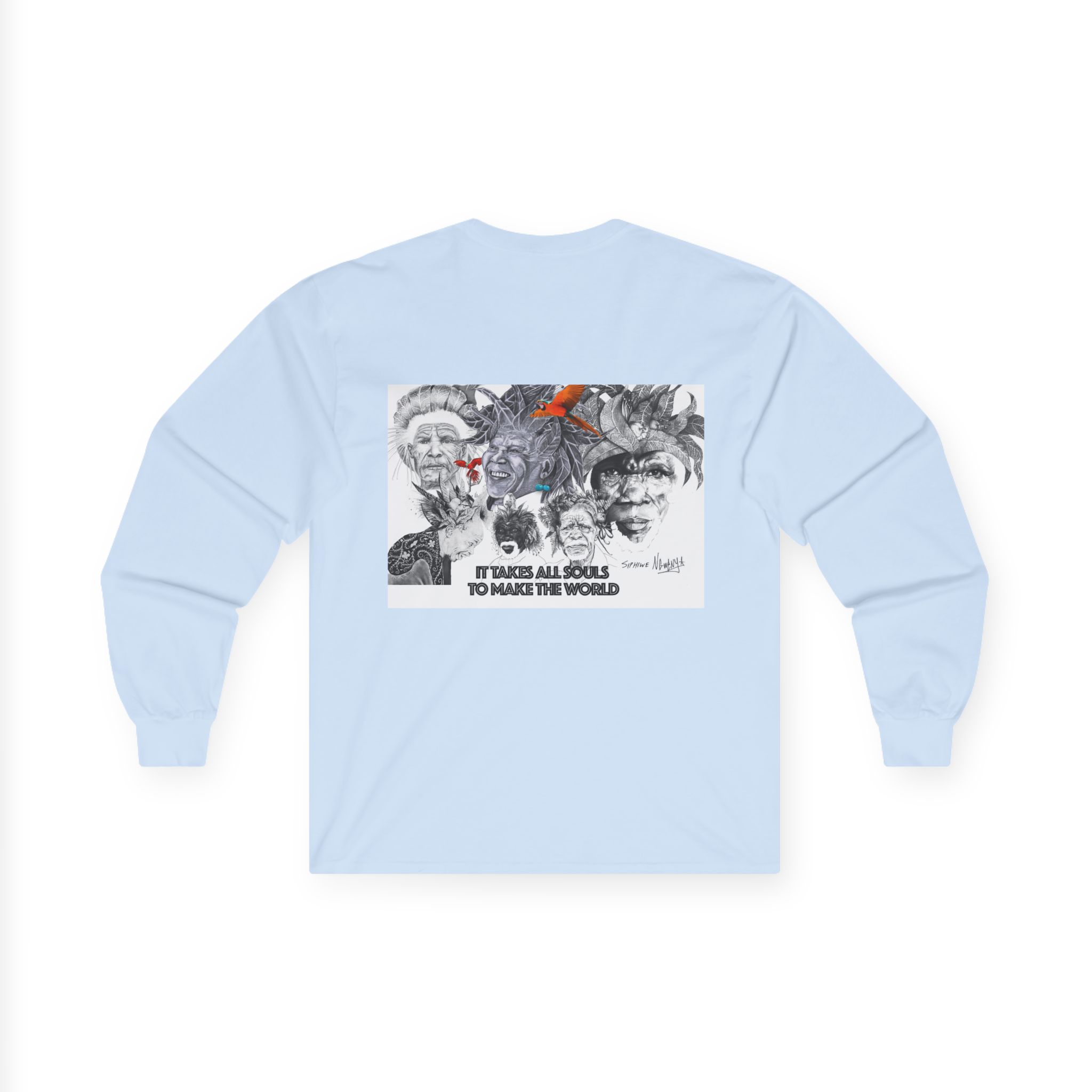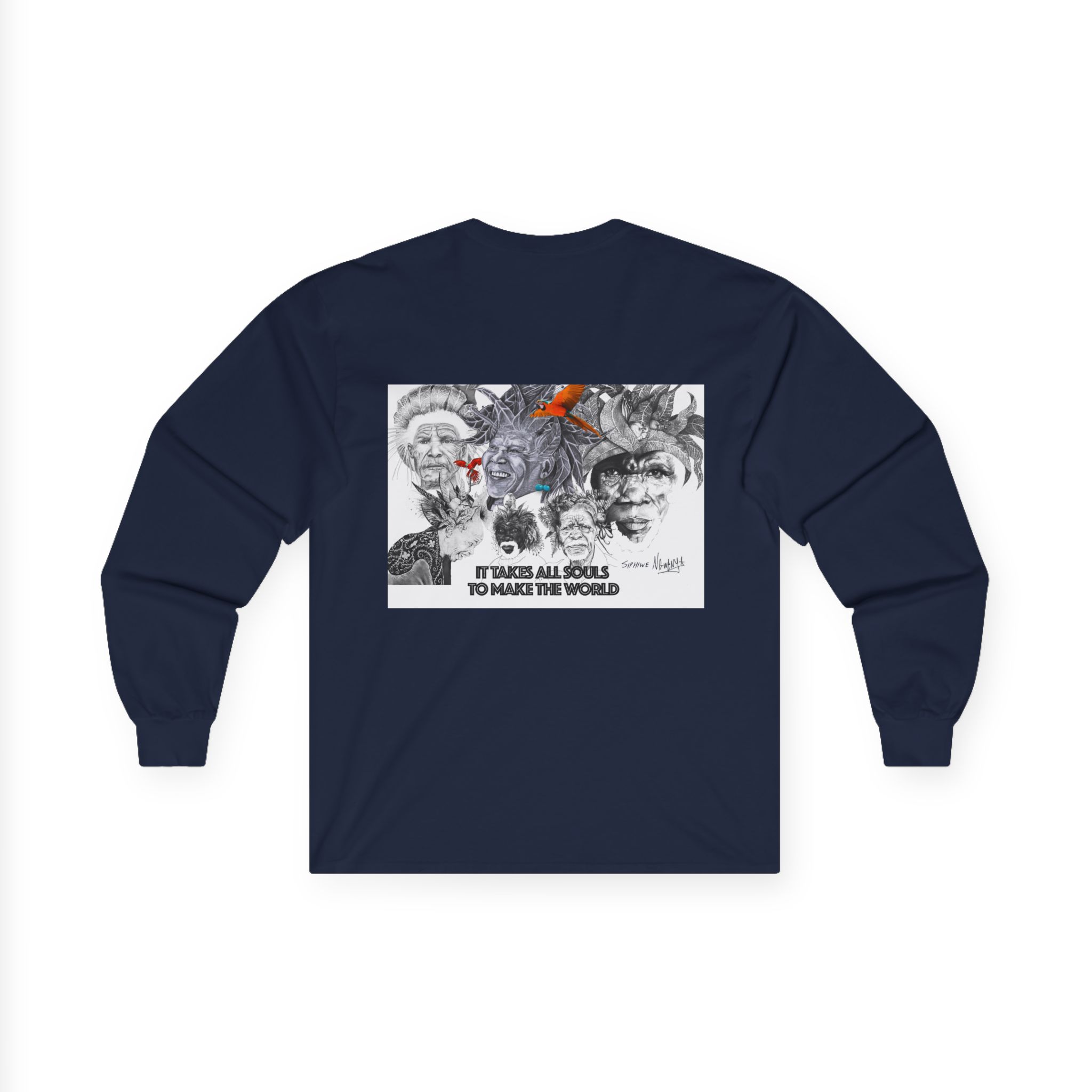 Long Sleeve Tee — “It Takes All Souls to Make the World” Vintage Portrait Graphic