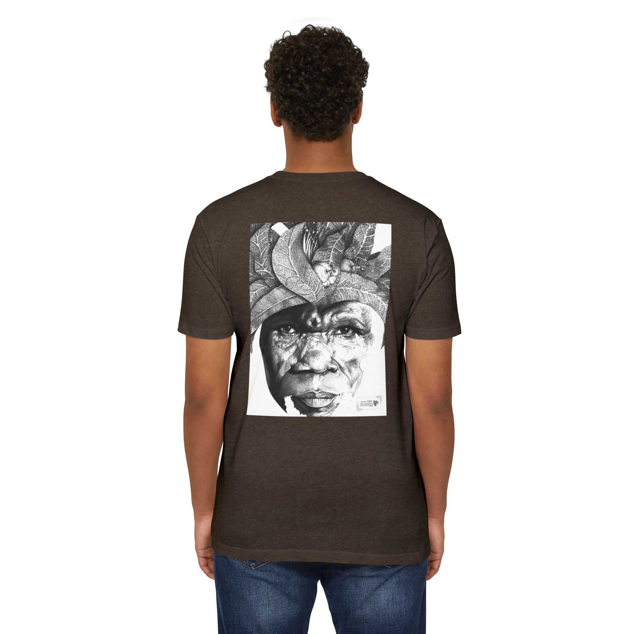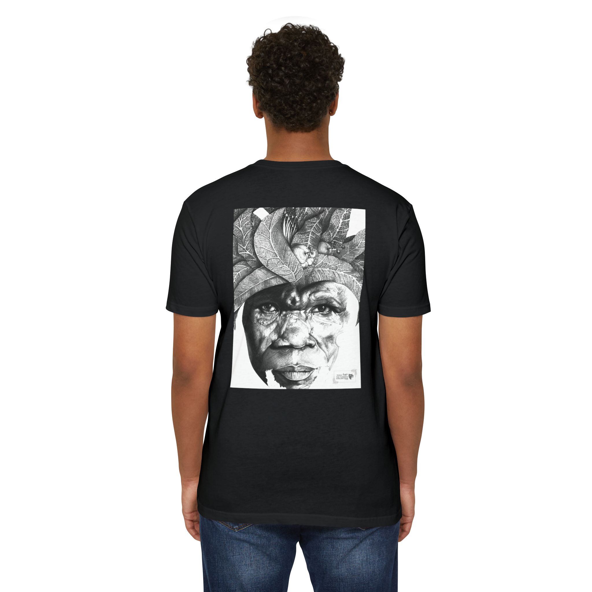 This lightweight, classic-fit tee features The Sunman – Guardian of the Orchard Mind as a striking monochrome portrait that reads like a whispered story from another life. Layered faces and organic forms create a contemplative blend — quiet, bold, and soulful — offering a visual language that reveals itself slowly rather than demanding attention.