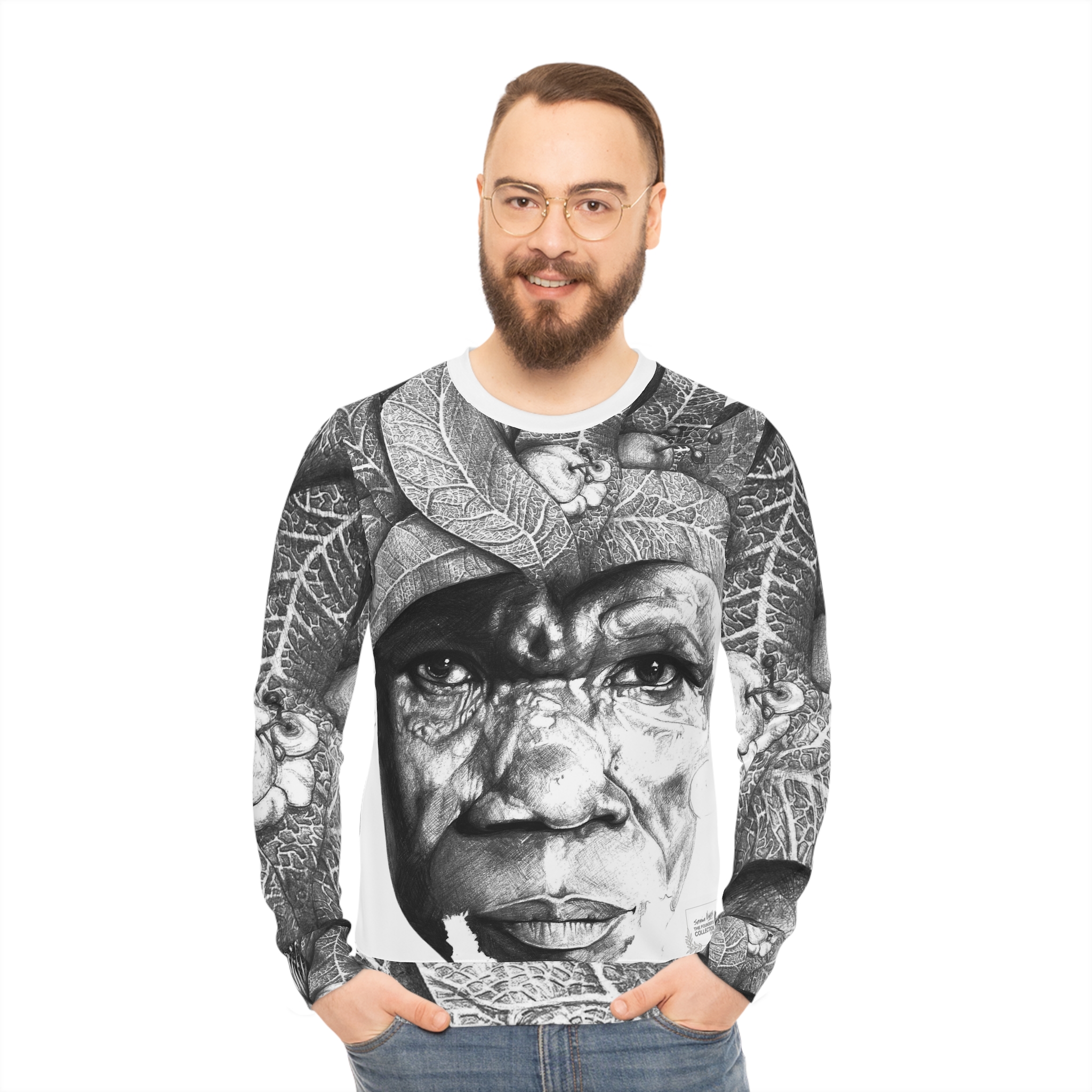 This lightweight sweatshirt brings the quiet power of “The Original Sunman: Vision of the Founder’s Family” by Siphiwe Ngwenya to your everyday wardrobe. It’s a statement that transcends fashion, embodying the Maboneng philosophy that “Artwork needs to Work”—to drive economic and spiritual emancipation. The striking monochrome portrait, filling both the front and back, is a reflection of the profound stories and heritage from communities often overlooked, transforming townships into places of artistic freedom and dignity.