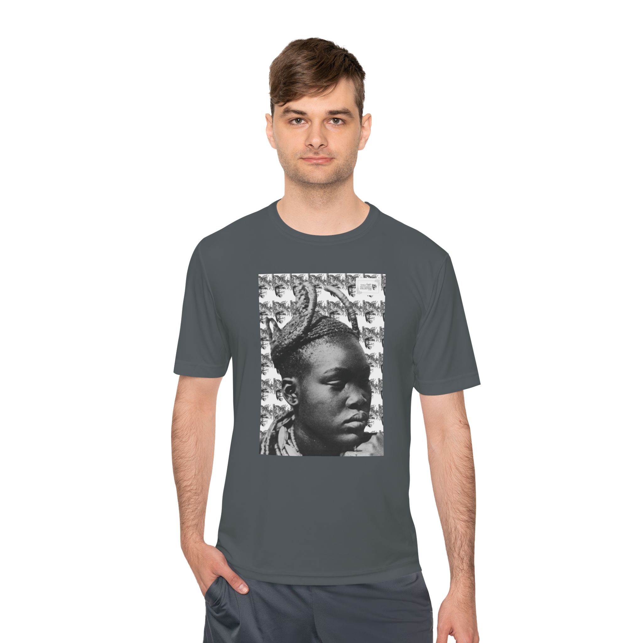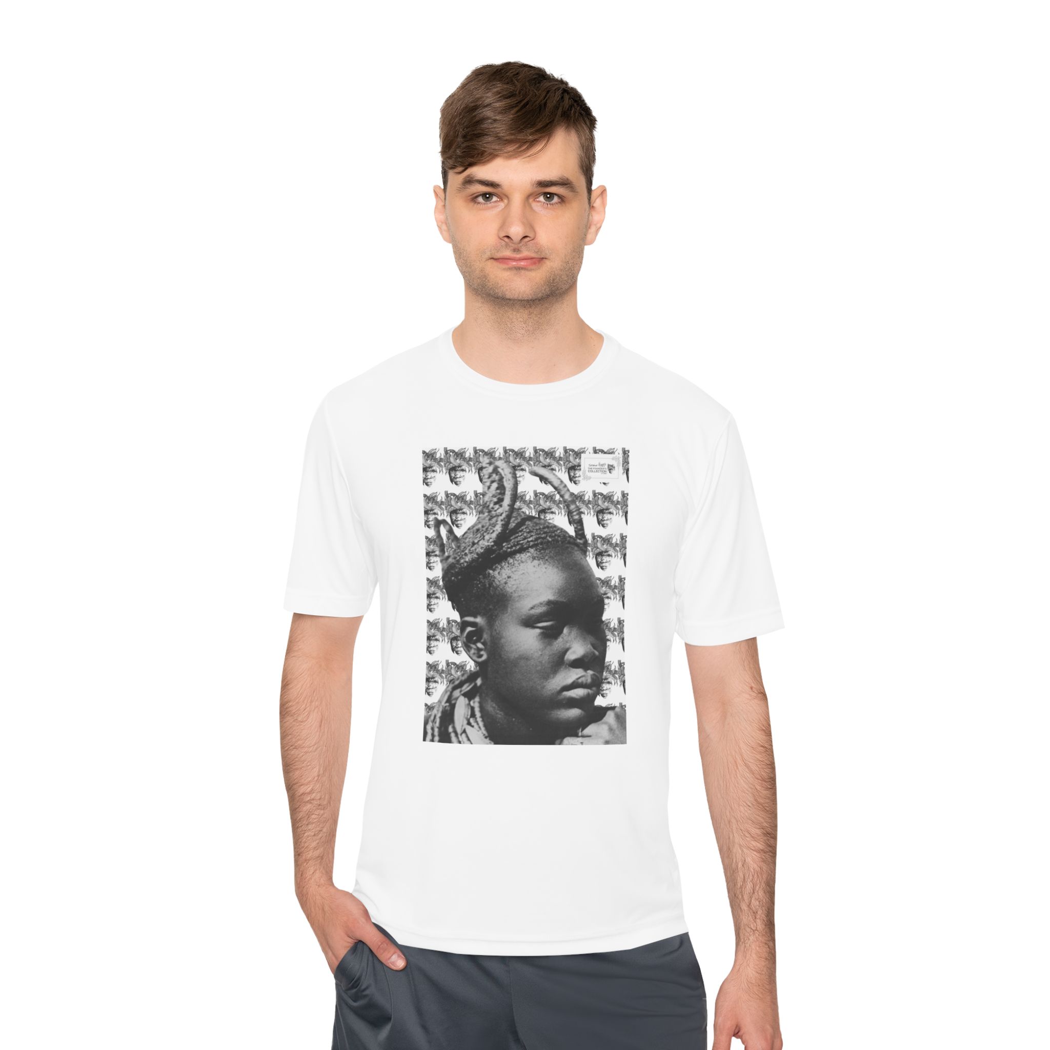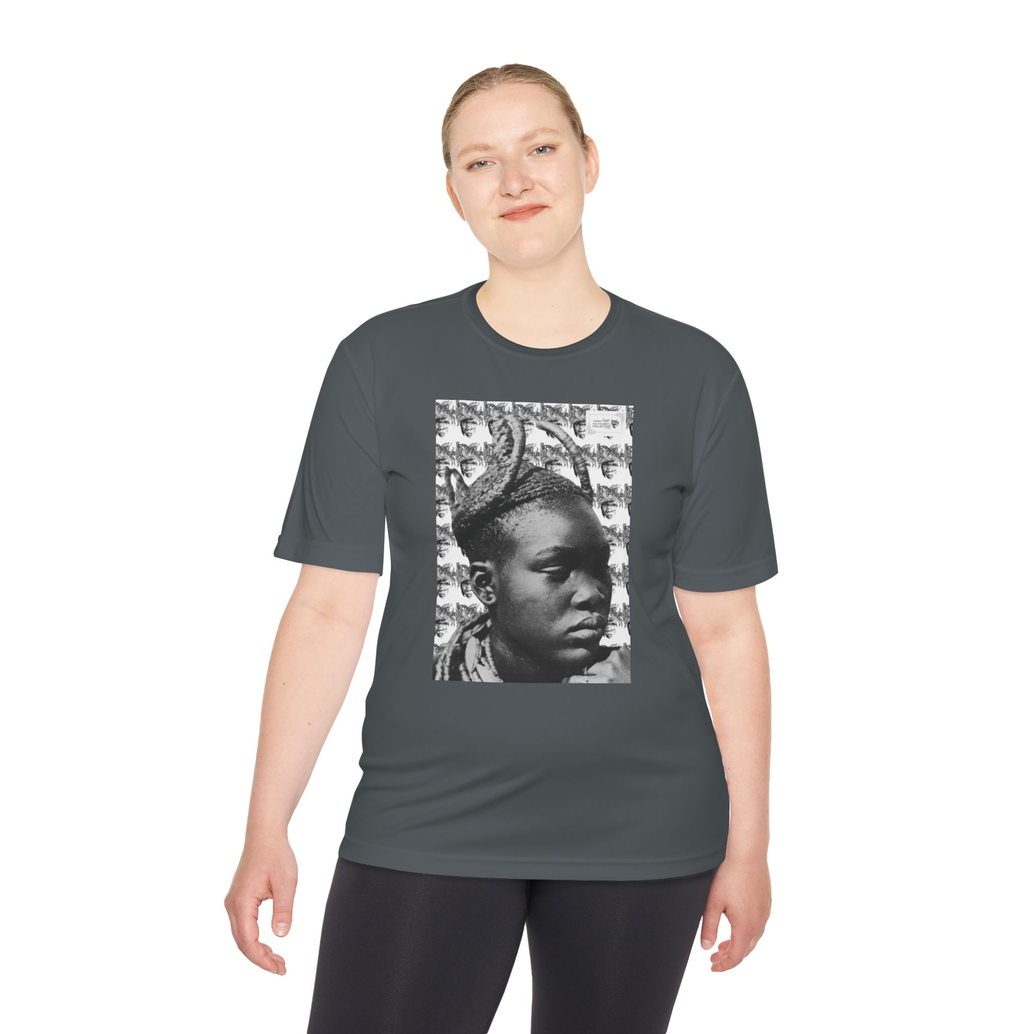 Carry art with you in motion with “Ubuhle Obumnyama” by Siphiwe Ngwenya. This lightweight tee features a central monochrome portrait print on a breathable 100% polyester body, creating a clean, gallery-ready look that holds its shape and dries quickly. Soft yet durable, it layers effortlessly under jackets or stands alone on warm days, letting the artwork take center stage.