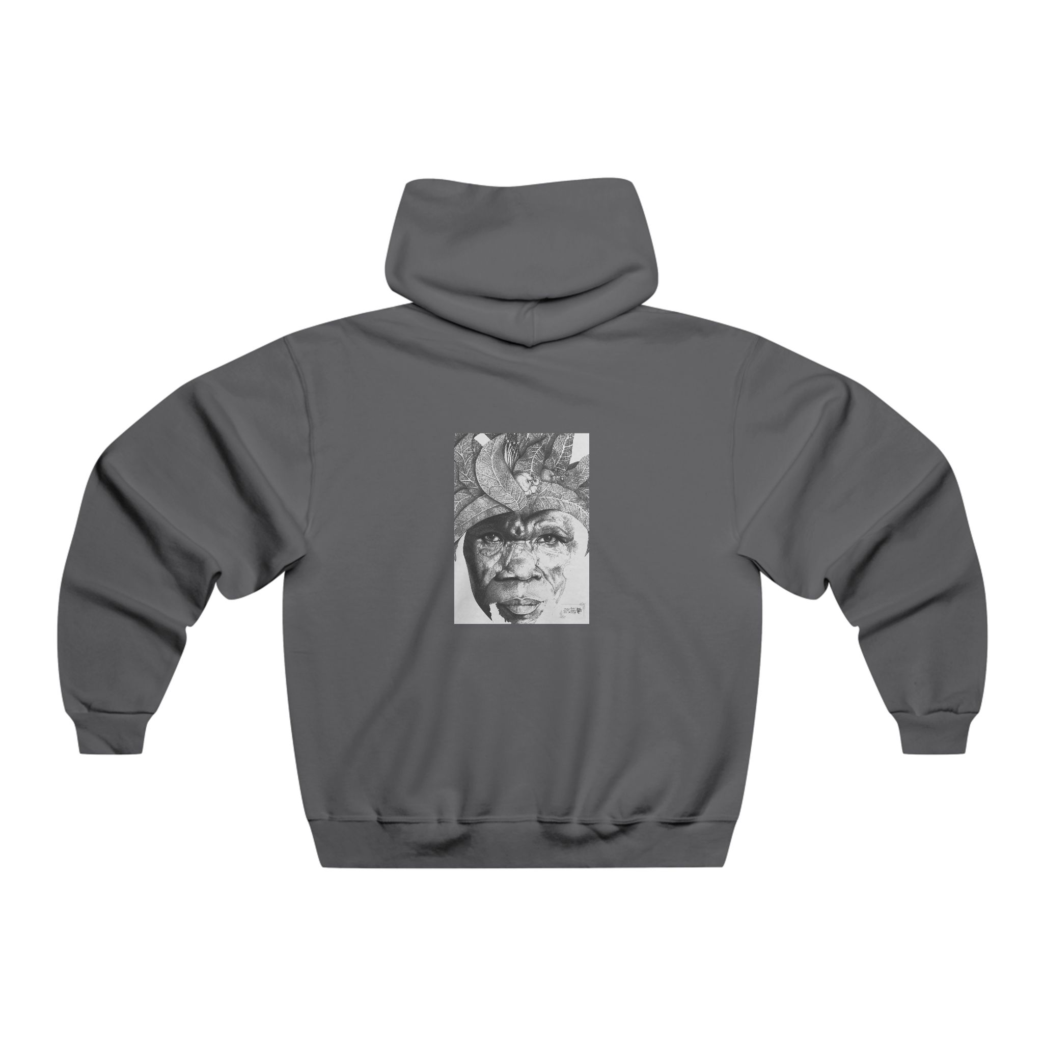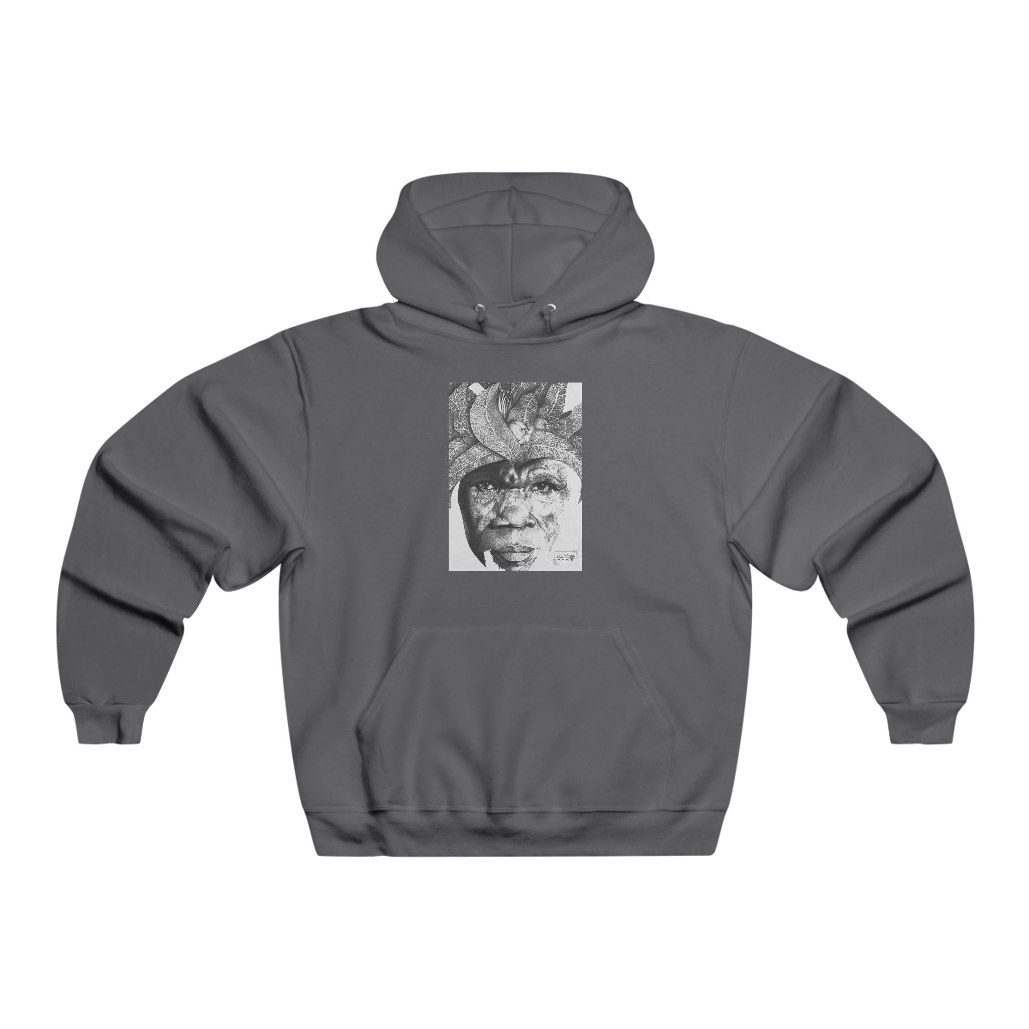 This roomy hooded sweatshirt carries quiet, artful presence. A layered, textured grayscale portrait sits front and center and echoes across the back, transforming the hoodie into wearable art. The medium-heavy knit feels substantial yet soft, holding its shape through daily wear. Practical features like a spacious kangaroo pouch pocket and adjustable drawstring hood make it ideal for slow mornings, gallery walks, or late-night conversations. Wear it as a thoughtful, composed anchor piece in your wardrobe.