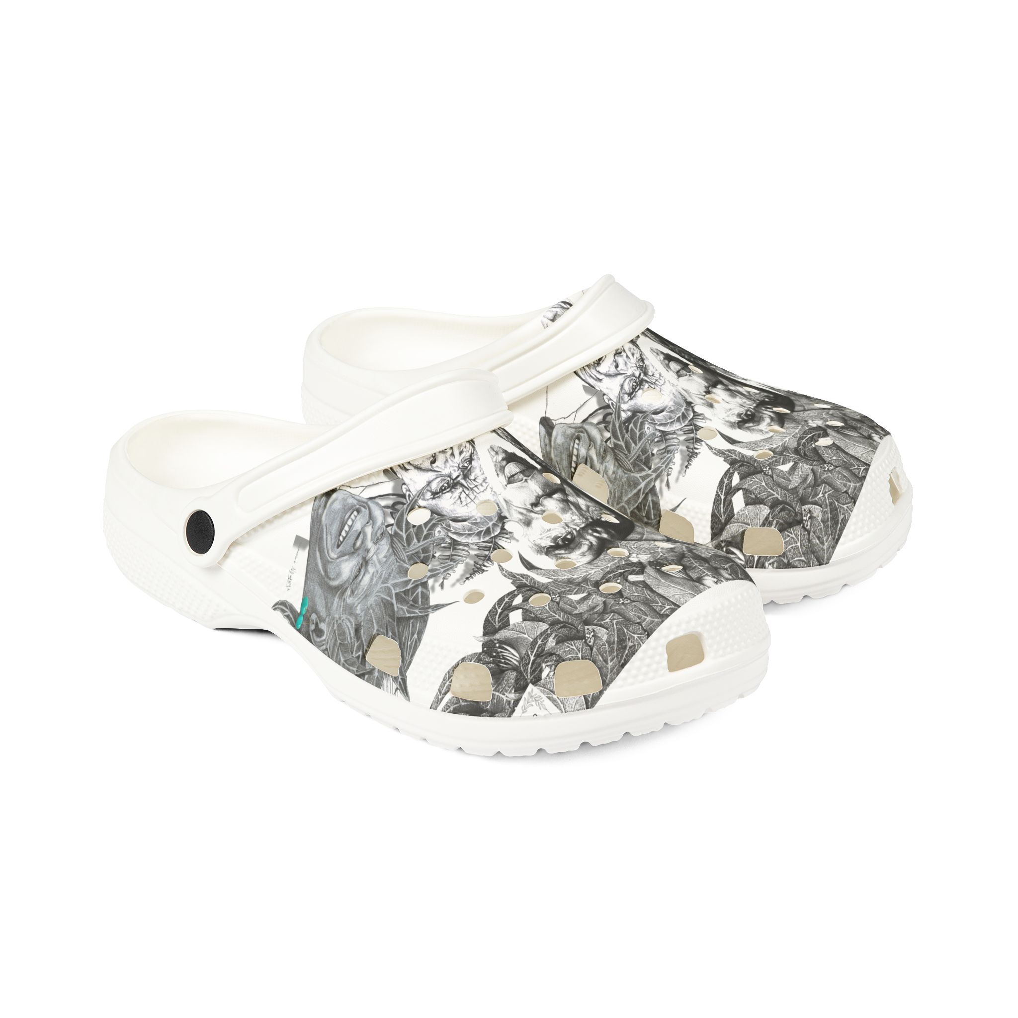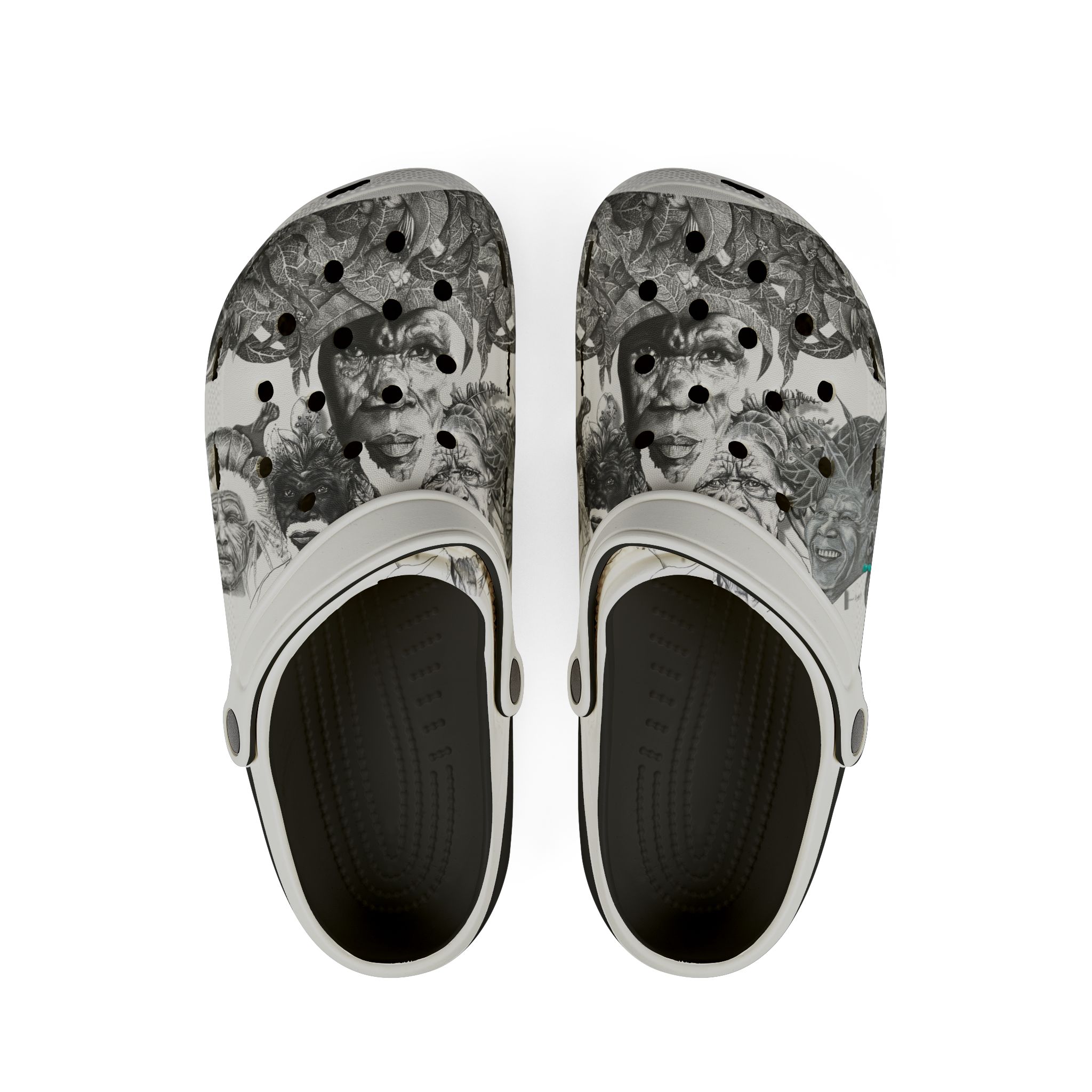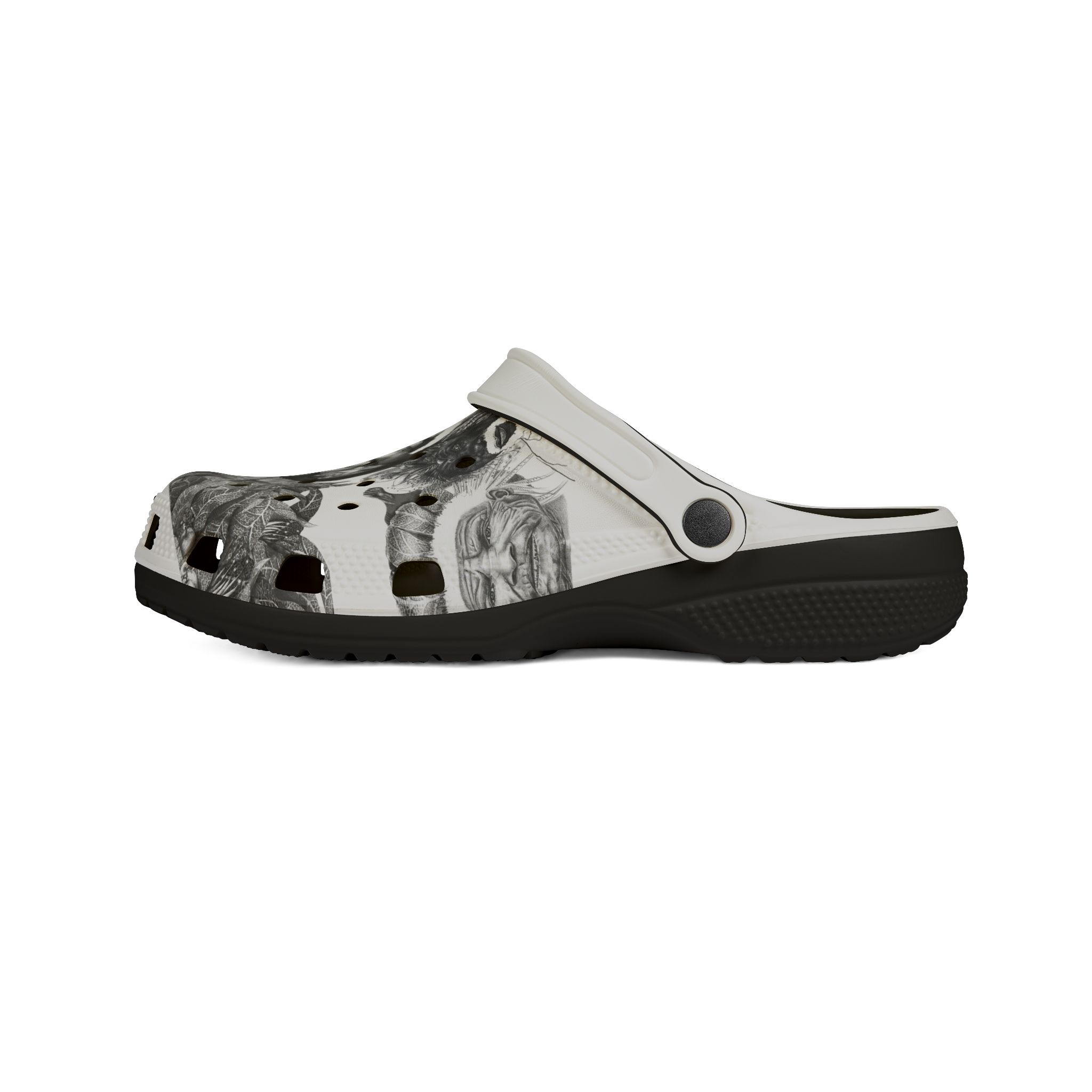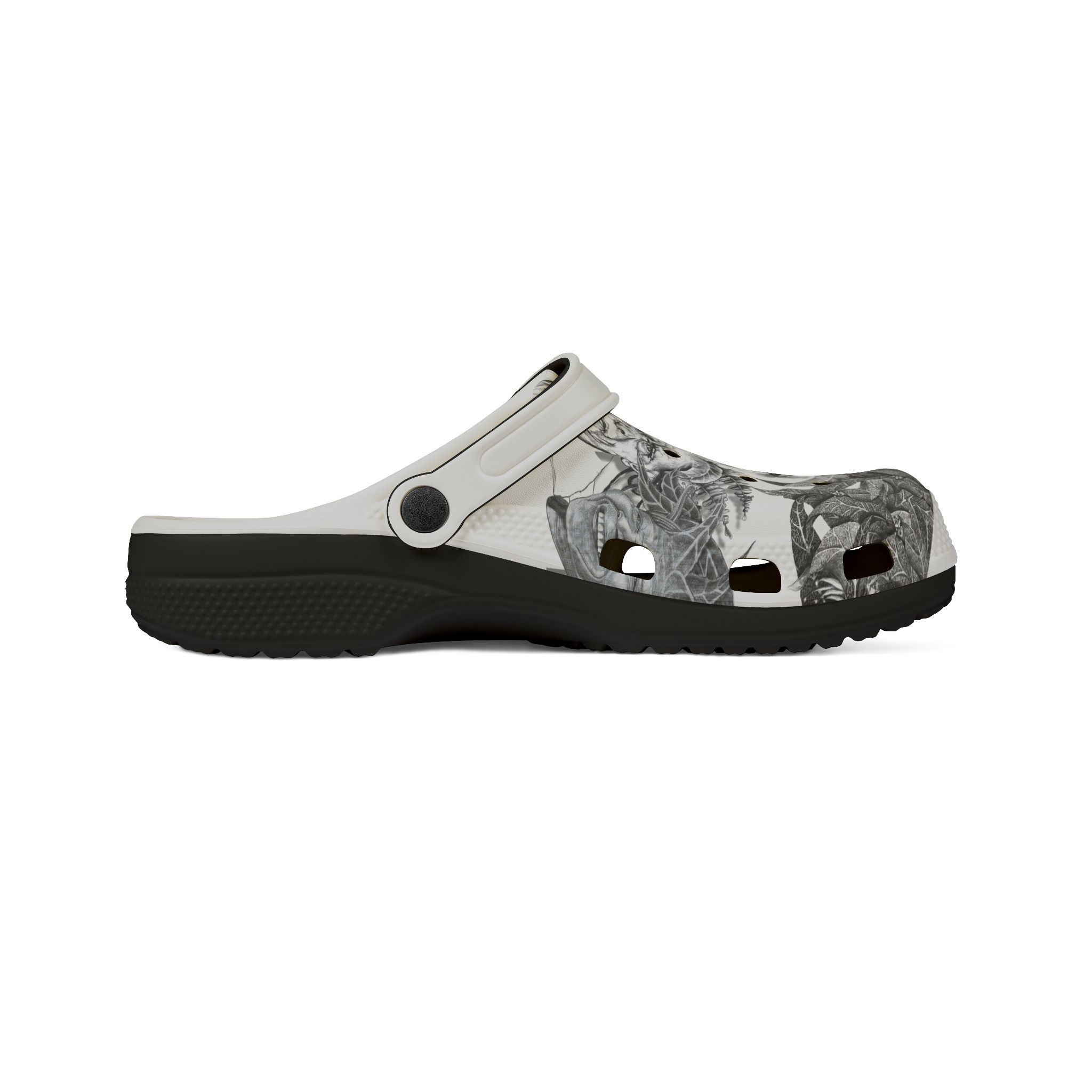 Printed EVA Foam Clogs — Black & White Art Face All-Over Print