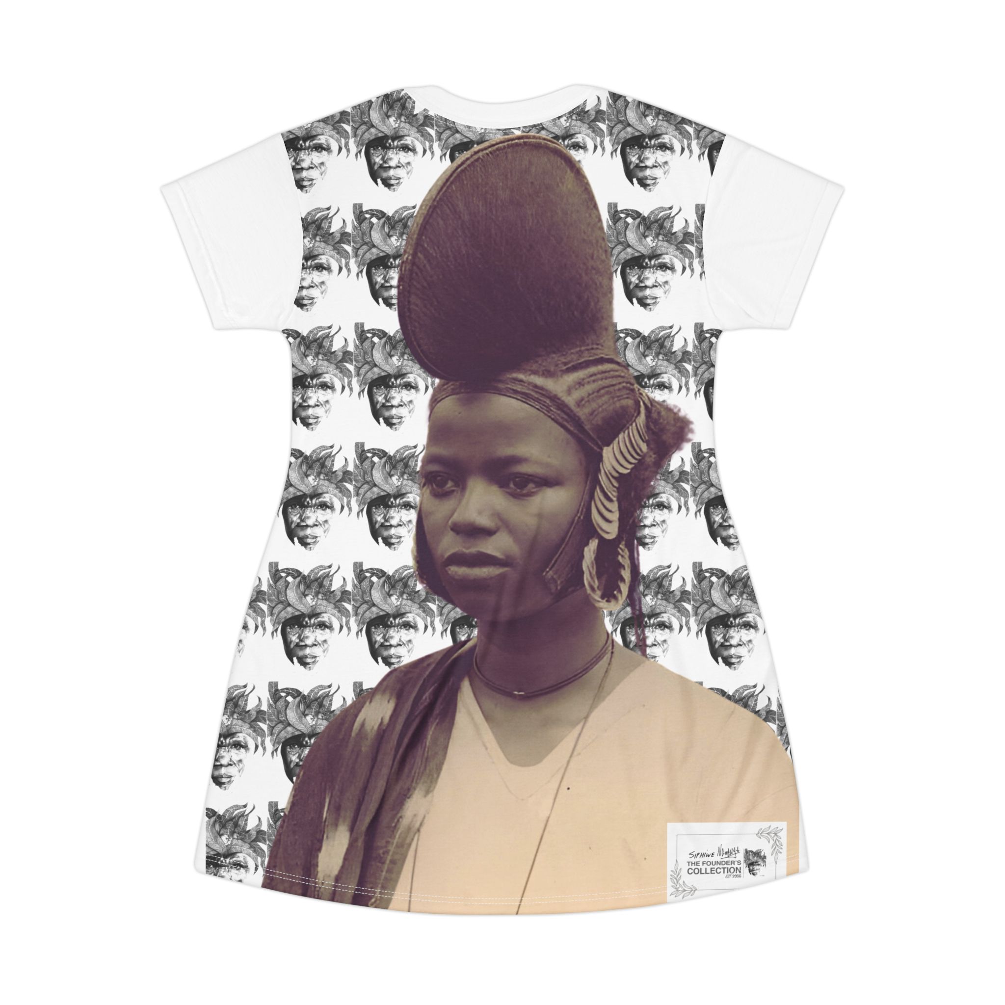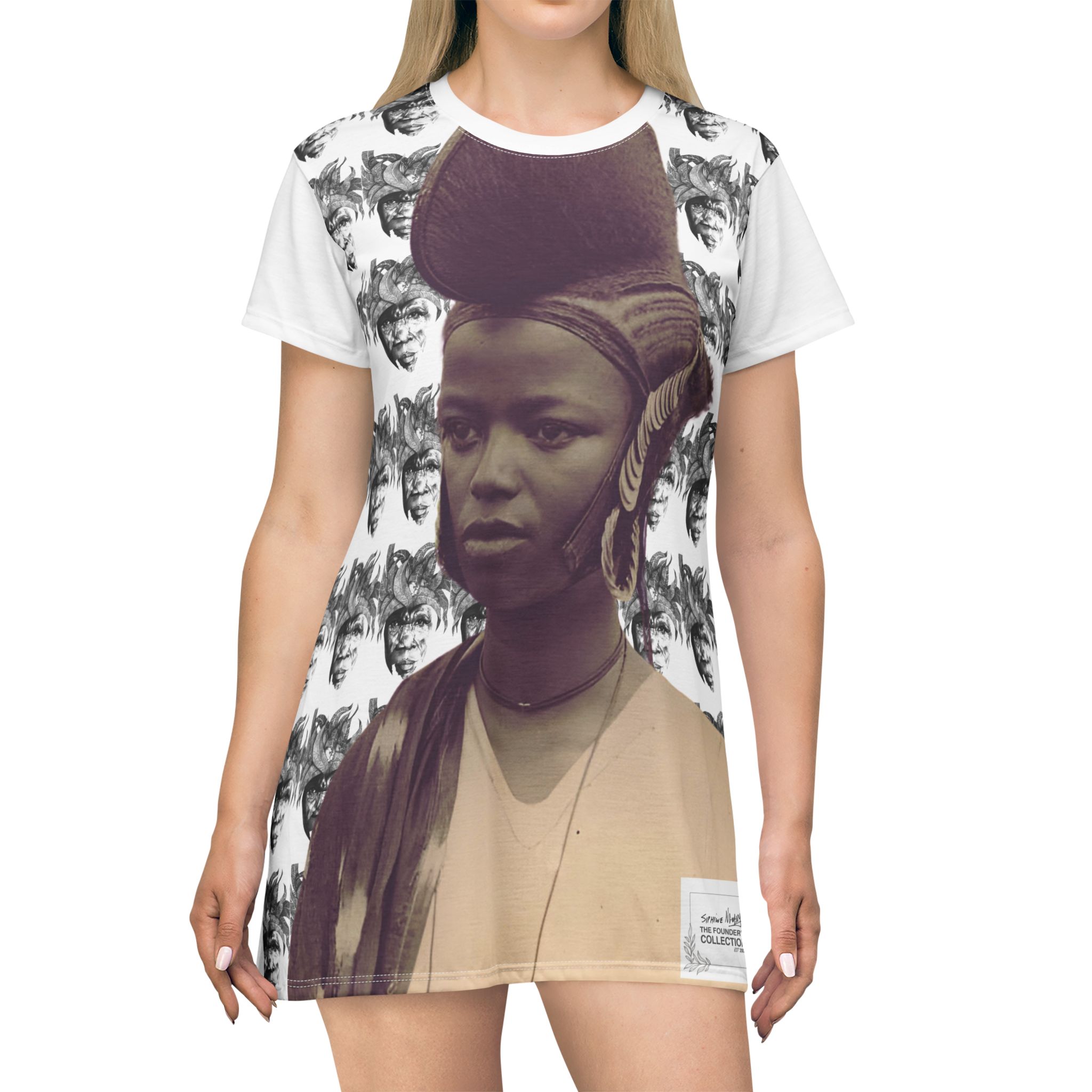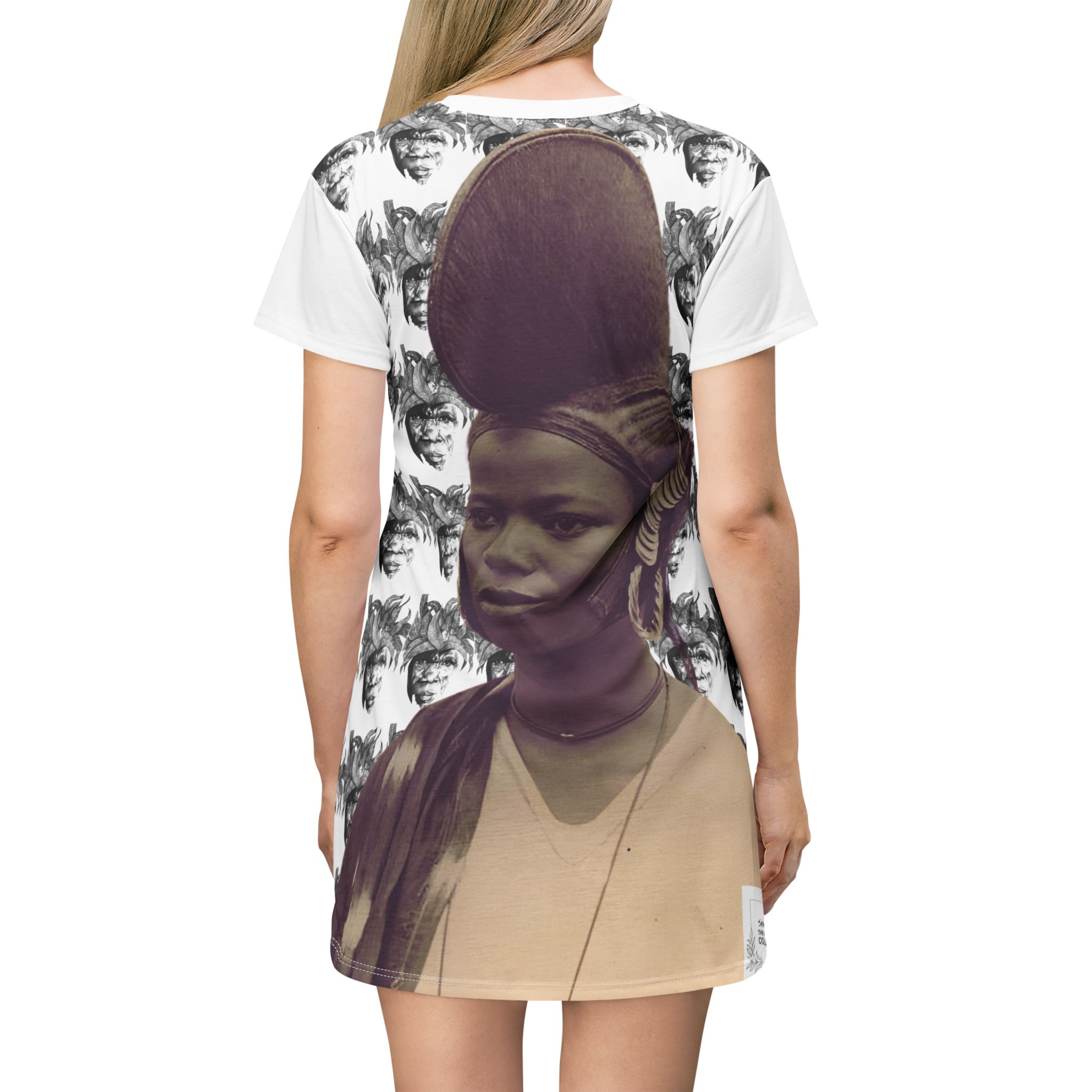 Here’s a descriptive, artwork-focused product listing for your All-Over-Print T-Shirt Dress, keeping strictly to your original product info, while adding artwork context, the “Artworks that Work” philosophy, and an indigenous/vibey artwork name: