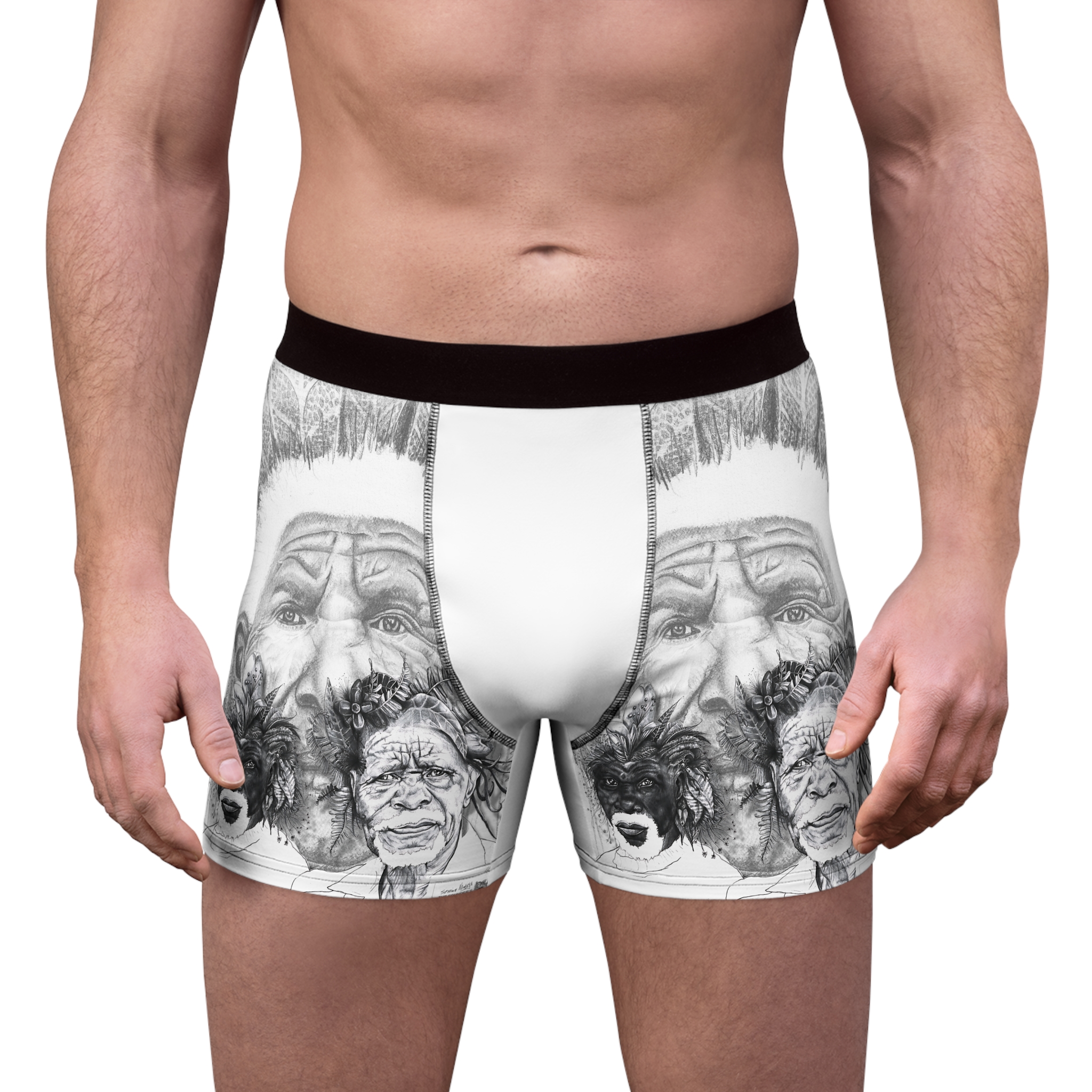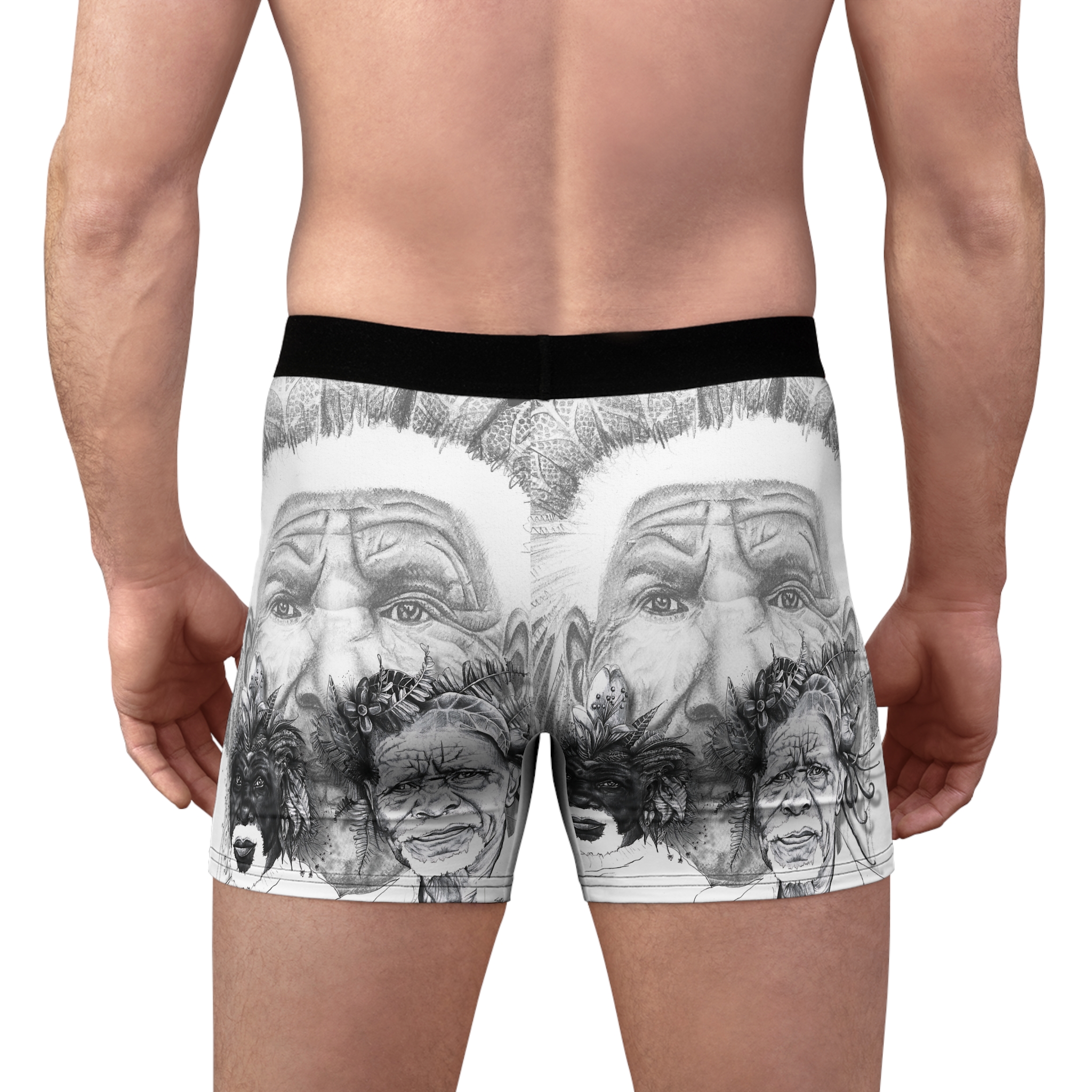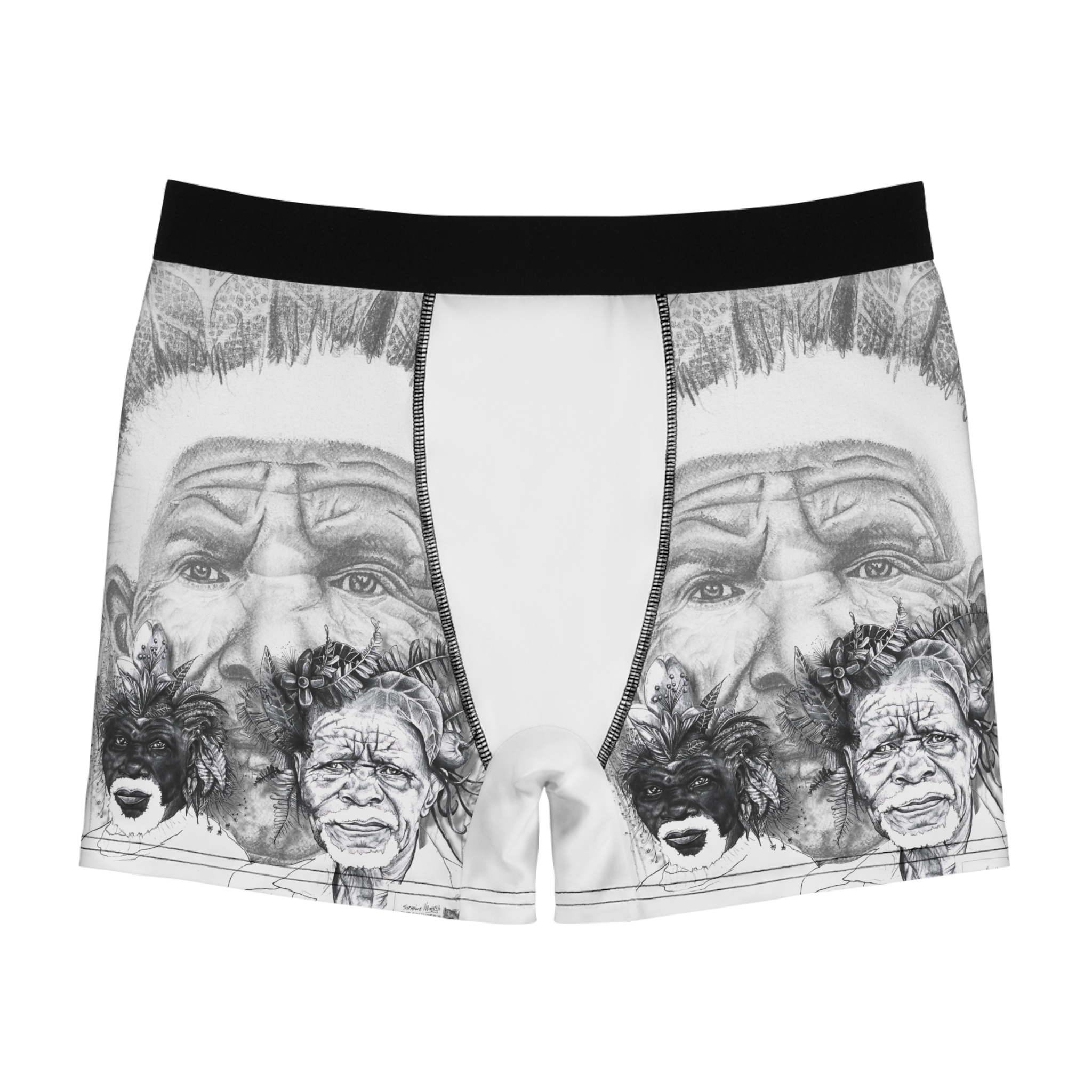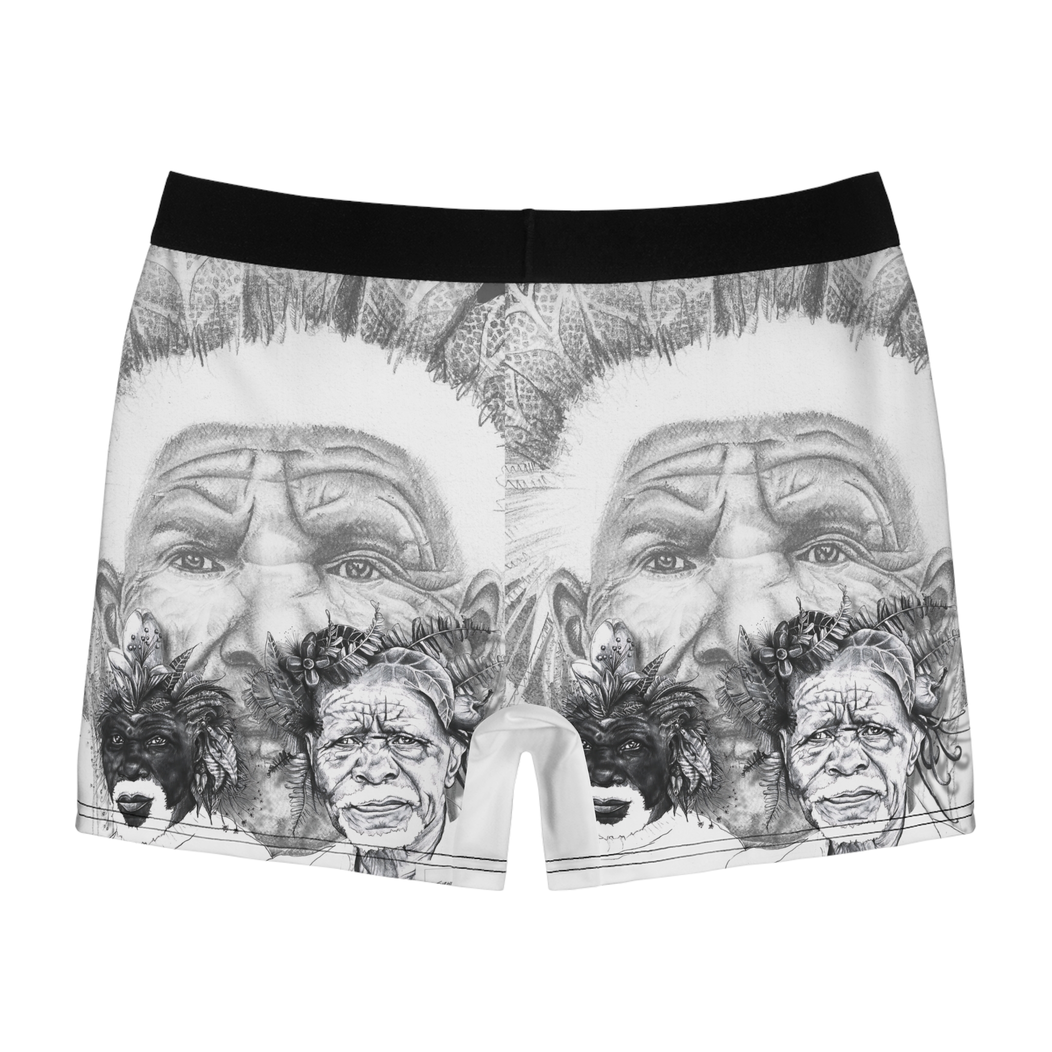 Tribal Elder Sketch Boxer Briefs — Artistic Black & White AOP Men’s Underwear