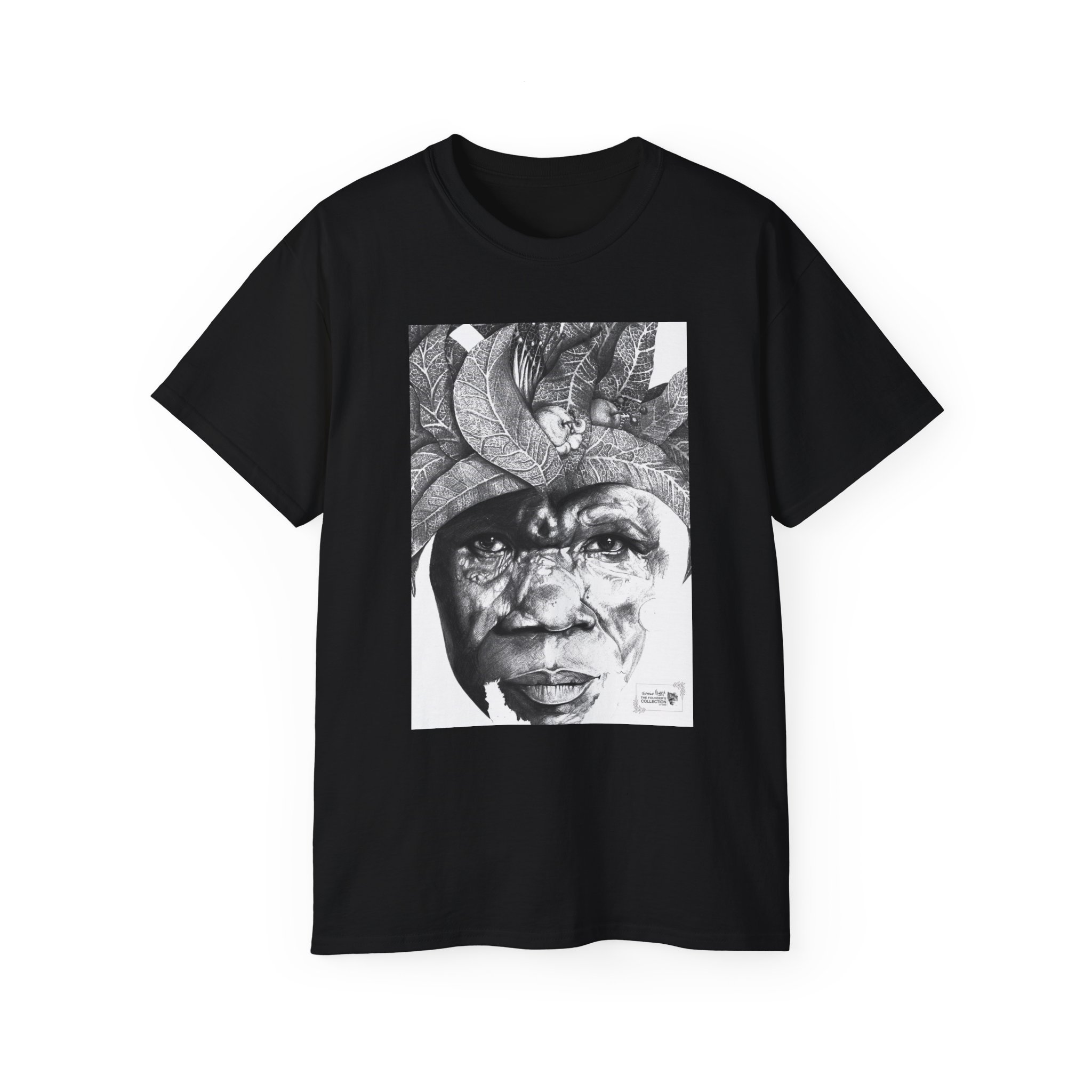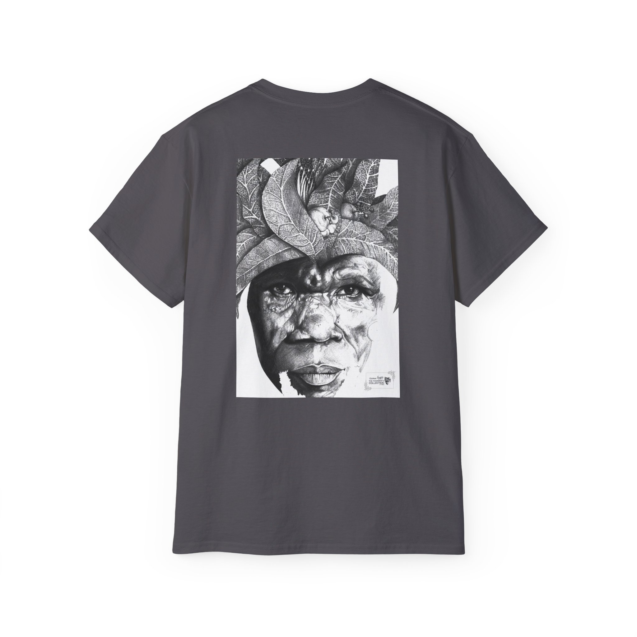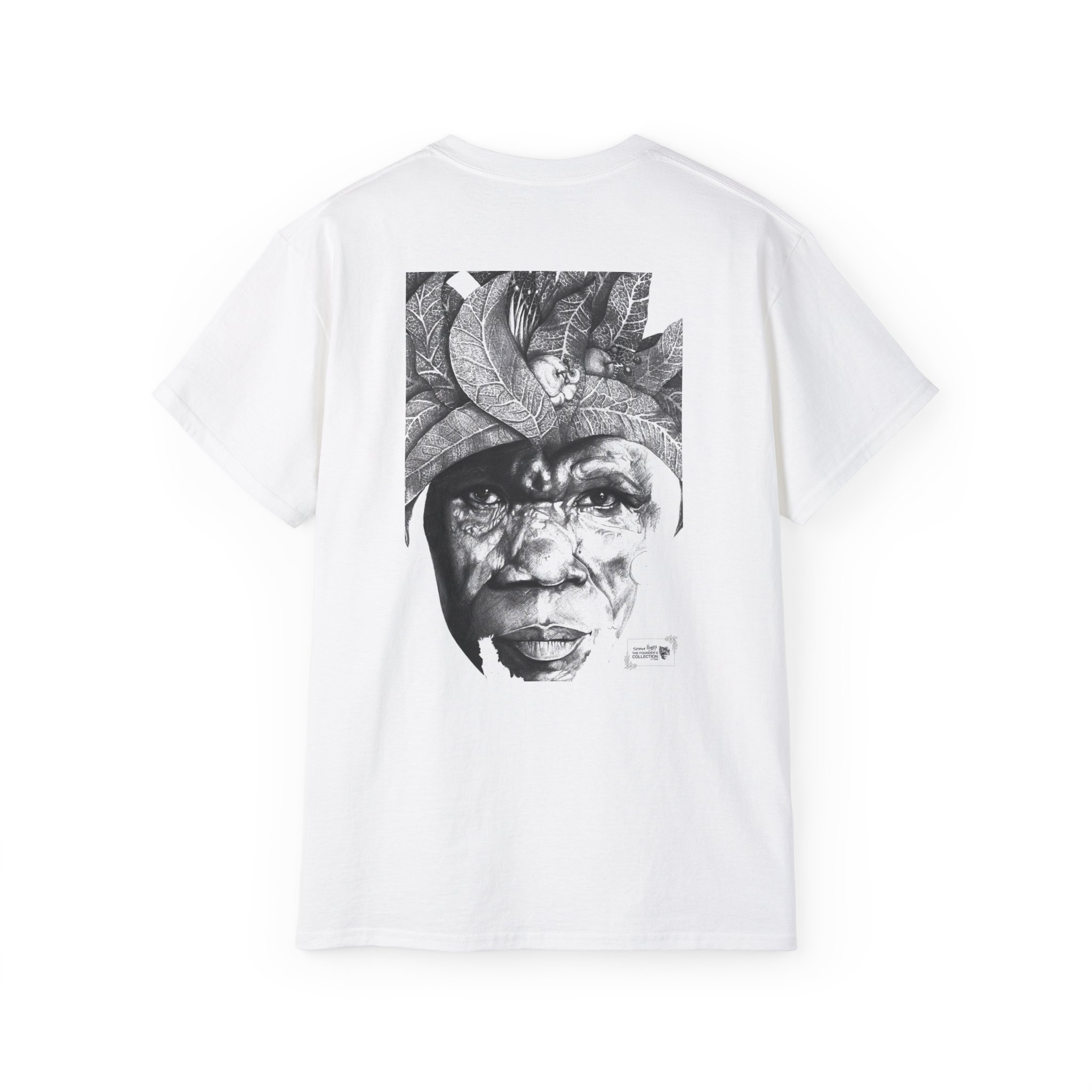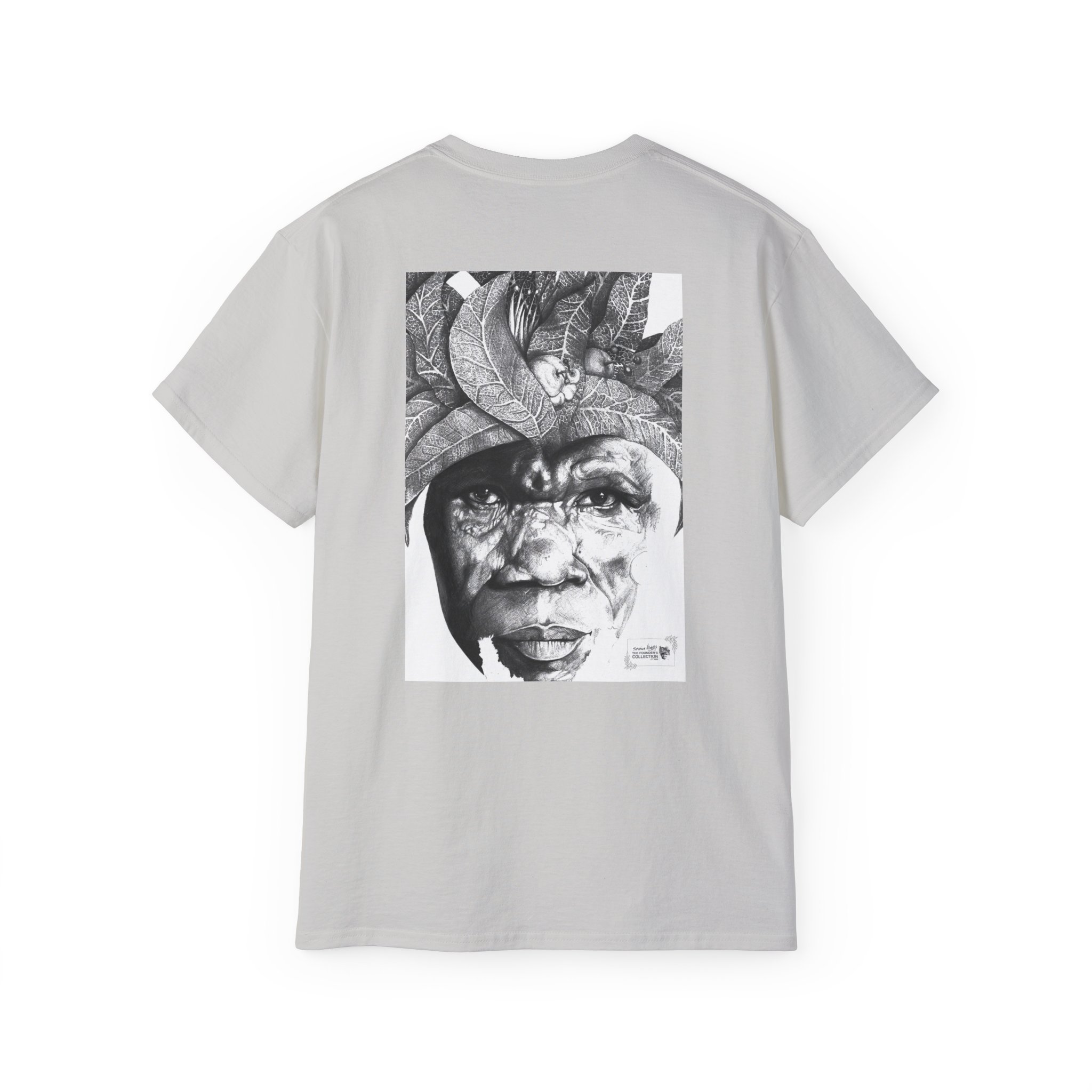 Rooted in Siphiwe Ngwenya’s Artworks that Work philosophy, this piece transforms everyday clothing into a carrier of meaning. The portrait reflects subtle storytelling — about wisdom, endurance, and cultivated inner worlds — making the tee ideal for those who prefer expression that unfolds slowly rather than announces itself.