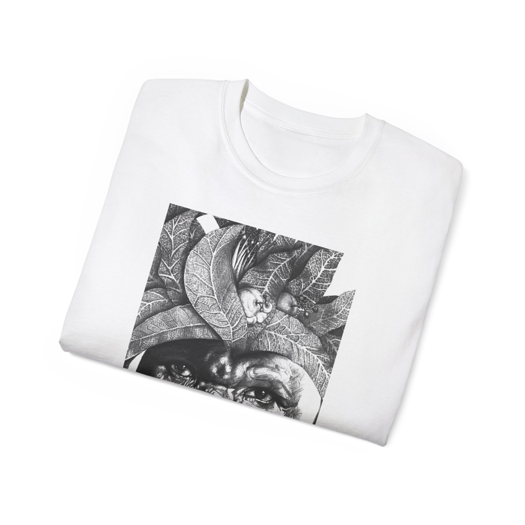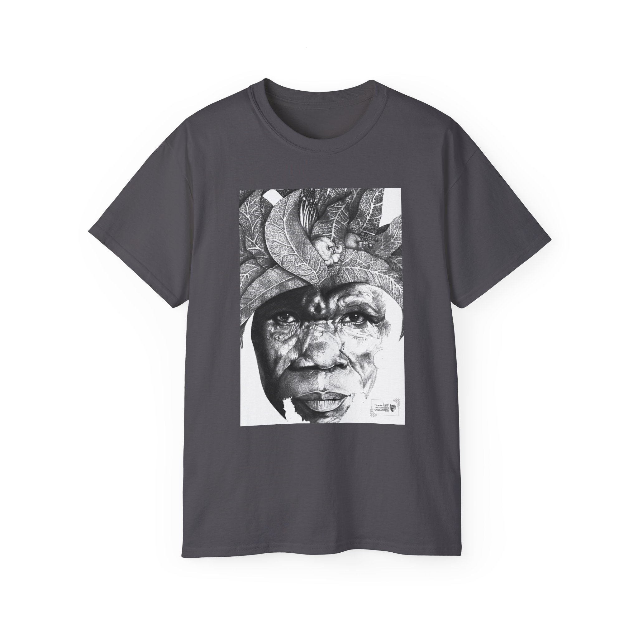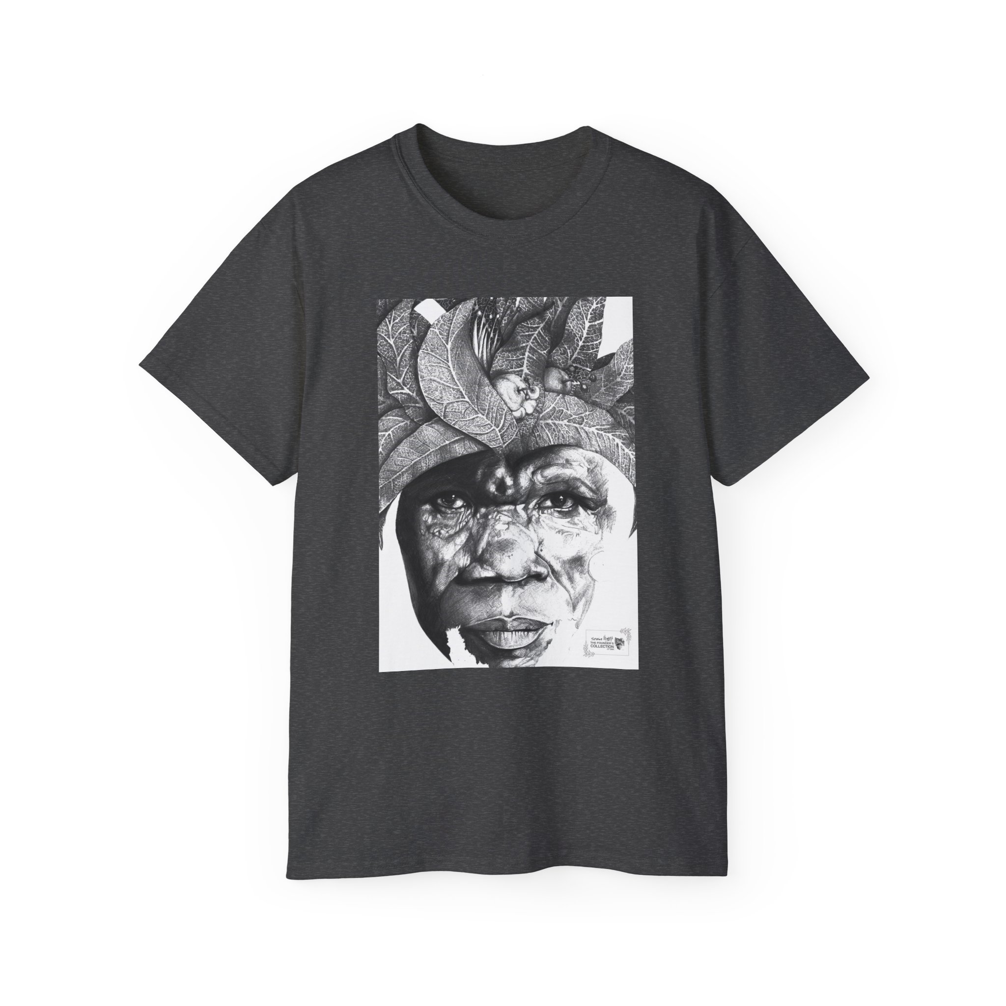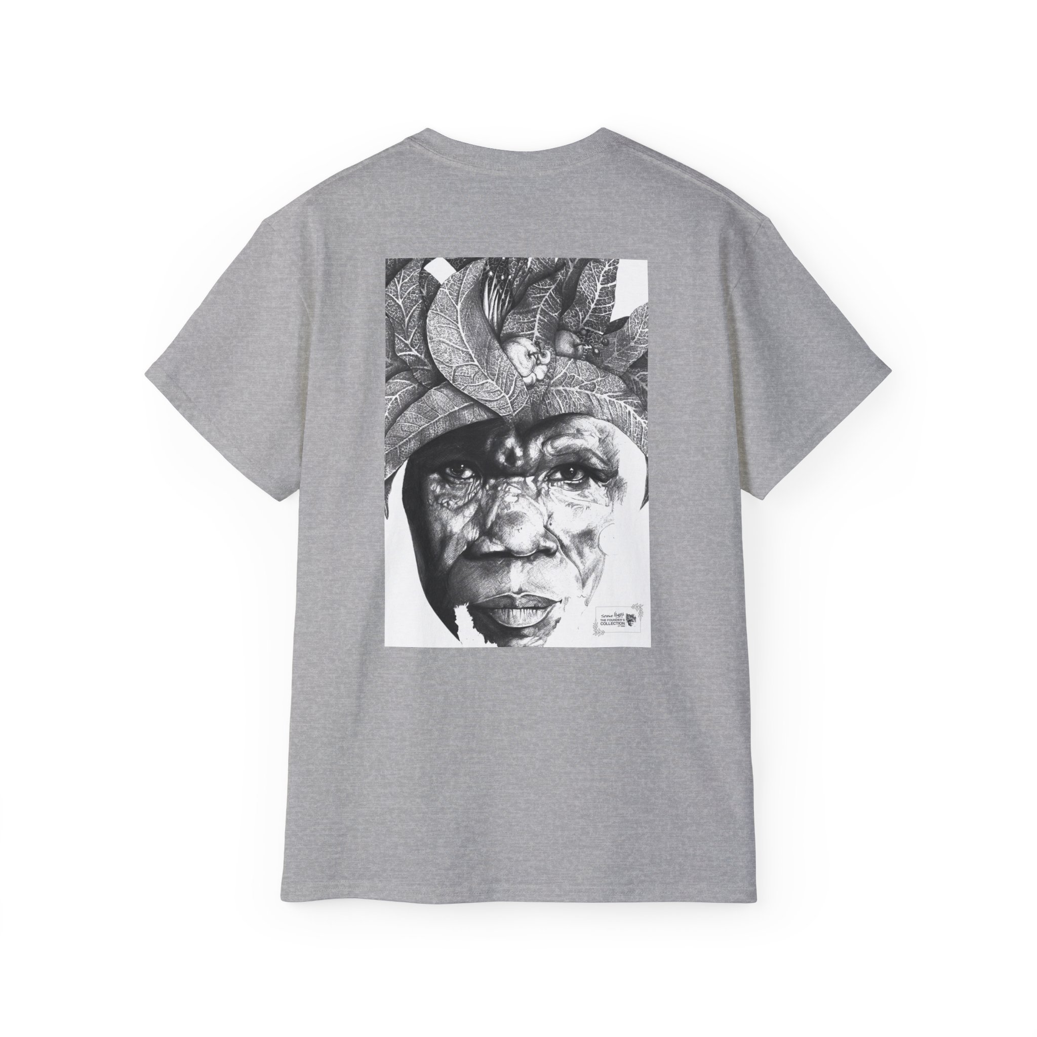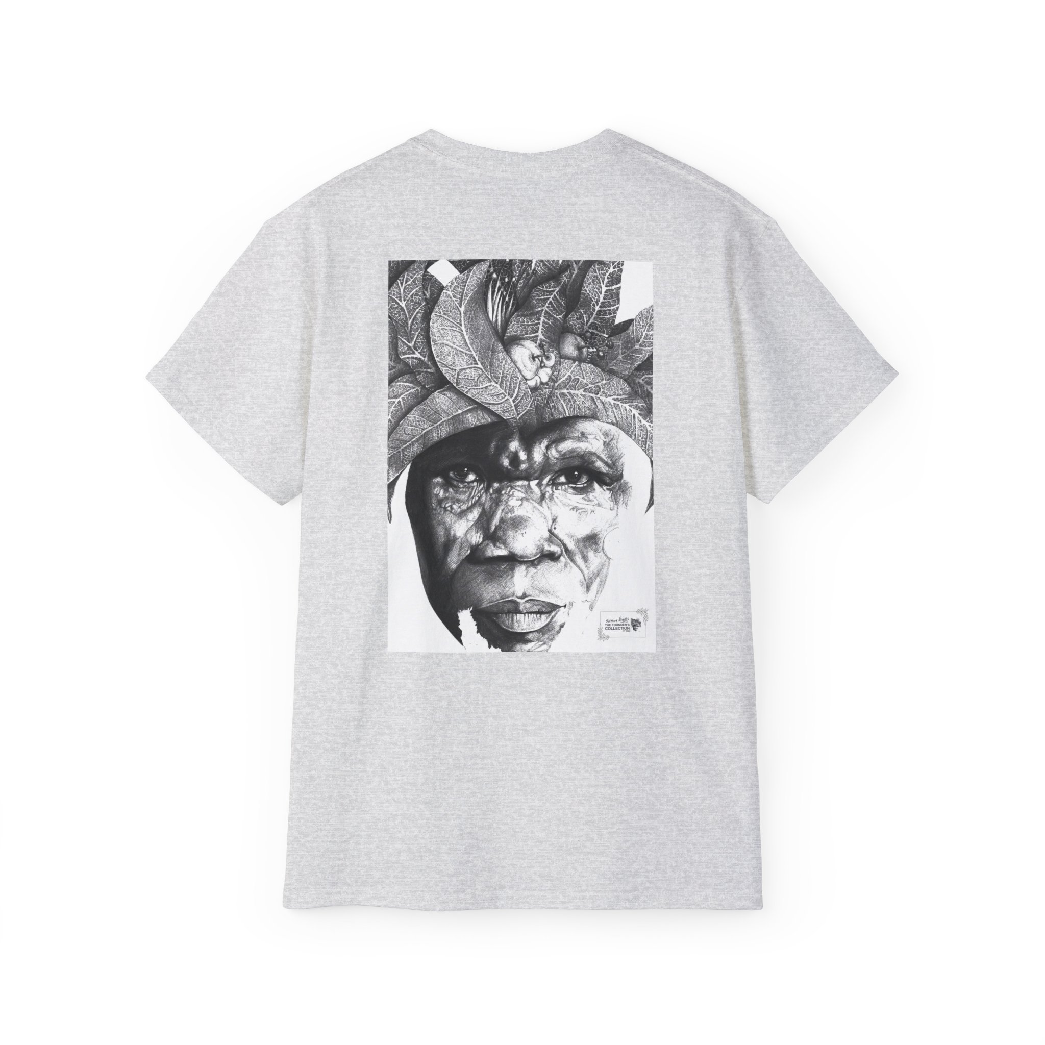 Rooted in Siphiwe Ngwenya’s Artworks that Work philosophy, this piece transforms everyday clothing into a carrier of meaning. The portrait reflects subtle storytelling — about wisdom, endurance, and cultivated inner worlds — making the tee ideal for those who prefer expression that unfolds slowly rather than announces itself.