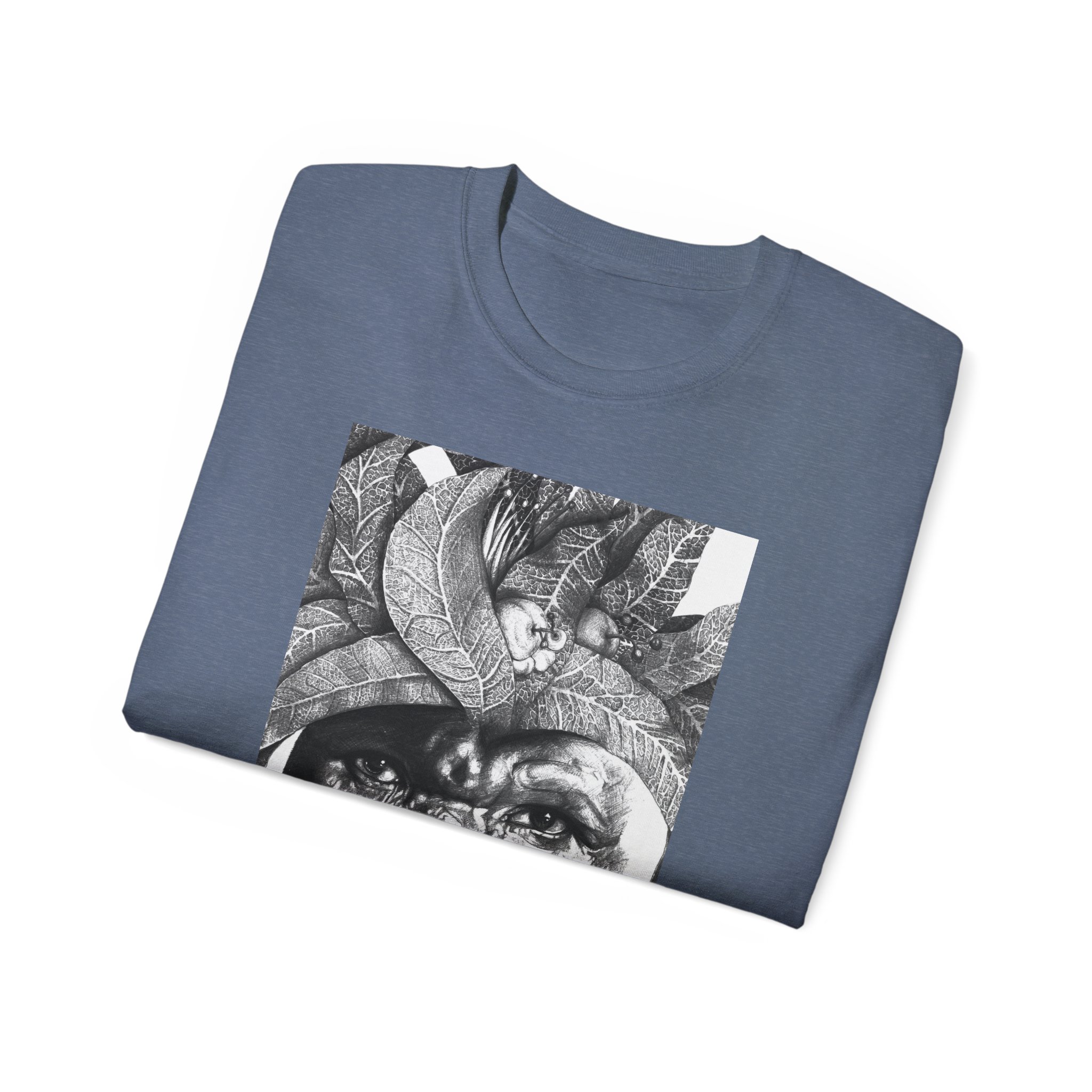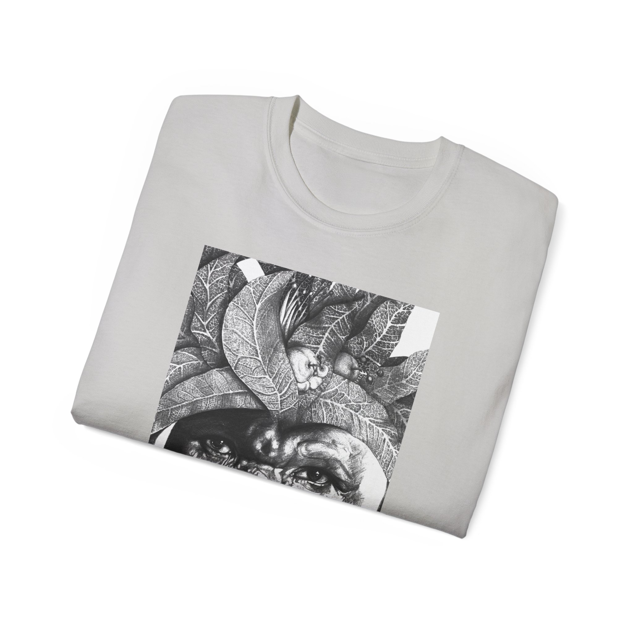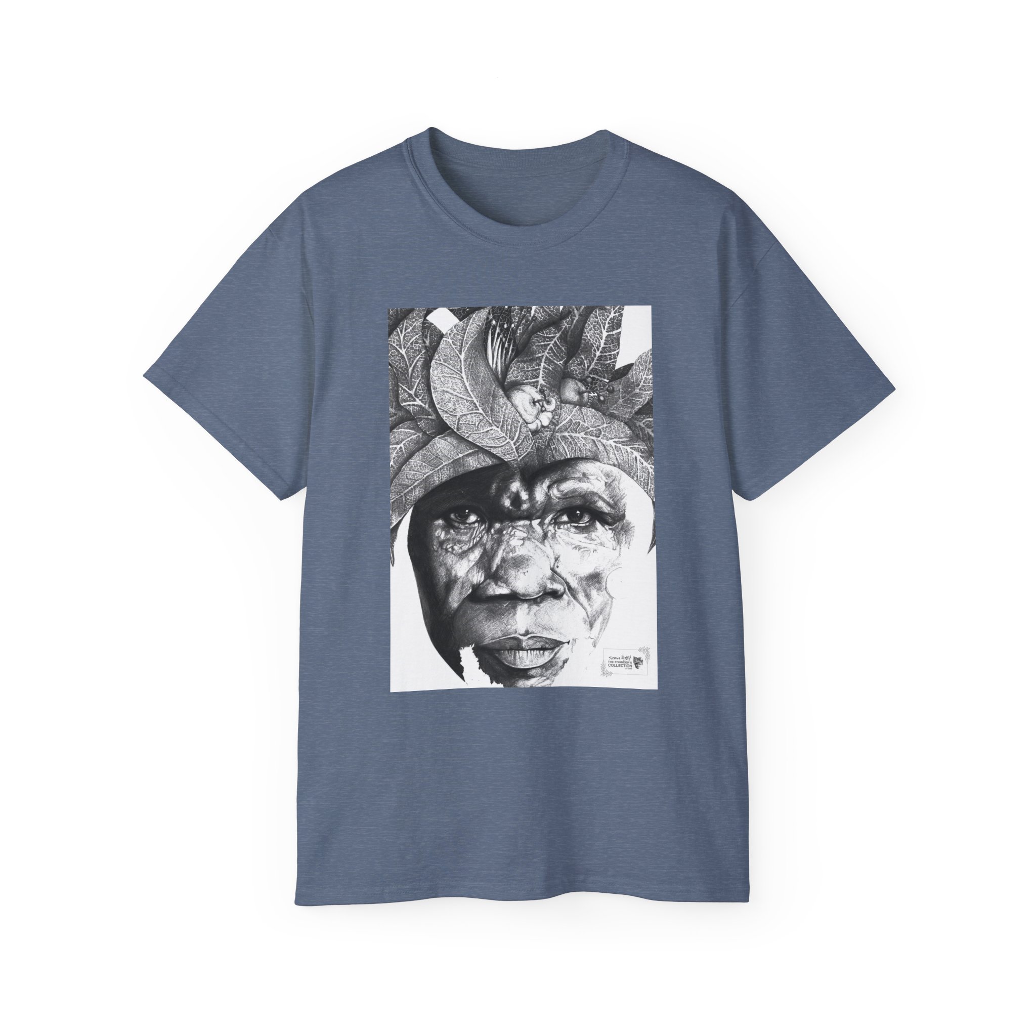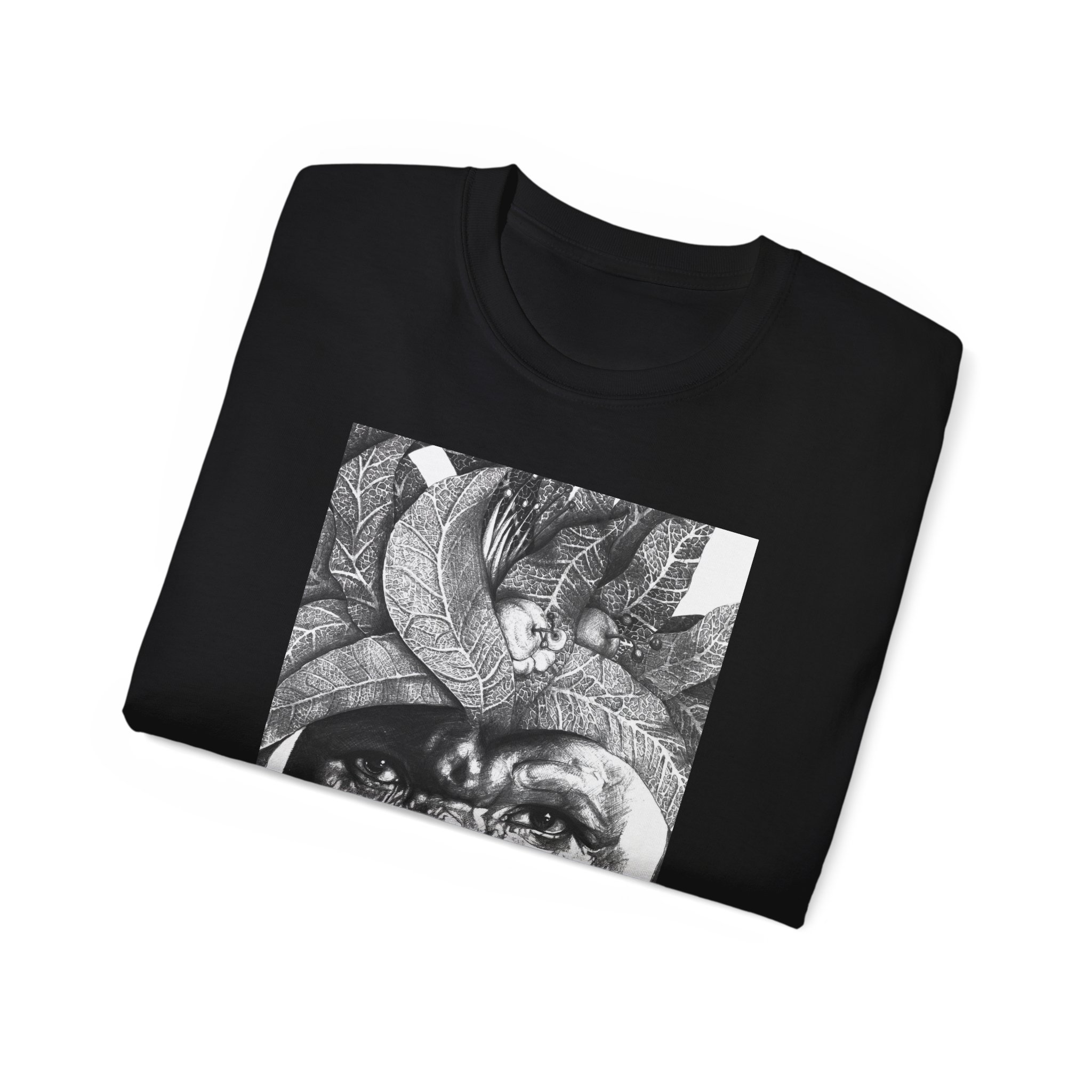 Rooted in Siphiwe Ngwenya’s Artworks that Work philosophy, this piece transforms everyday clothing into a carrier of meaning. The portrait reflects subtle storytelling — about wisdom, endurance, and cultivated inner worlds — making the tee ideal for those who prefer expression that unfolds slowly rather than announces itself.