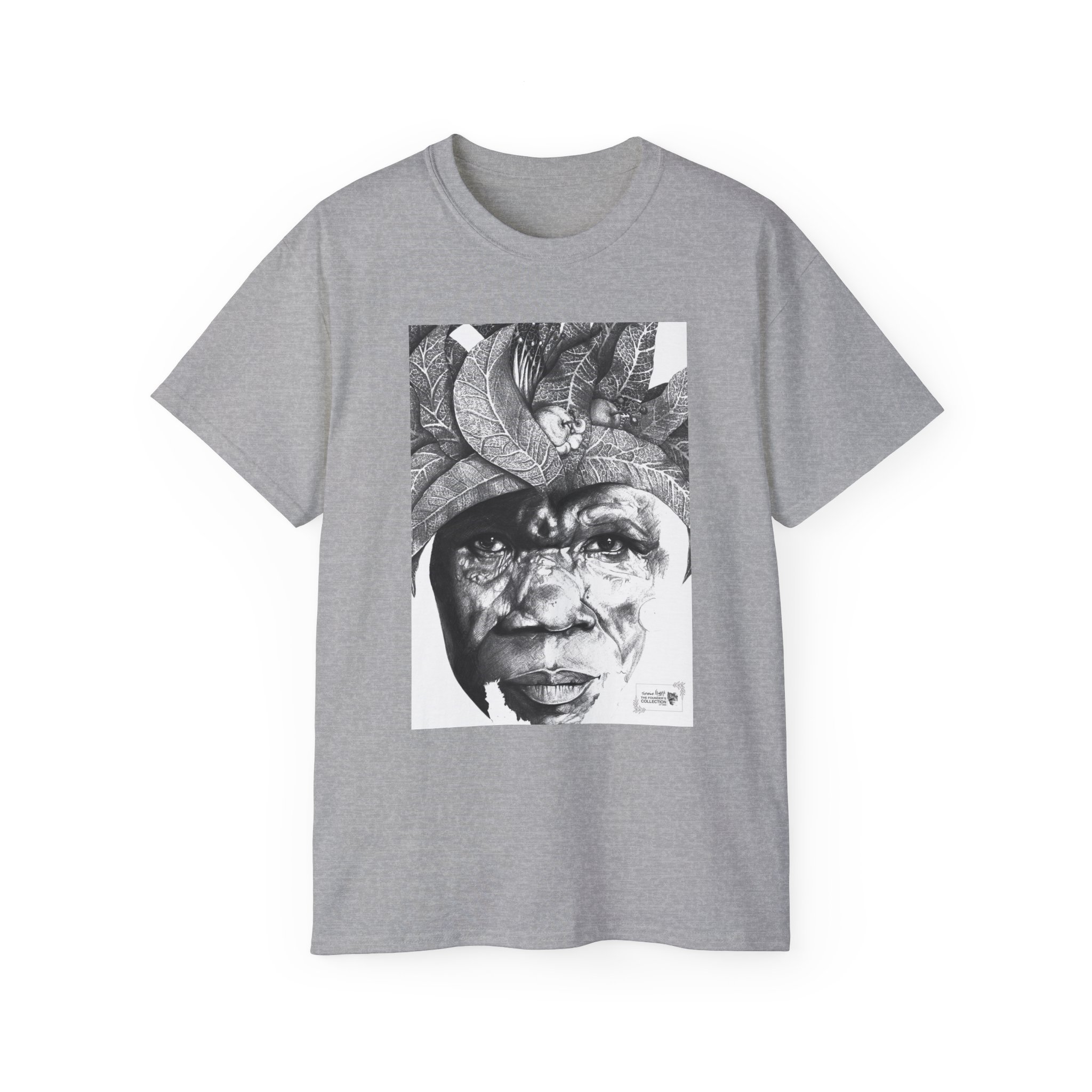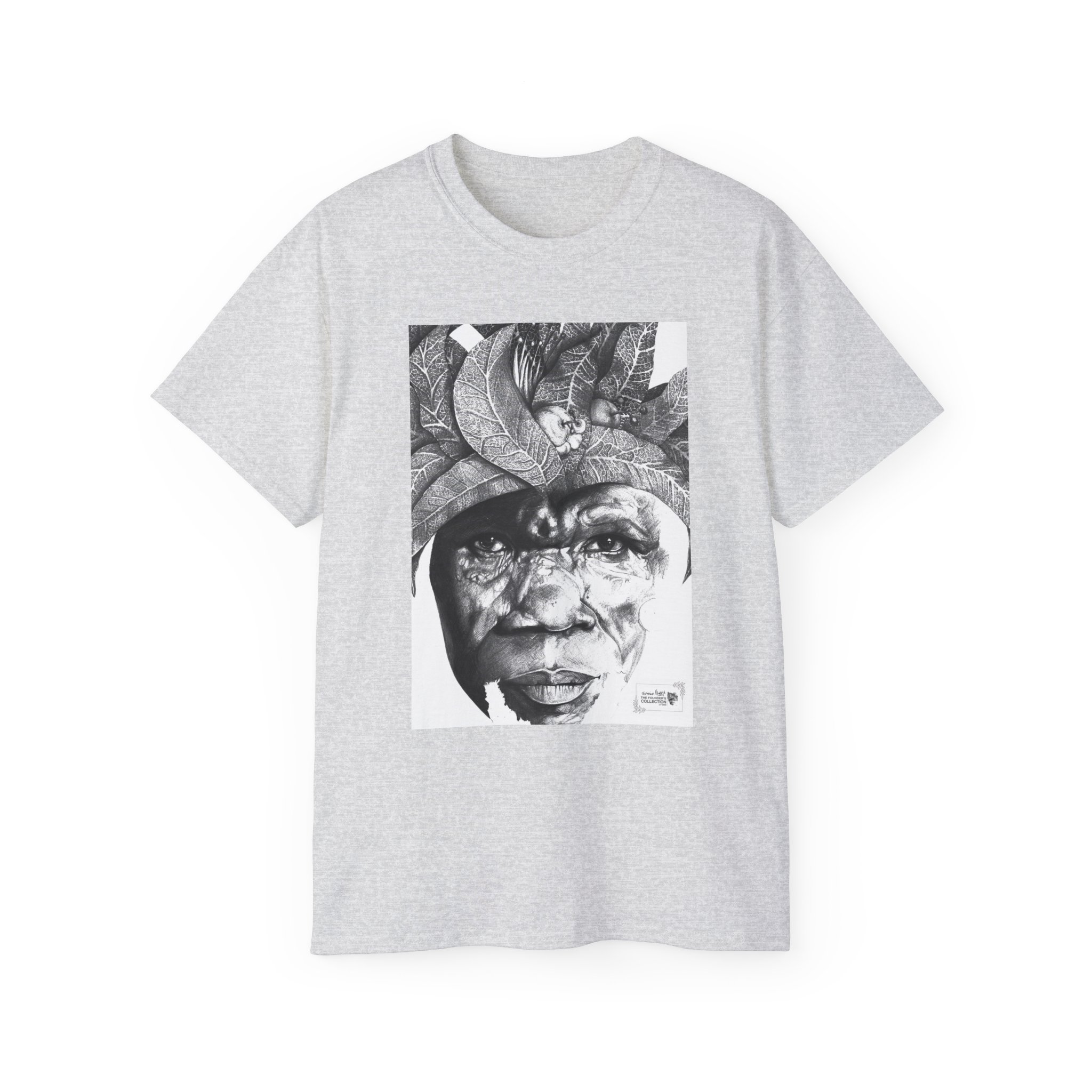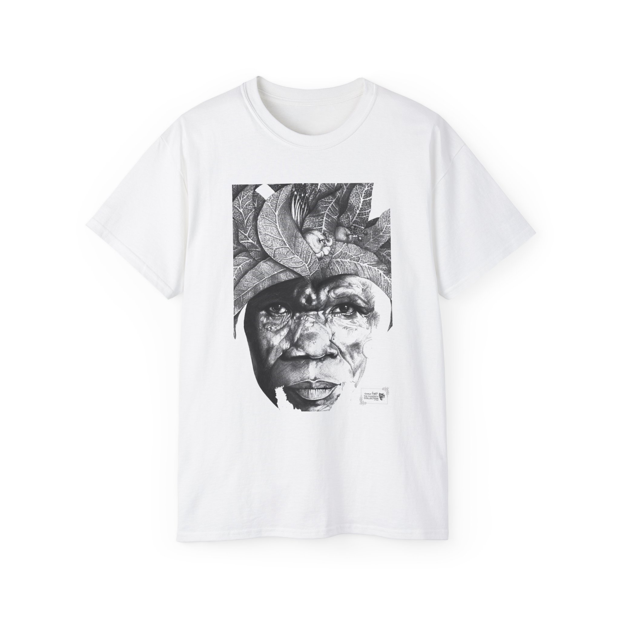 Tribal Portrait Graphic Tee — Monochrome Indigenous Art T-Shirt