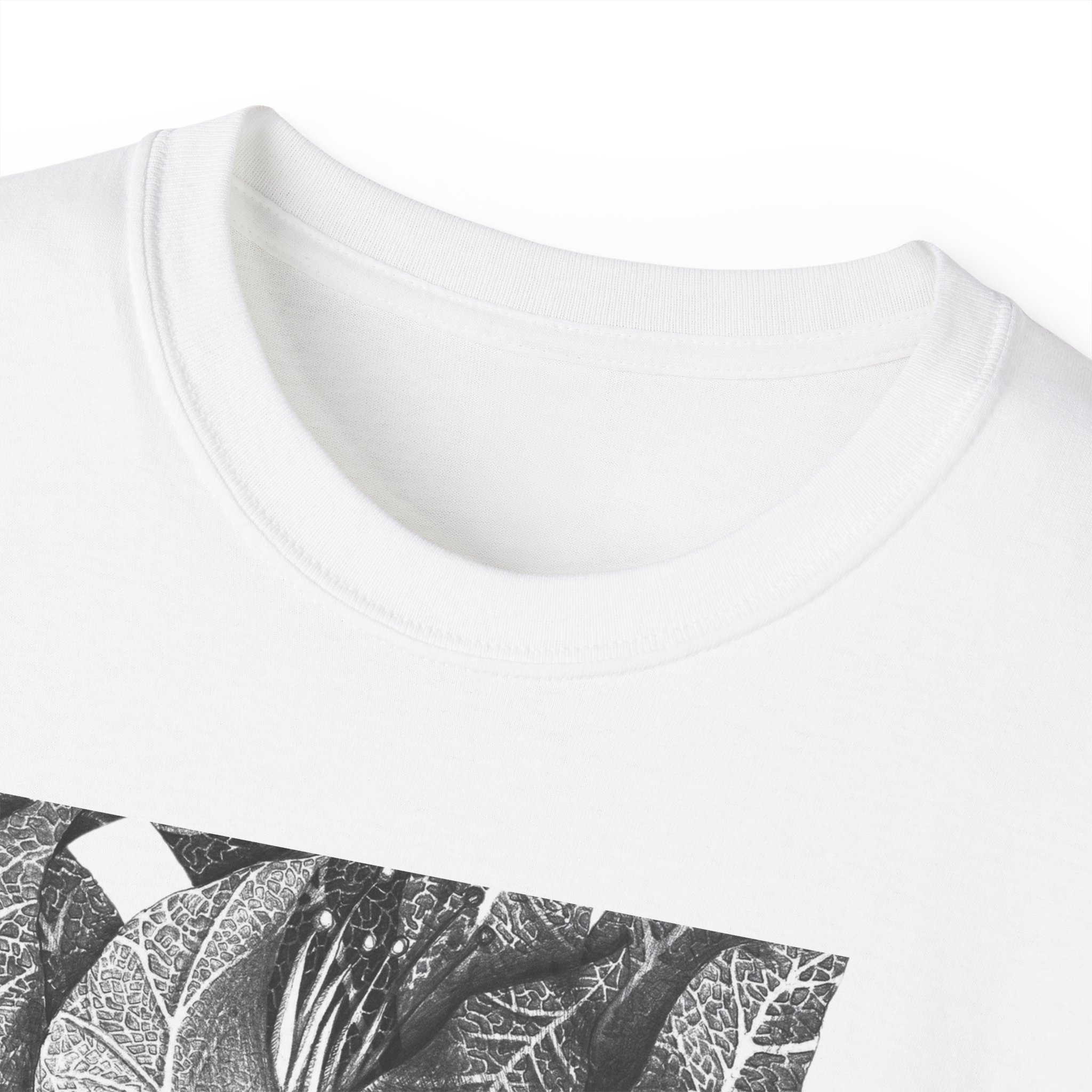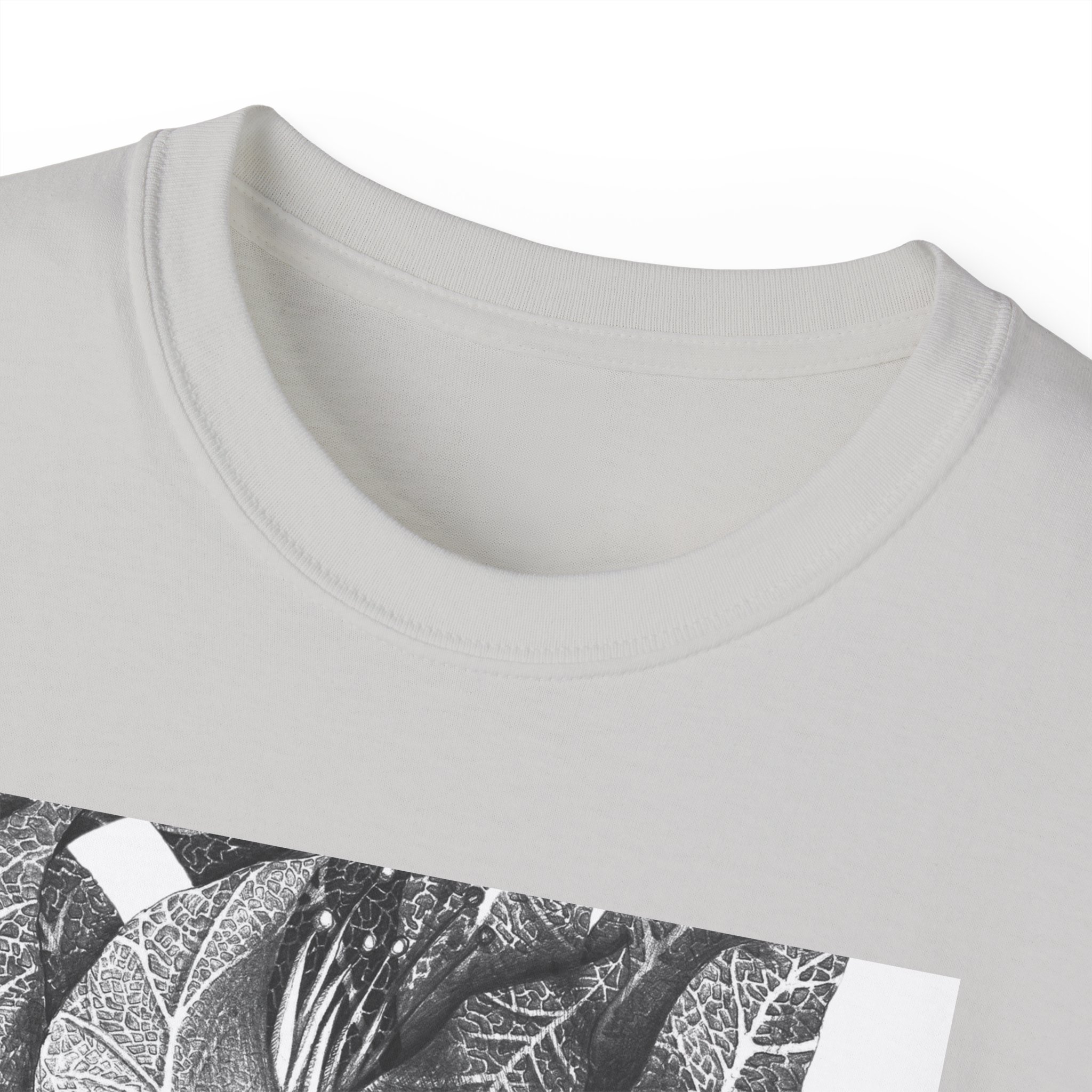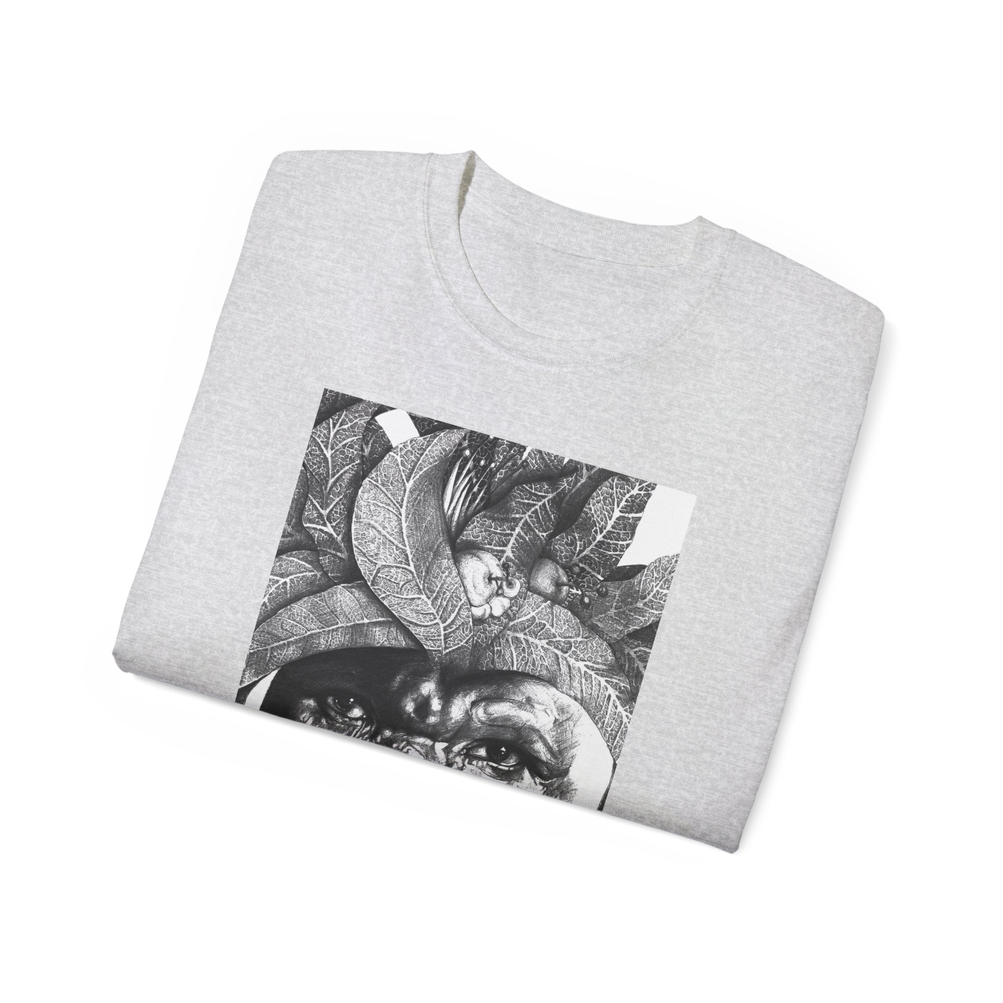This classic cotton tee wears like a quiet statement. Featuring the monochrome portrait of The Sunman – Guardian of the Orchard Mind, the artwork appears textured, raw, and photographic — as though a lived moment has been pressed directly into the fabric. The gaze is steady and grounded, carrying a contemplative weight that favors depth over display. It’s an image that speaks softly, rewarding those who look longer.