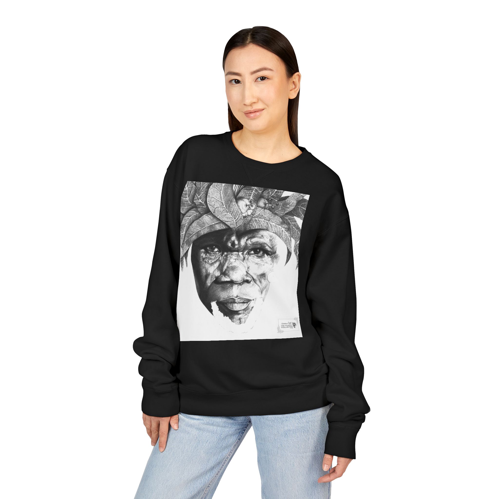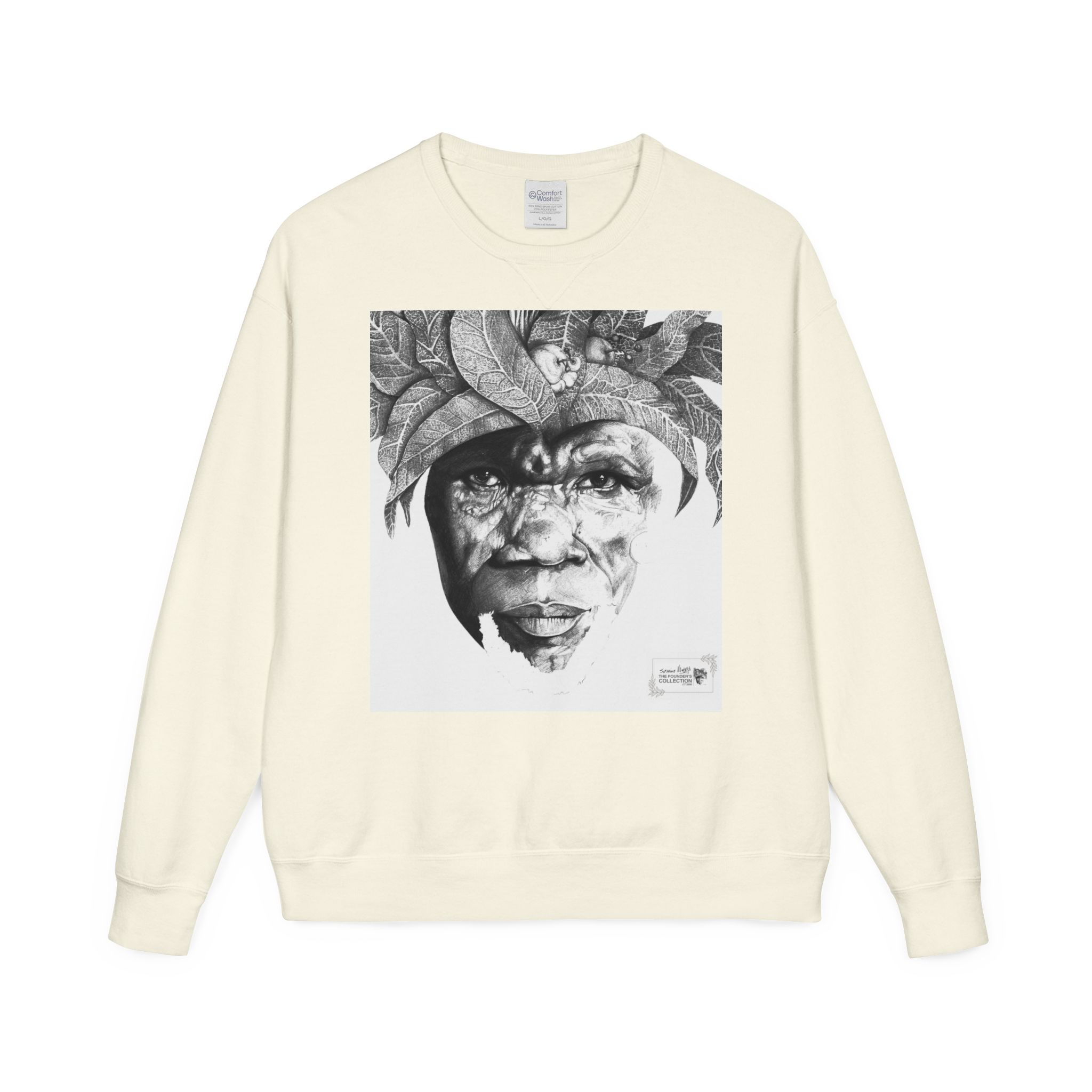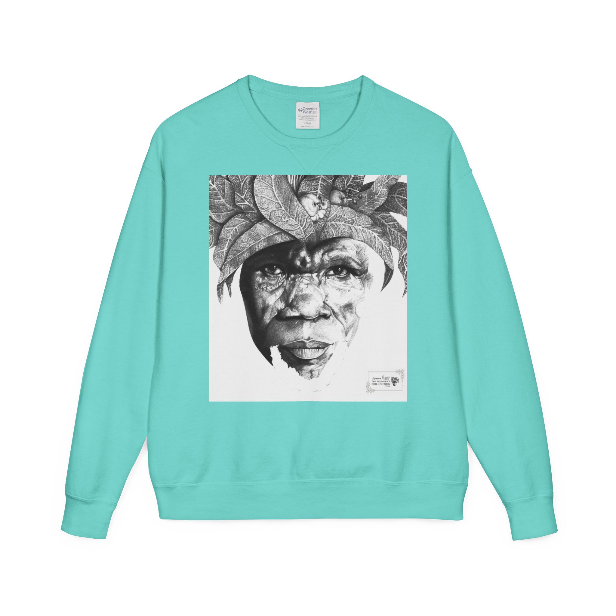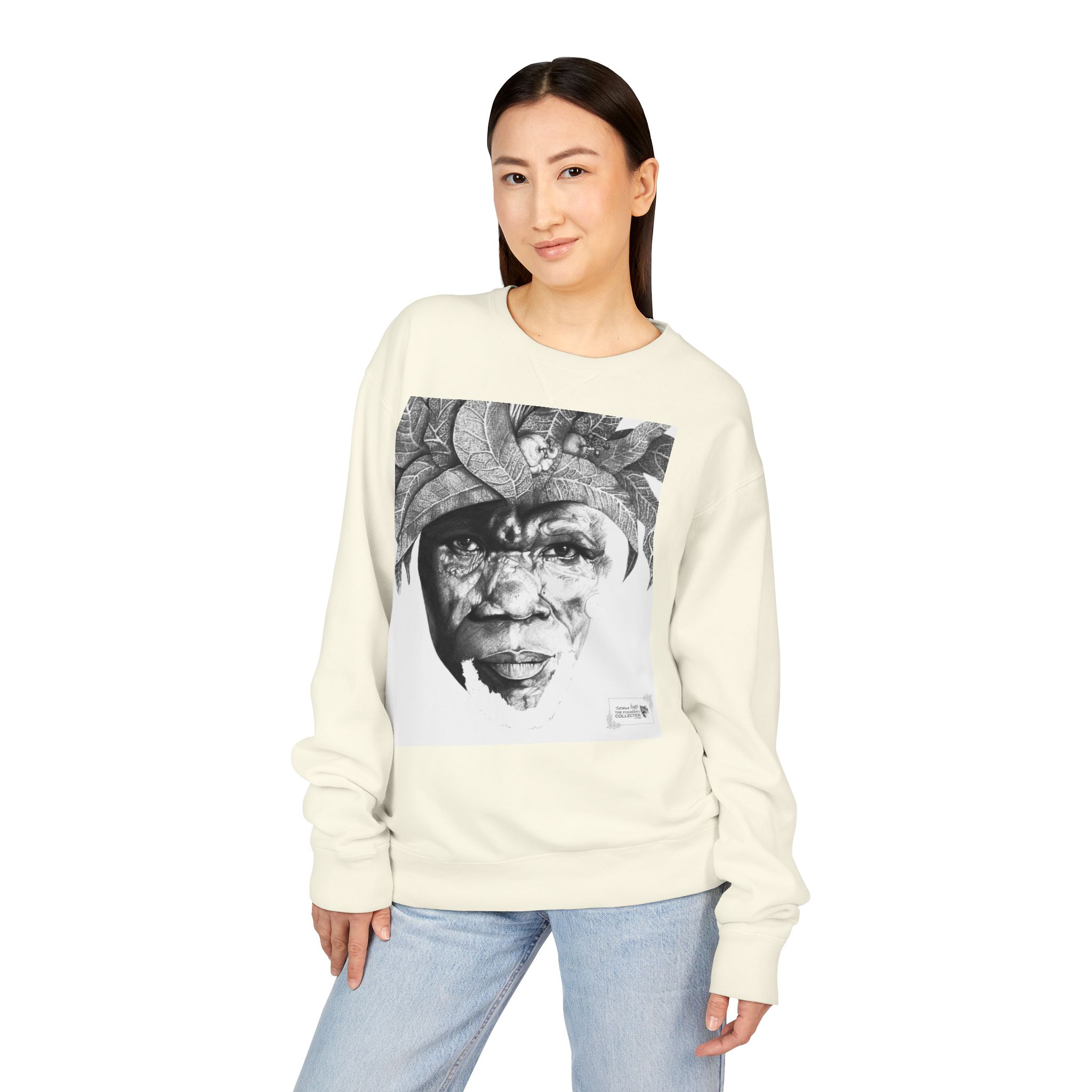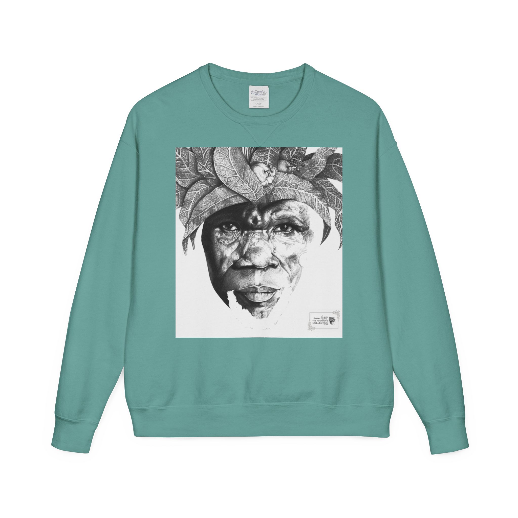 This Unisex ComfortWash® Garment Dyed Crewneck Sweatshirt showcases “The Original Sunman: Vision of the Founder’s Family” by Siphiwe Ngwenya. Its vintage-washed finish complements the enduring power of the “Artworks that Work” philosophy—art dedicated to driving economic and spiritual emancipation. The monochrome portrait, rich in heritage and wisdom, resonates with a lived history, symbolizing the journey of communities transforming townships into vibrant centers of creative and economic freedom.