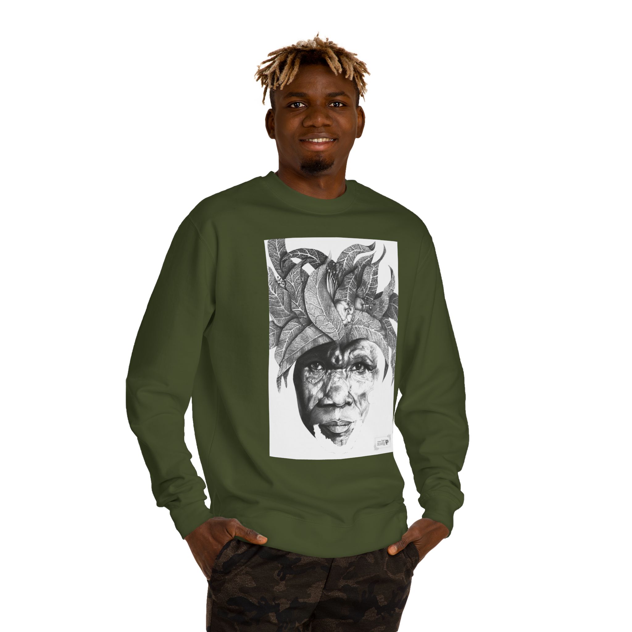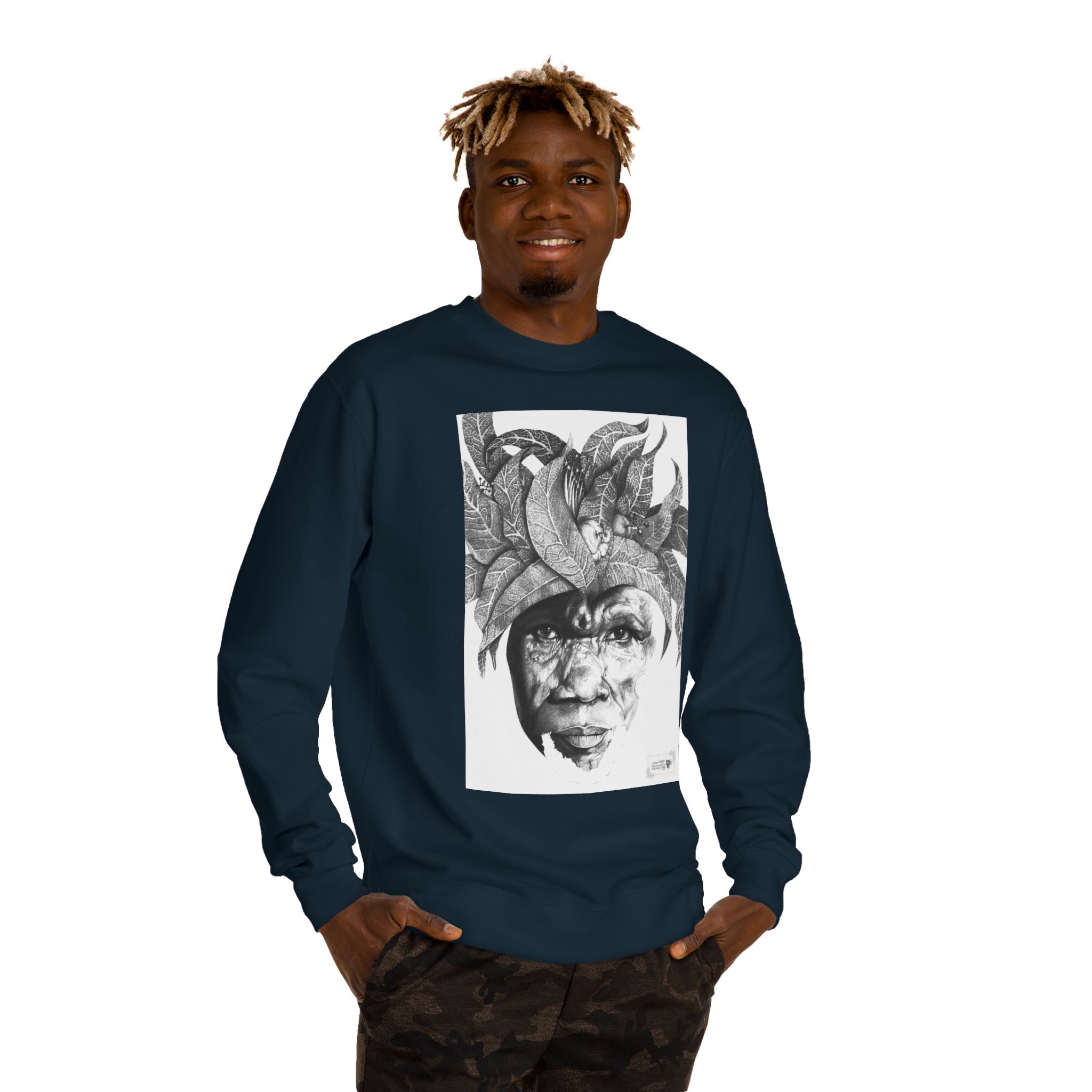 This Unisex Crew Neck Sweatshirt (Independent Trading Co. SS3000) features “The Original Sunman: Vision of the Founder’s Family” by Siphiwe Ngwenya. It’s a statement of conscious comfort and profound purpose, embodying the “Artworks that Work” philosophy—art dedicated to driving economic and spiritual emancipation. The powerful monochrome portrait, rich in heritage and wisdom, symbolizes the enduring spirit of communities on their journey from overlooked townships to vibrant centers of creative freedom.