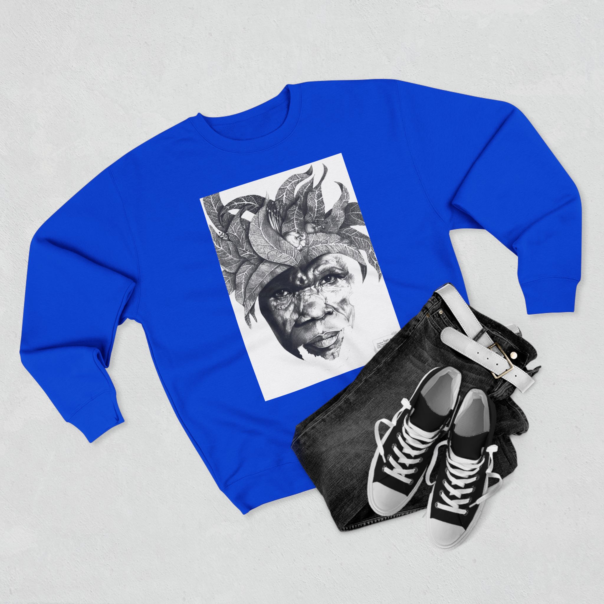 This Unisex Crewneck Sweatshirt showcases “The Original Sunman: Vision of the Founder’s Family” by Siphiwe Ngwenya. It’s a statement of enduring quality and profound purpose, embodying the “Artworks that Work” philosophy—art dedicated to driving economic and spiritual emancipation. The powerful monochrome portrait, rich in heritage and wisdom, symbolizes the journey of communities transforming townships into vibrant centers of creative and economic freedom.