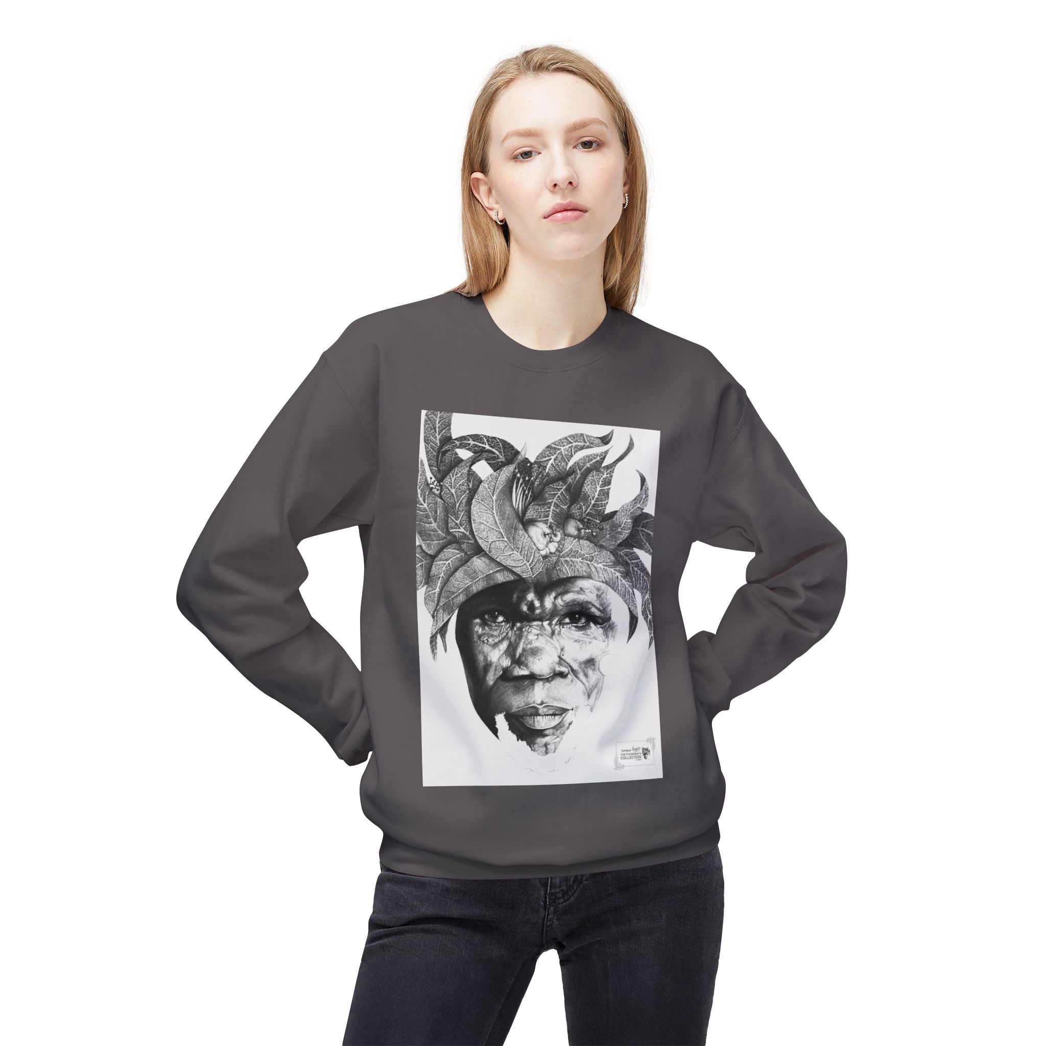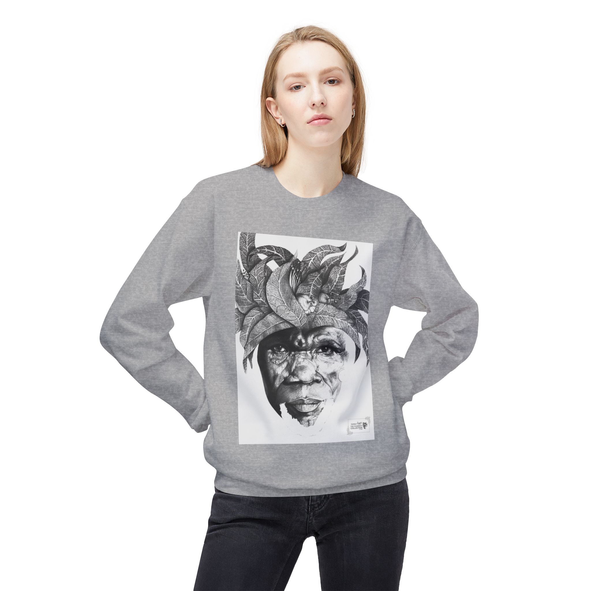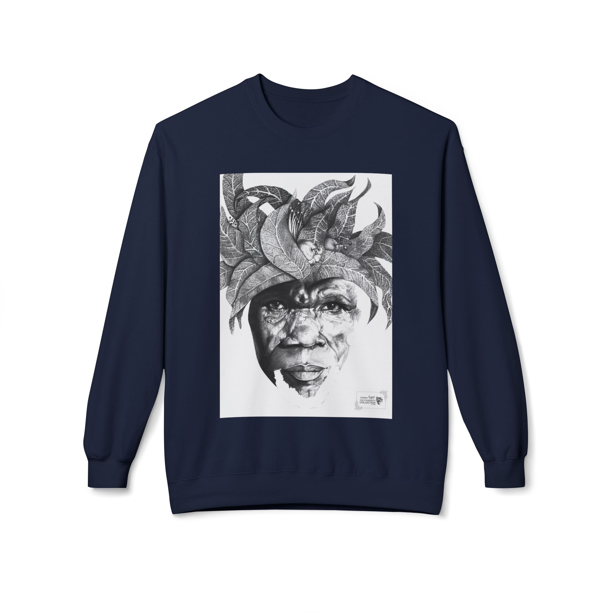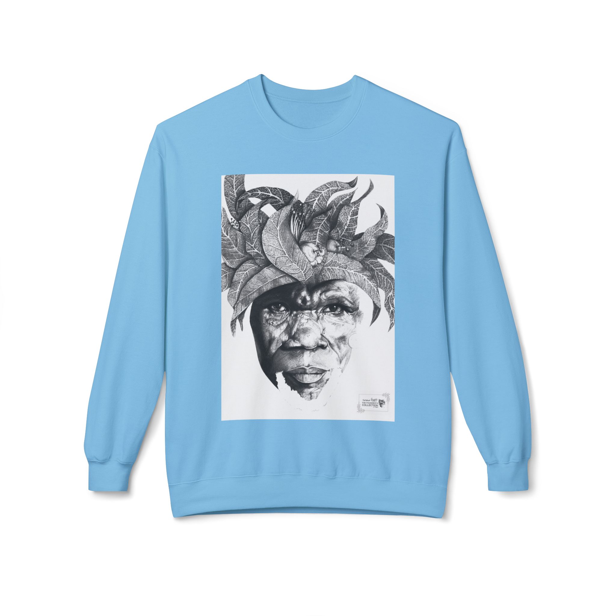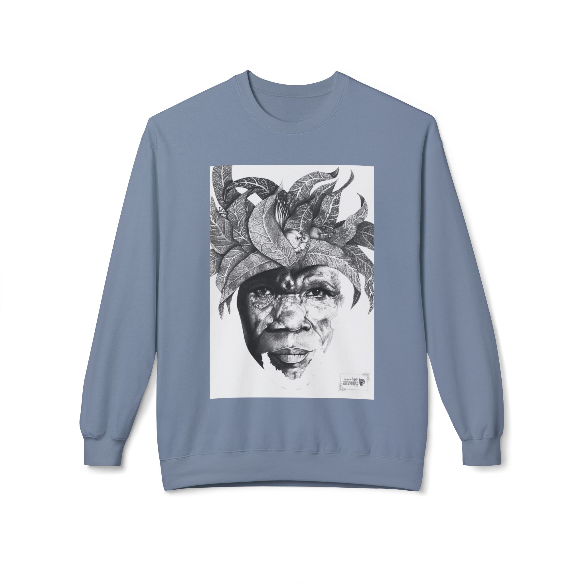 This Unisex Midweight Softstyle Fleece Crewneck Sweatshirt showcases “The Original Sunman: Vision of the Founder’s Family” by Siphiwe Ngwenya. It’s a statement of conscious style and profound purpose, embodying the “Artworks that Work” philosophy—art dedicated to driving economic and spiritual emancipation through sustainable and responsible practices. The powerful monochrome portrait, rich in heritage, symbolizes the journey of communities transforming townships into vibrant centers of creative and economic freedom.