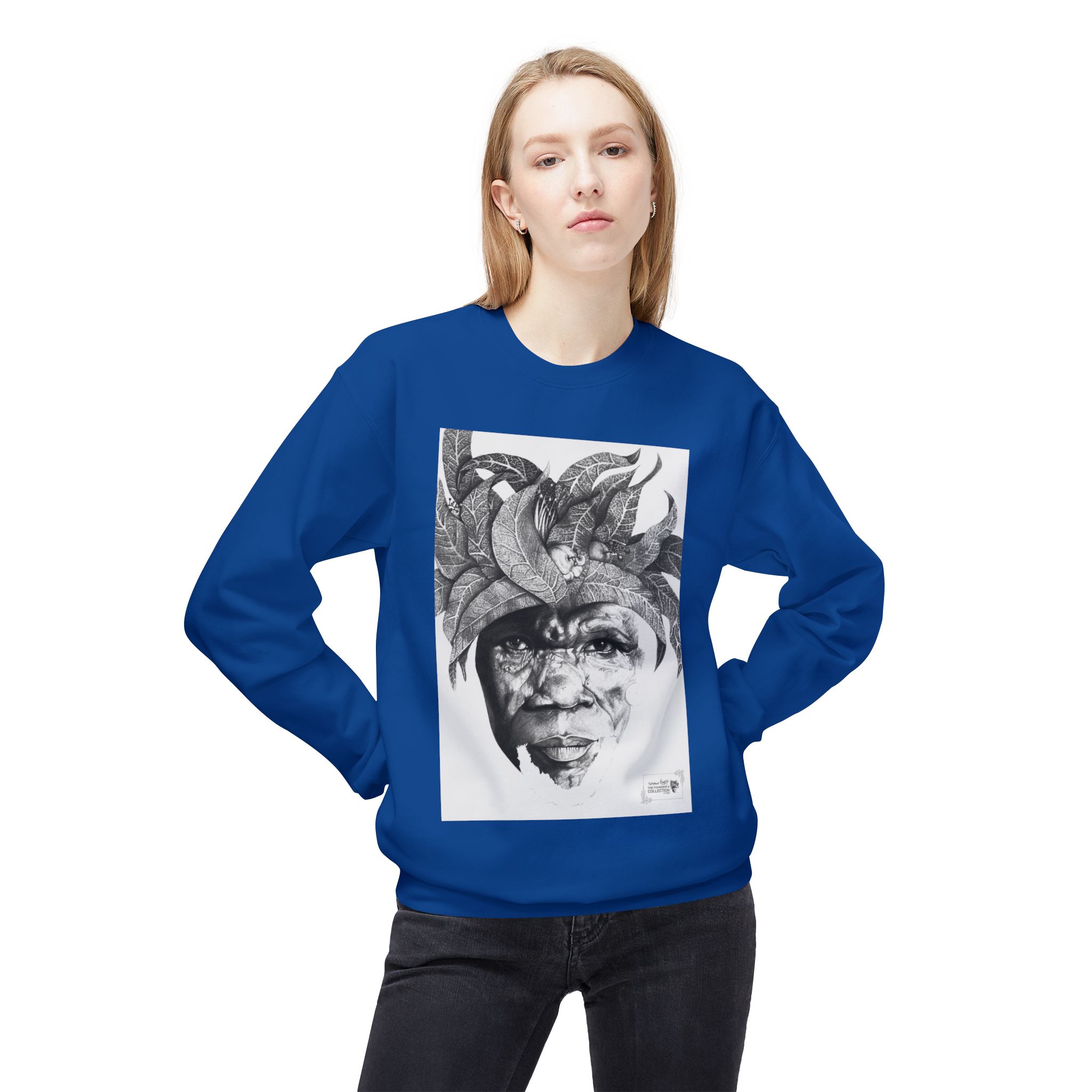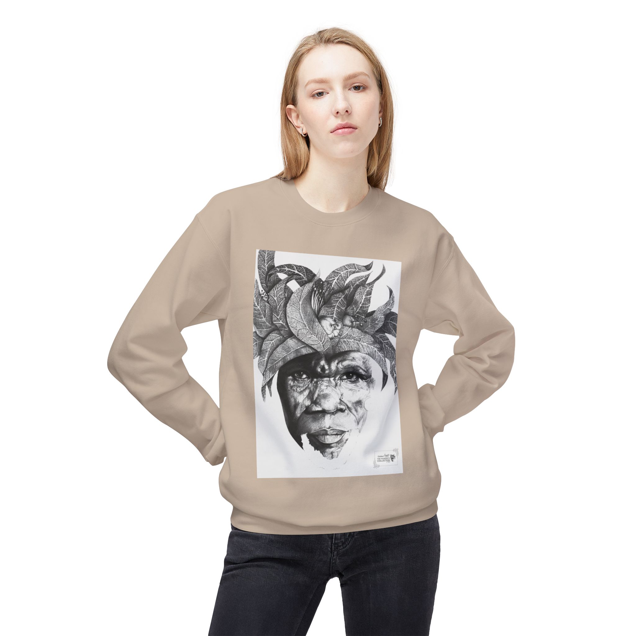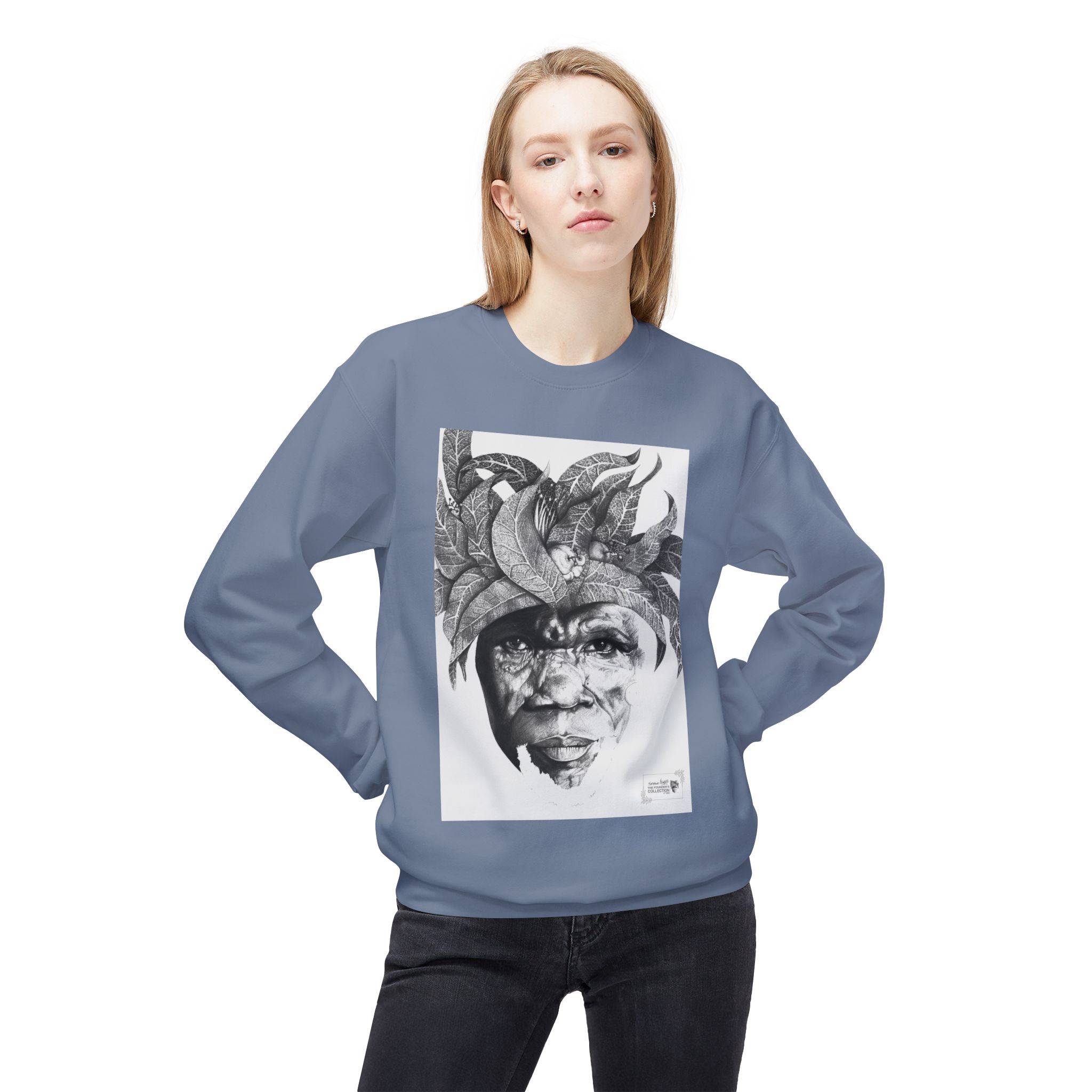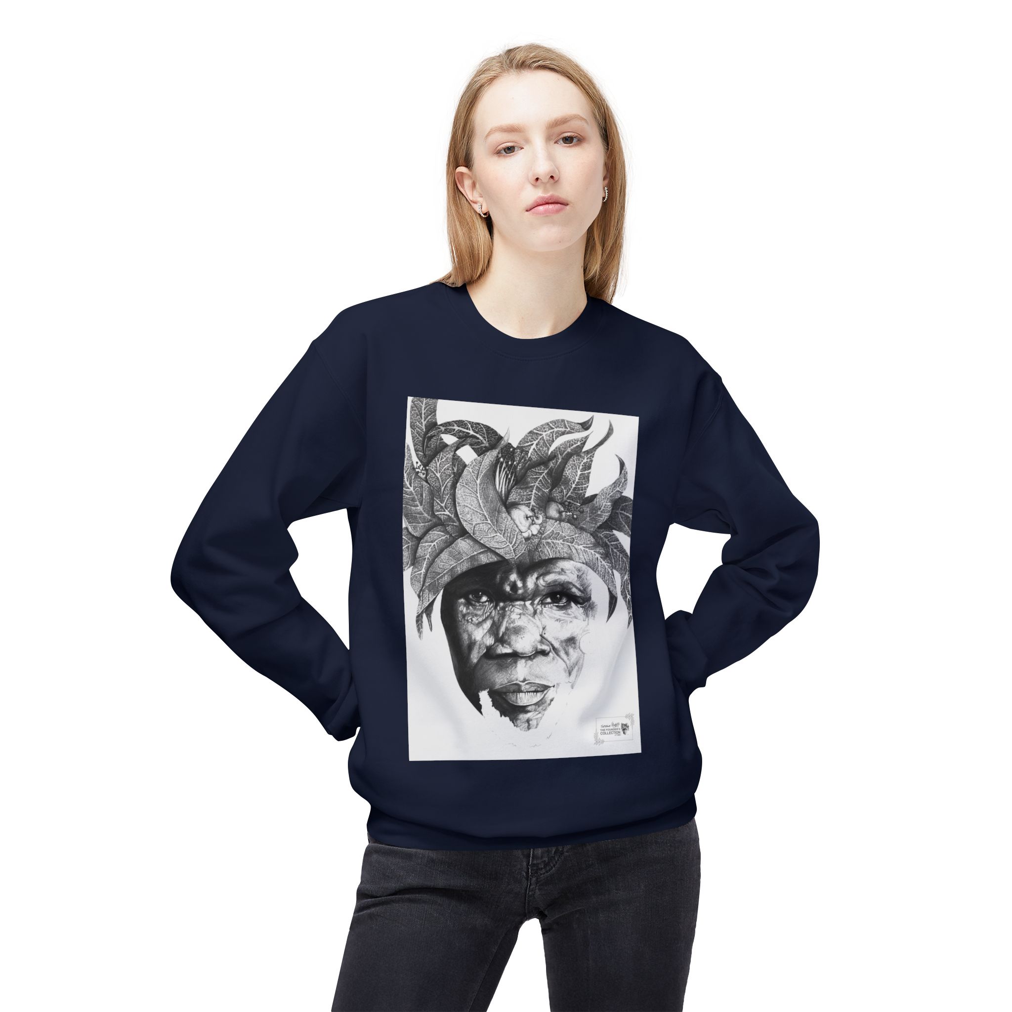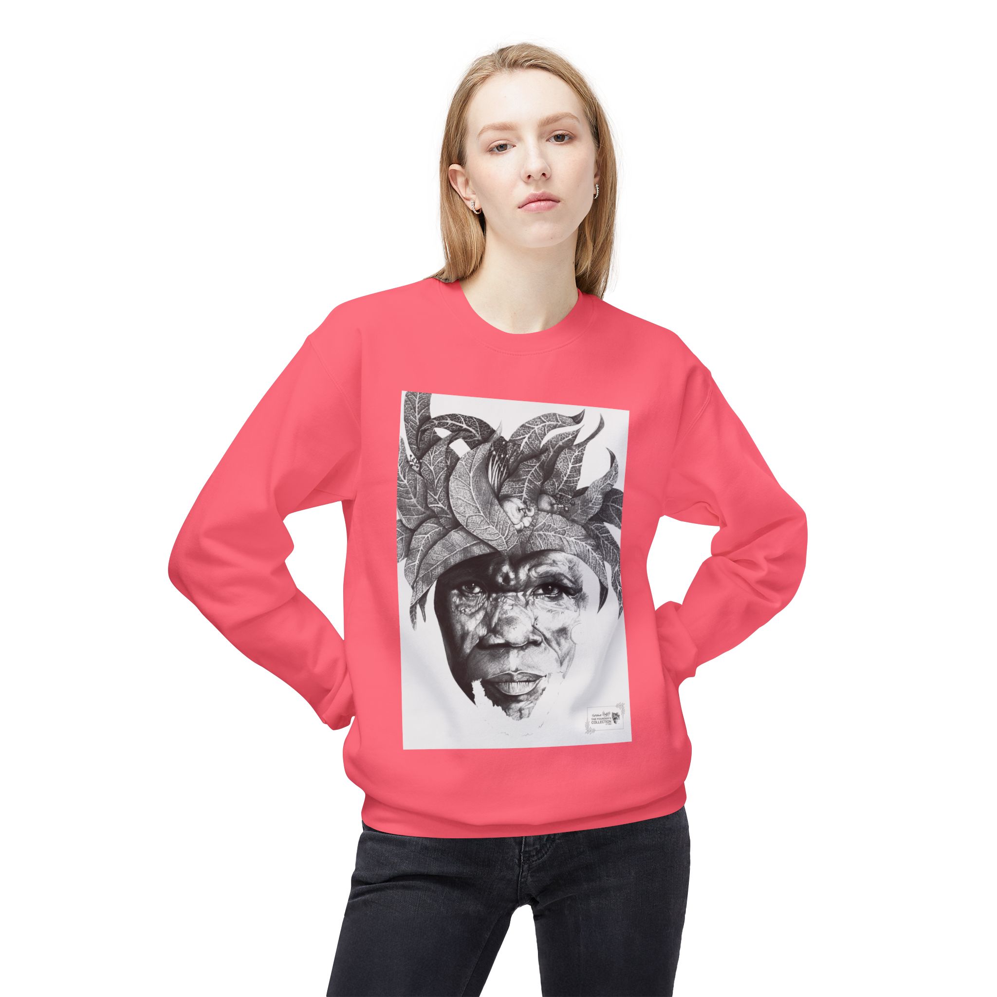 This Unisex Midweight Softstyle Fleece Crewneck Sweatshirt showcases “The Original Sunman: Vision of the Founder’s Family” by Siphiwe Ngwenya. It’s a statement of conscious style and profound purpose, embodying the “Artworks that Work” philosophy—art dedicated to driving economic and spiritual emancipation through sustainable and responsible practices. The powerful monochrome portrait, rich in heritage, symbolizes the journey of communities transforming townships into vibrant centers of creative and economic freedom.